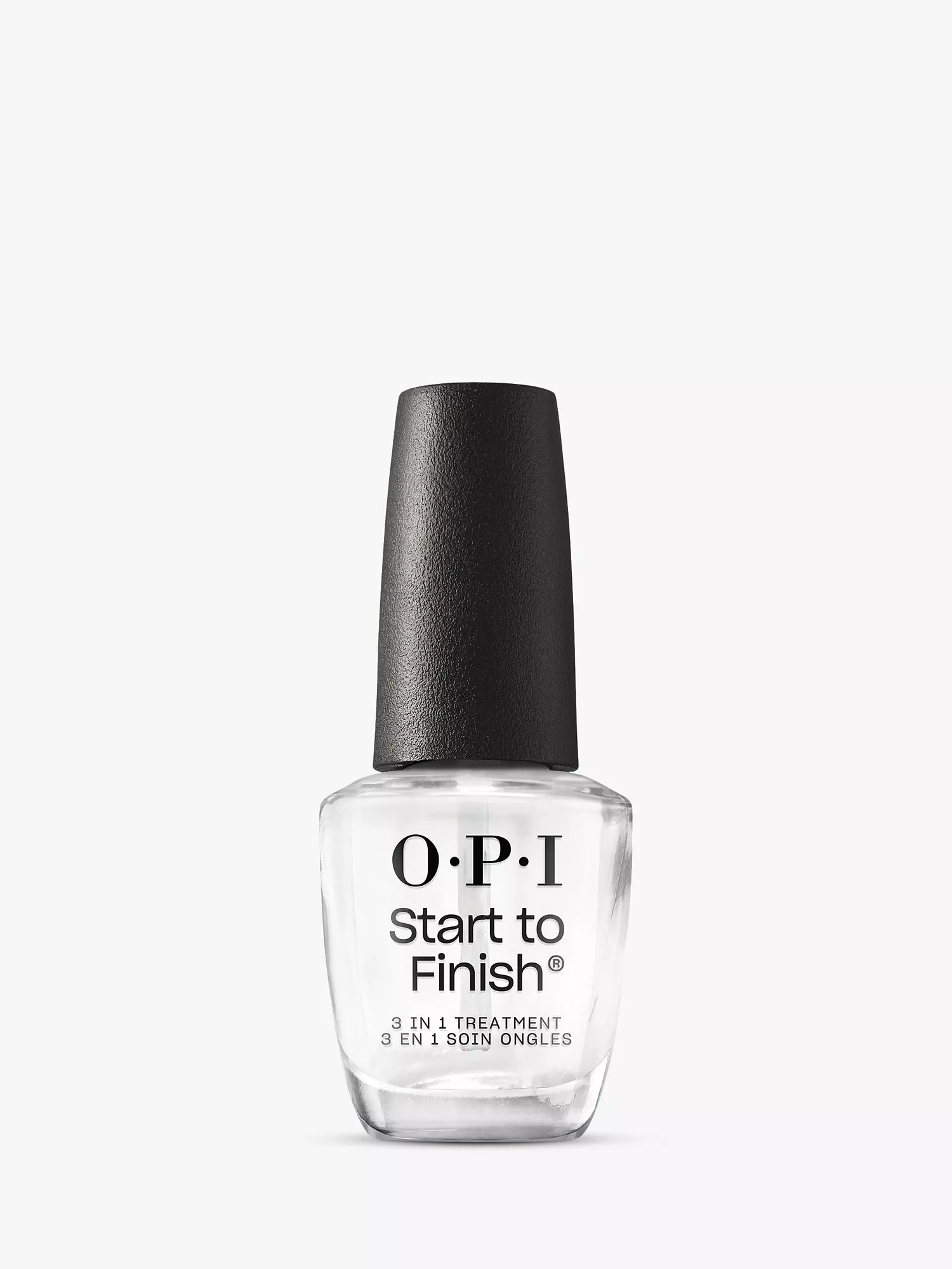 OPI Start to Finish 3-in-1 is a nail strengthener with a multi-tasking formula infused with vitamins A and E to cover all your bases in one bottle. Consider it a 3-in-wonder. It acts as a base coat to protect against discolouration, a topcoat to deliver long-lasting shine and strengthens to help protect nails against chipping, peeling, and splitting when used daily.
