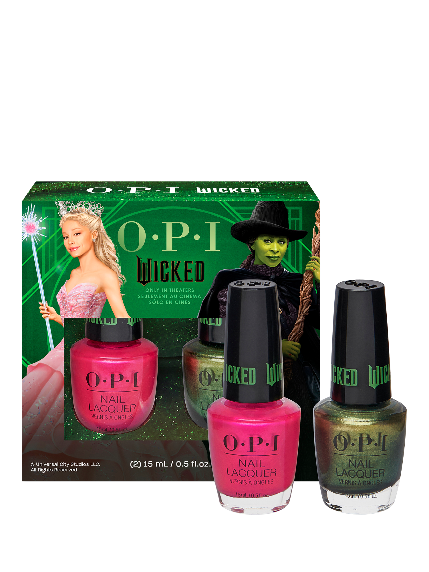 Good or wicked, you can paint them both with this 2-piece nail polish duo pack. Create your own unique mani magic inspired by Wicked the movie!