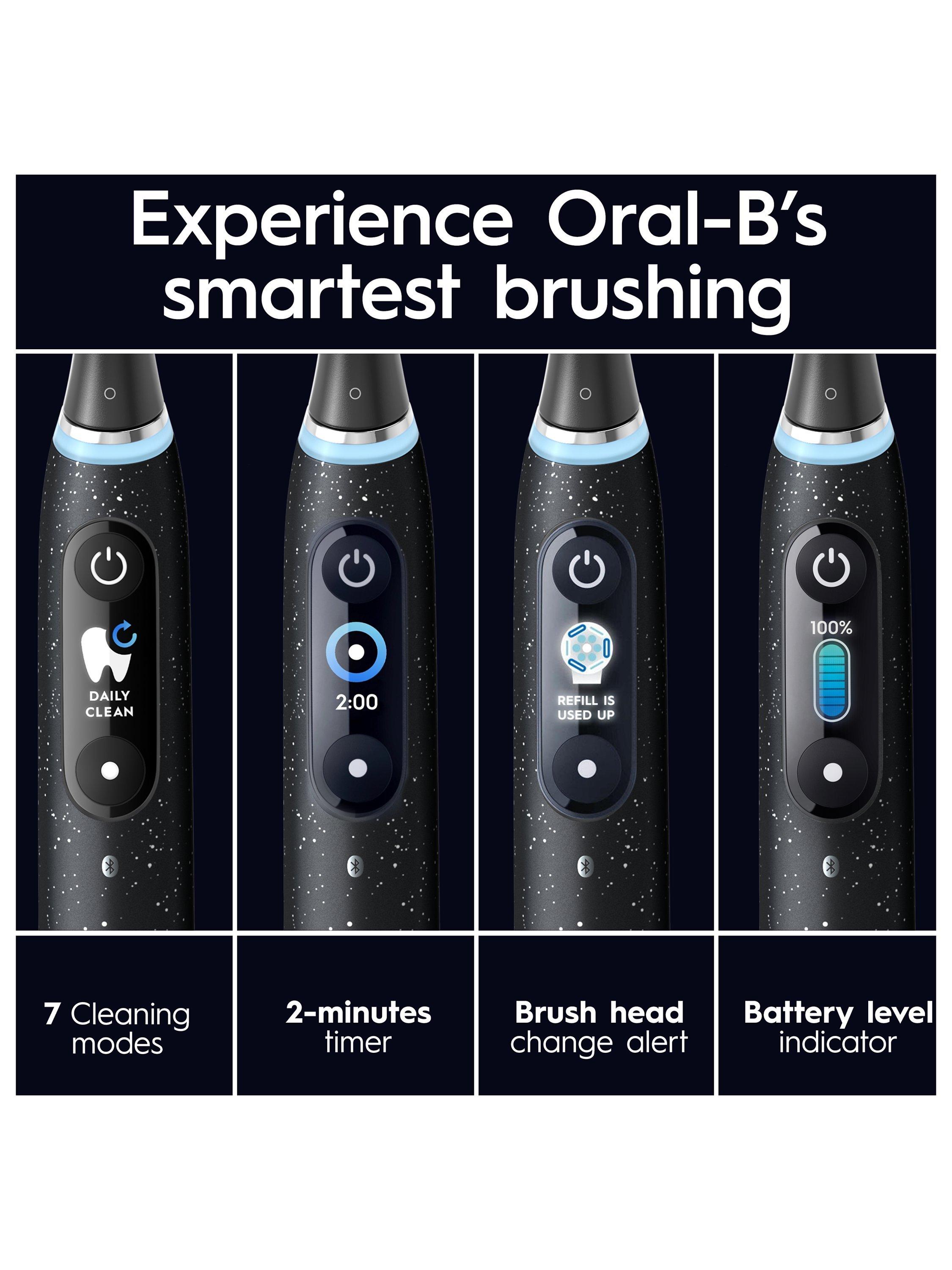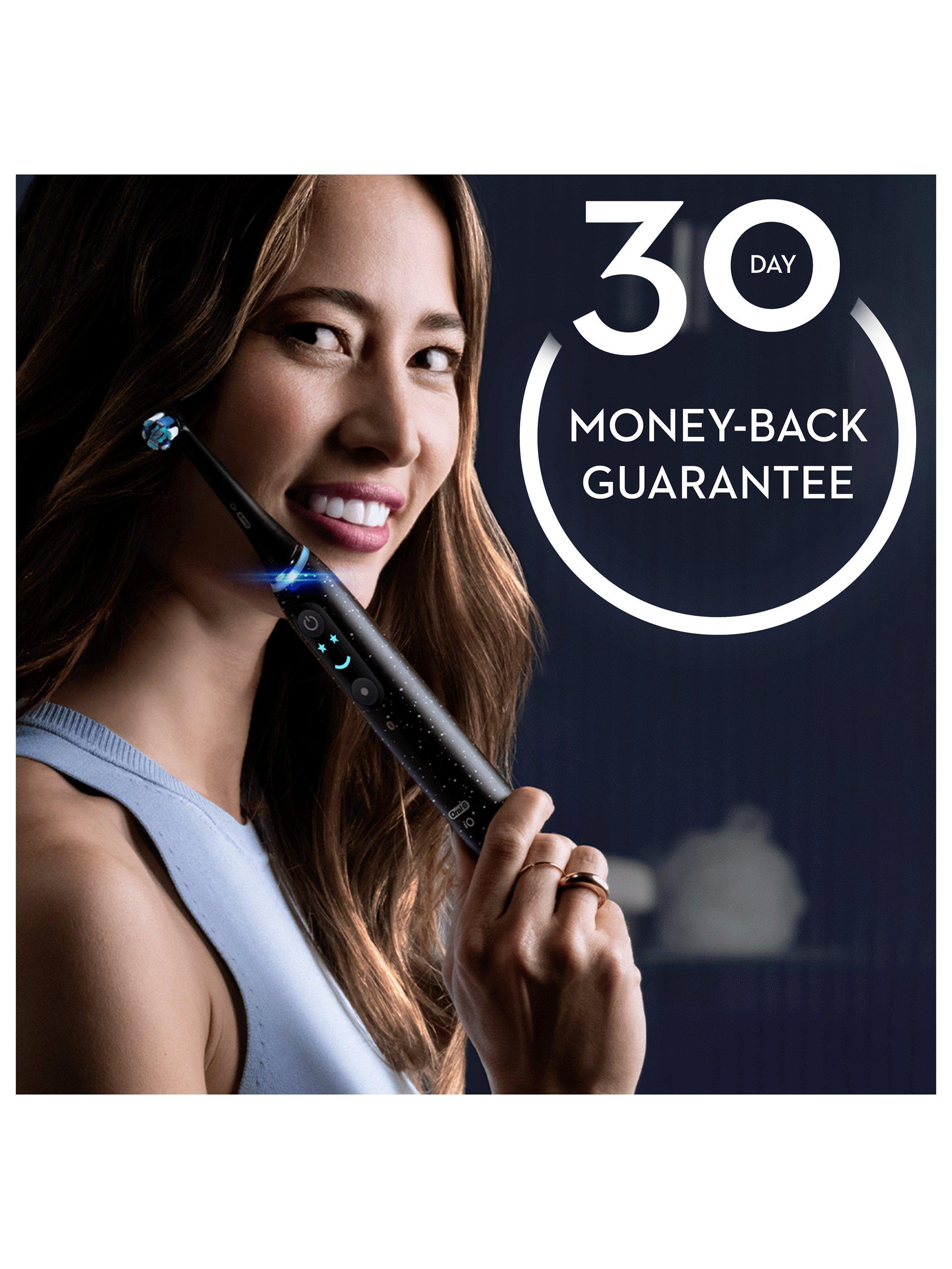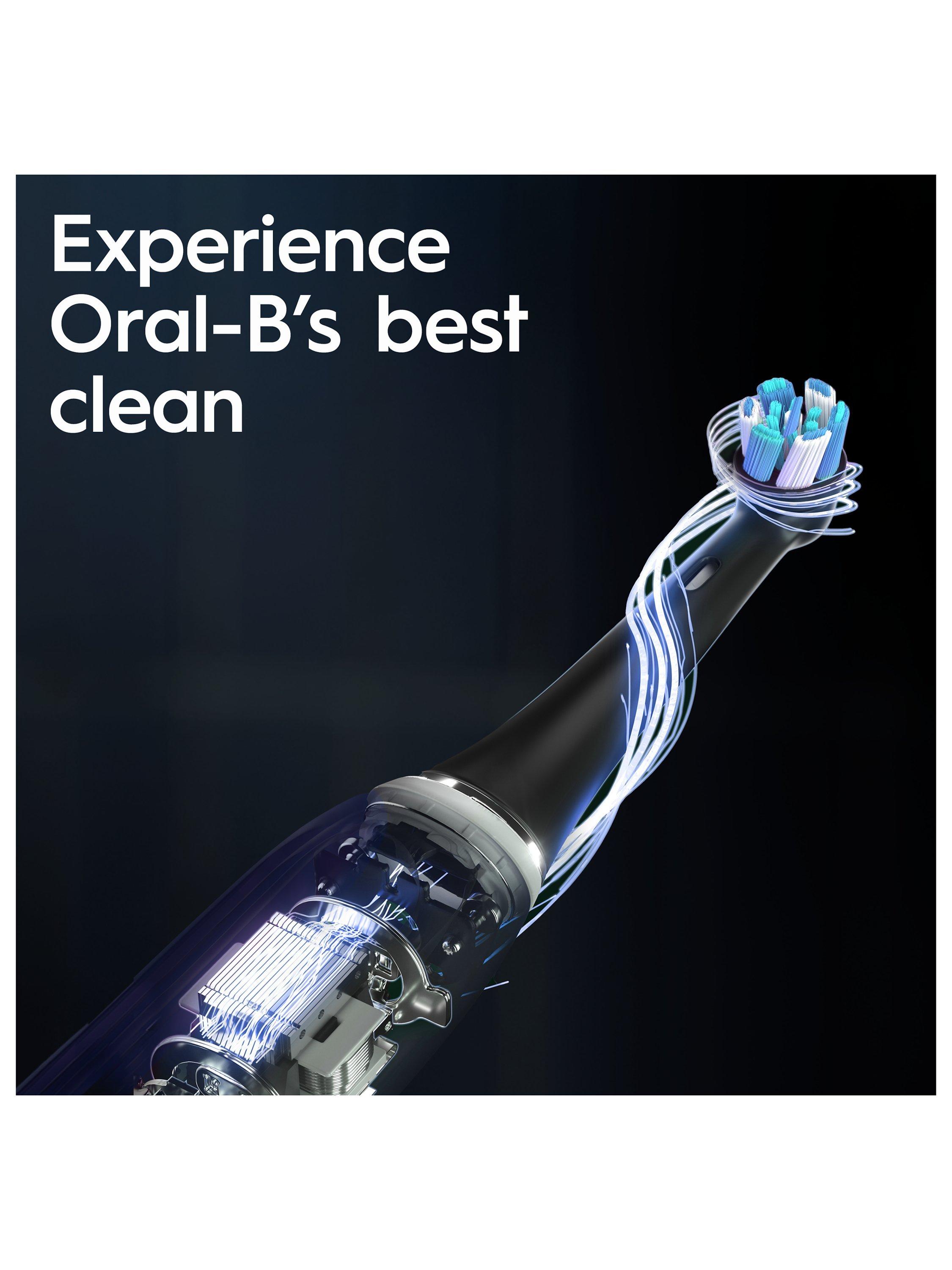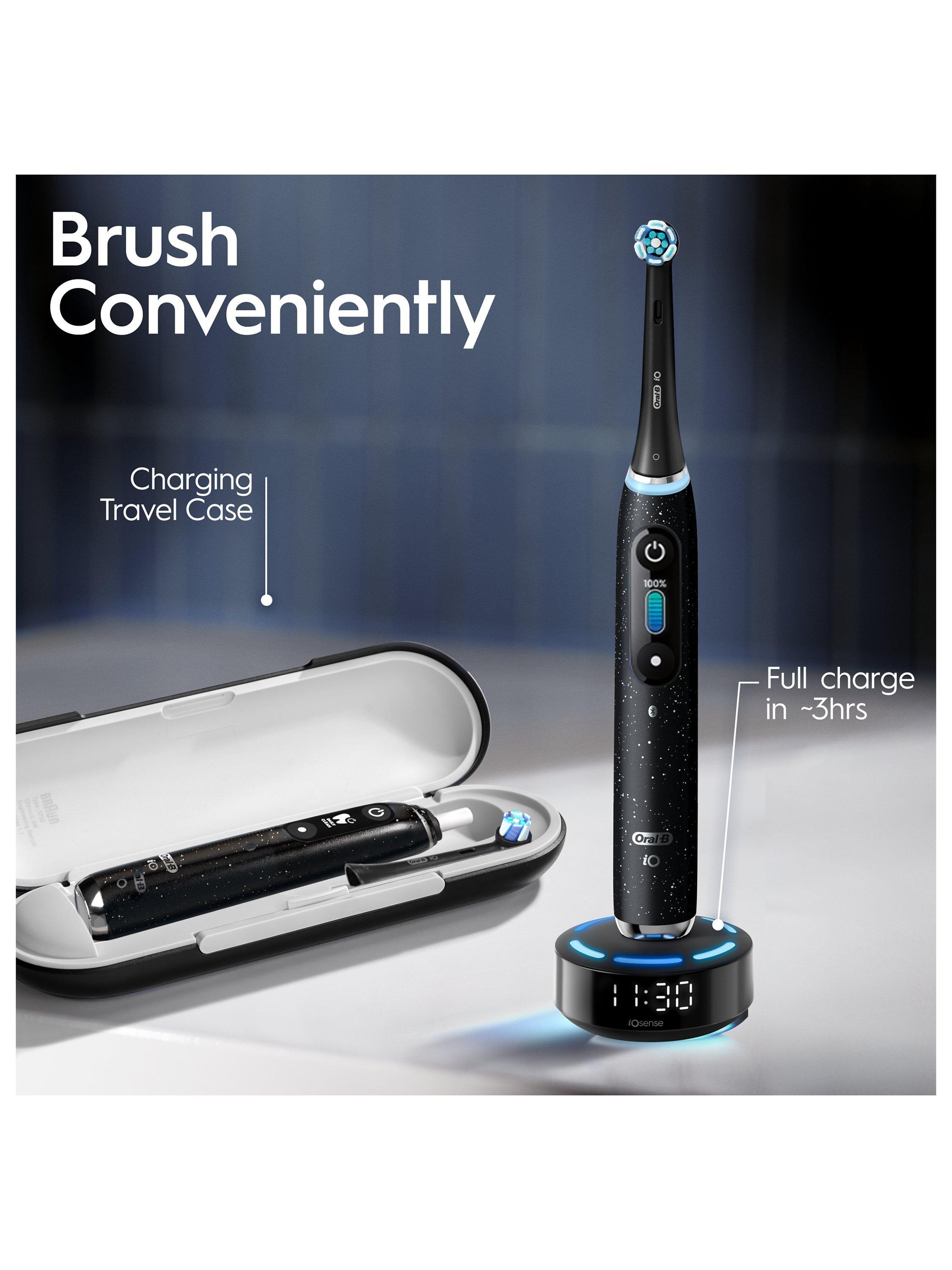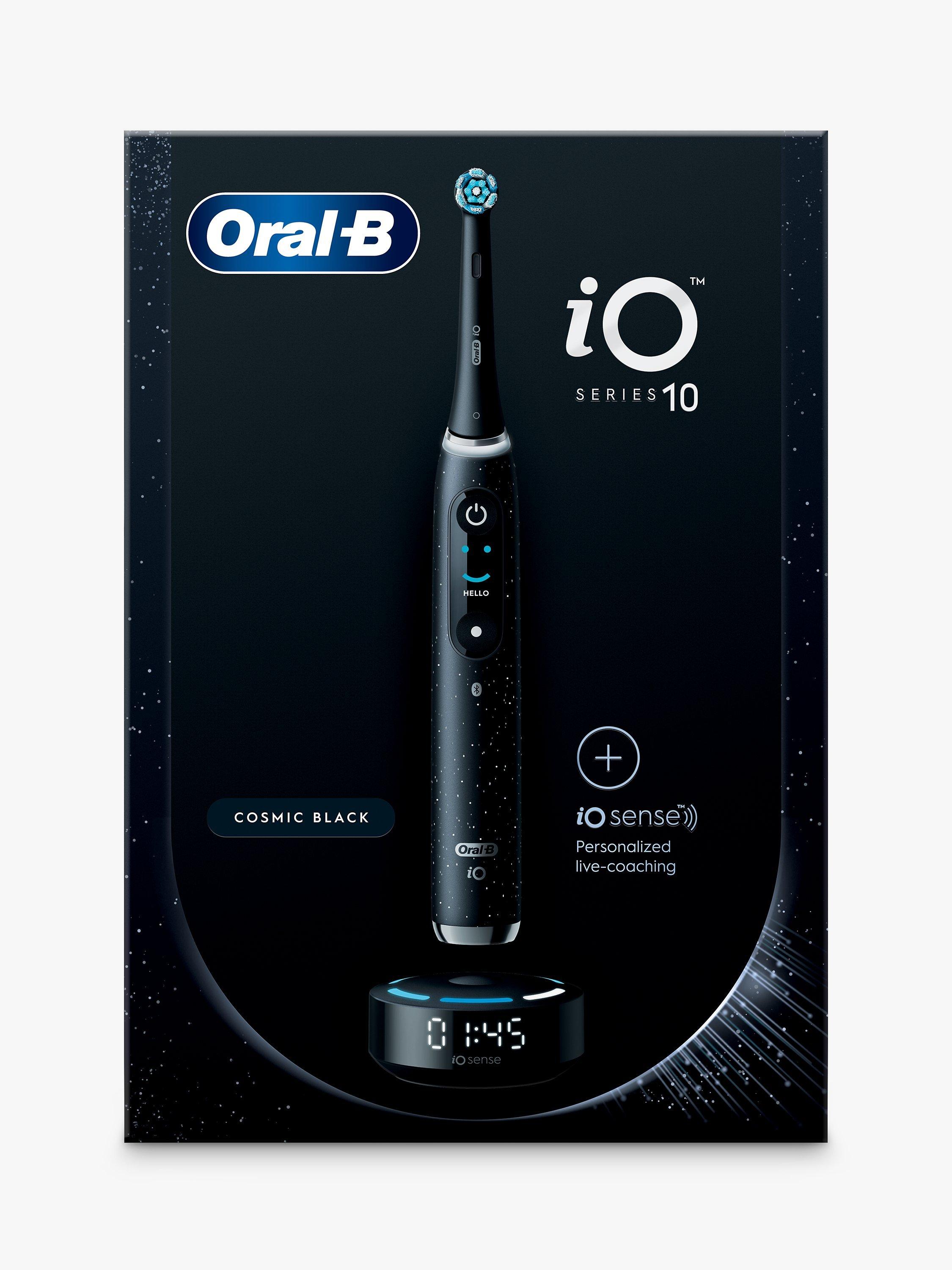 The iO 10 electric toothbrush with the revolutionary iO Sense smart charger personalises your brushing with real-time feedback, guiding you for perfect coverage, brushing time and brushing pressure for a delightfully effortless clean. It combines gentle micro-vibrations with a unique dentist-inspired round brush head for the feel of a professional purifying clean every day. Replace your Oral-B iO toothbrush head every 3 months for the best results.