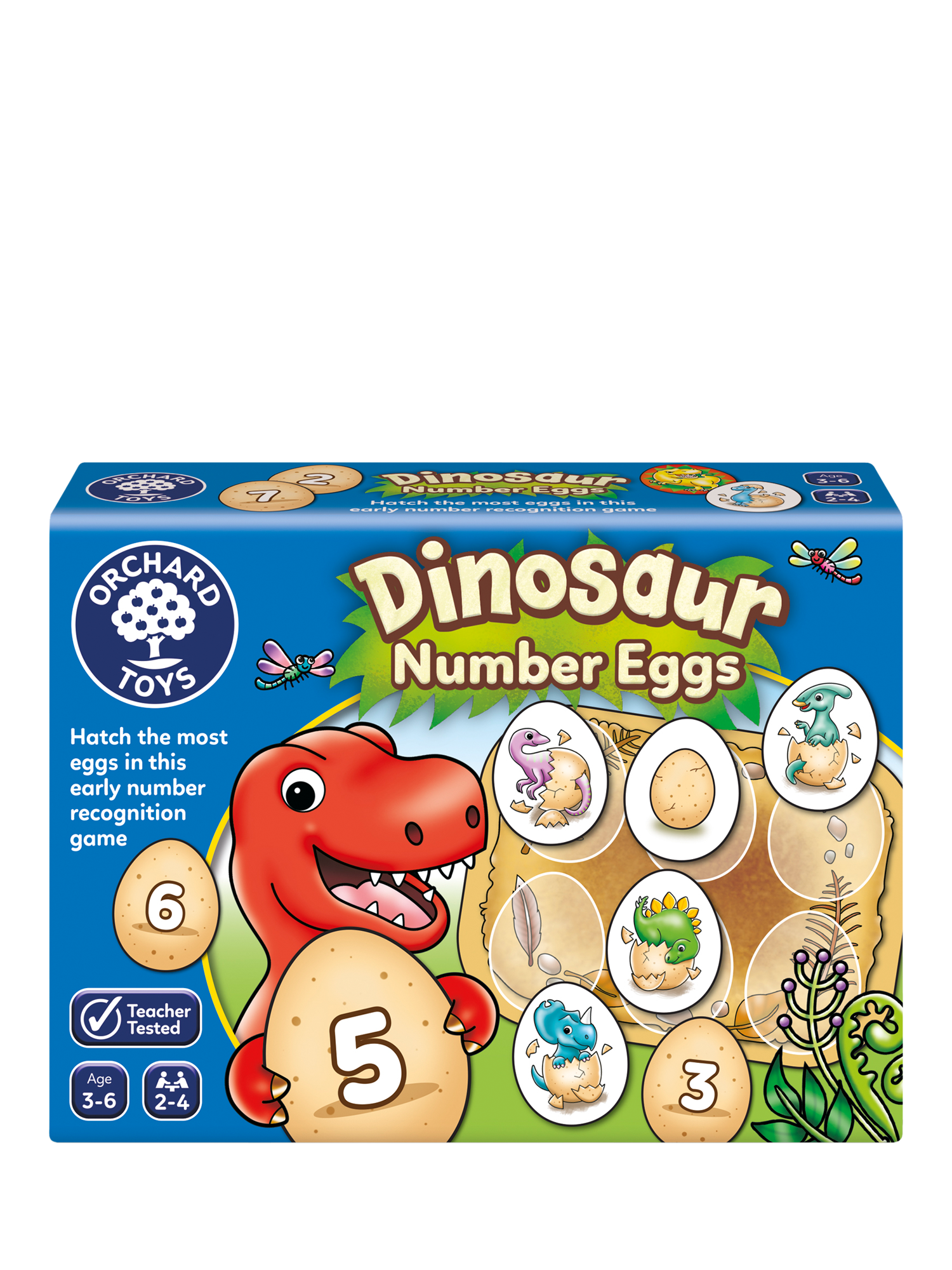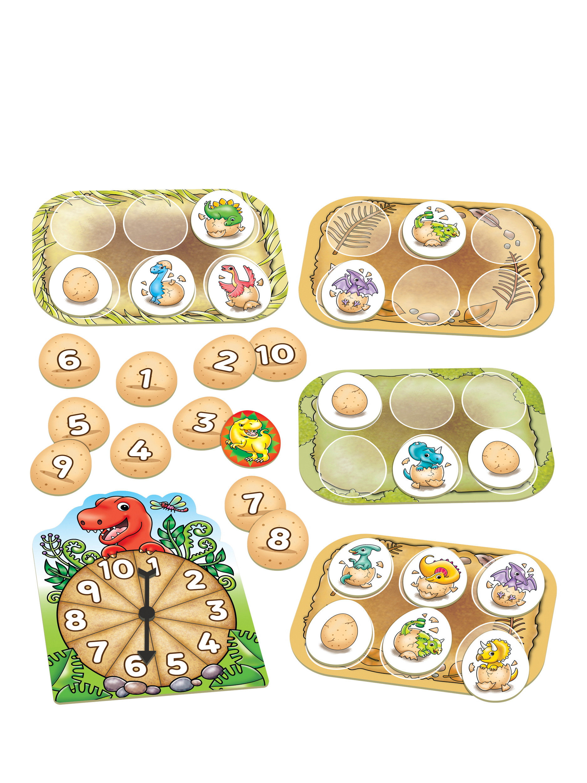 Can you hatch the most baby dinosaurs? Players spin the spinner and match eggs to hatch adorable baby dinosaurs. But beware of the T-Rex wild card, which means you'll need to return an egg! The excitement builds as players race to collect the most hatched dinosaurs by the end of the game. Perfect for developing number and counting skills Dinosaur Number Eggs offers a fun and interactive way to learn while enjoying dino-themed adventure!
