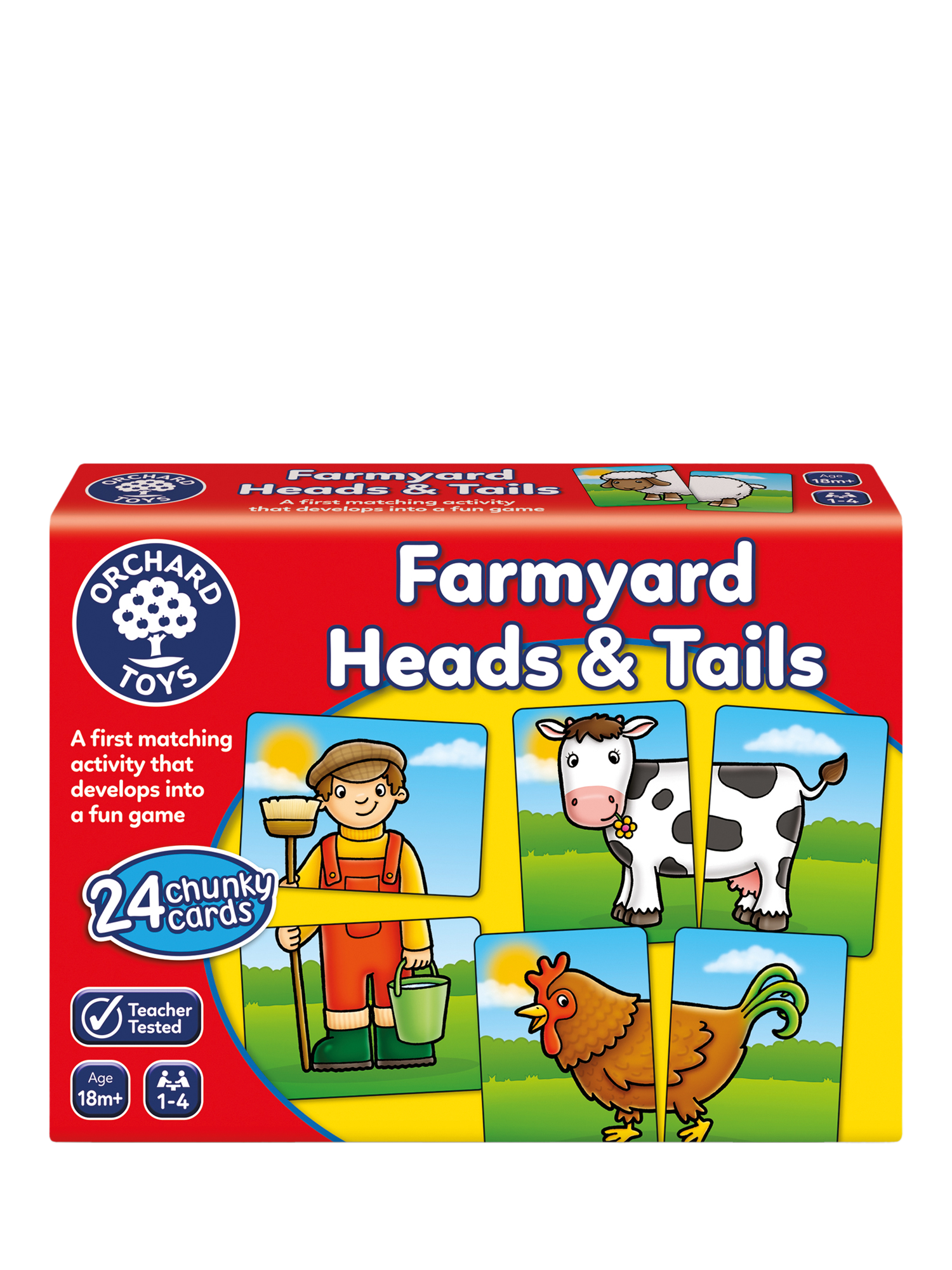 Find the matching heads and tails in this fun, first activity. As children grow in confidence, use the cards in a game of pairs. Featuring 12 adorable farmyard themed characters/items.