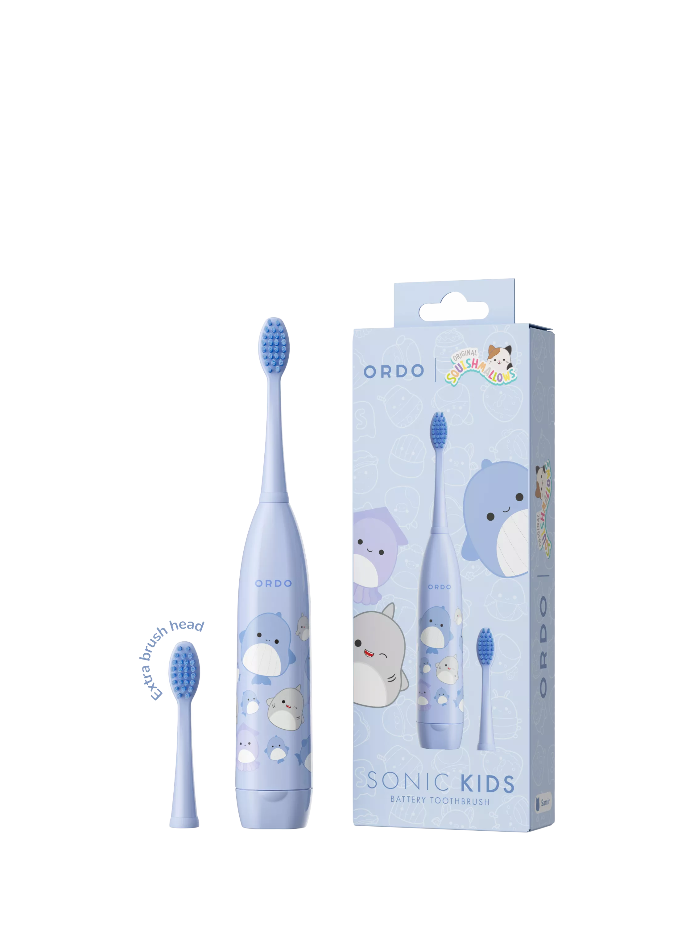 OrdoSquishmallows Samir Sonic Kids Battery Toothbrush, Blue