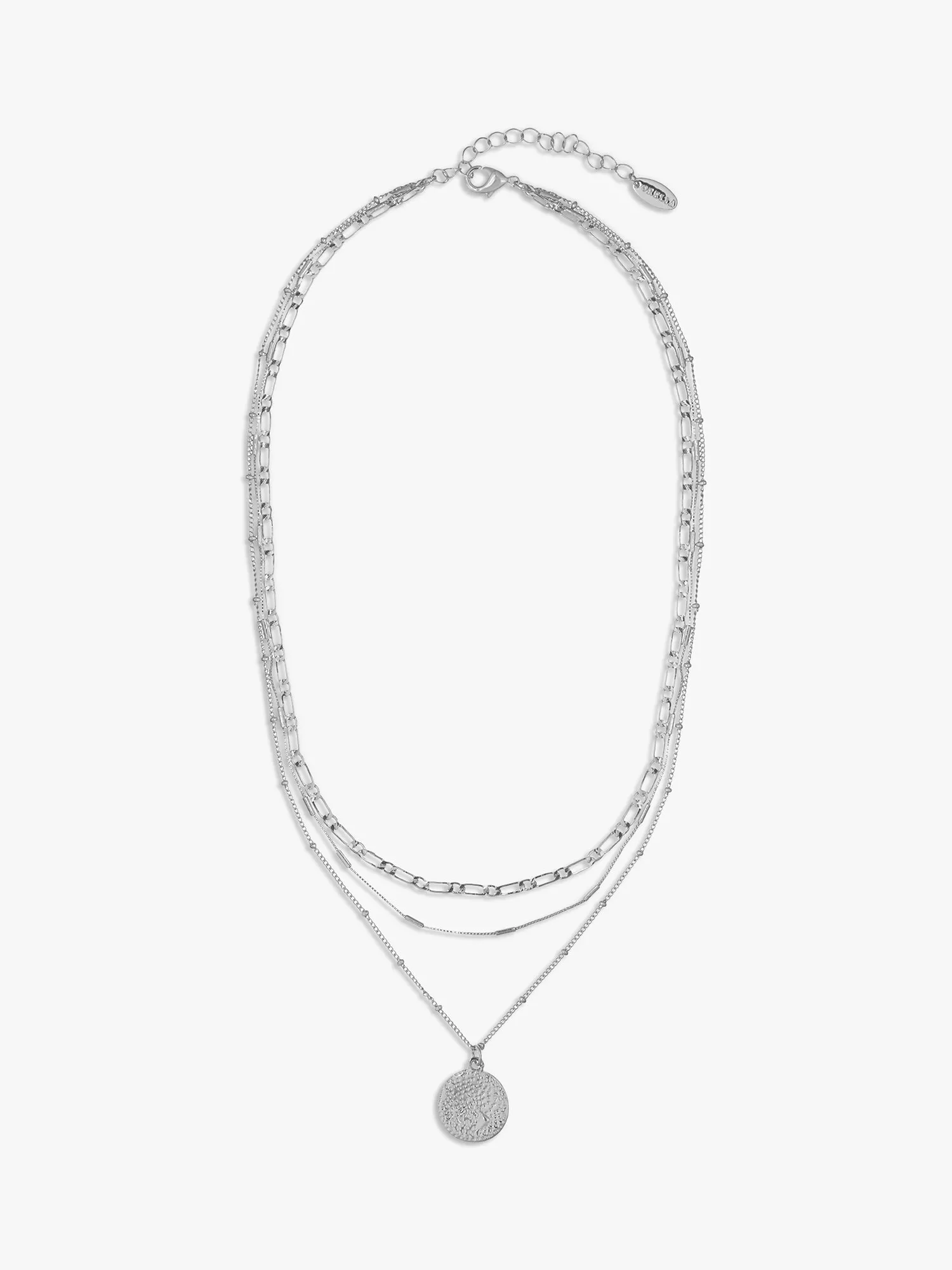 OreliaCoin Triple Chain Layered Necklace, Silver