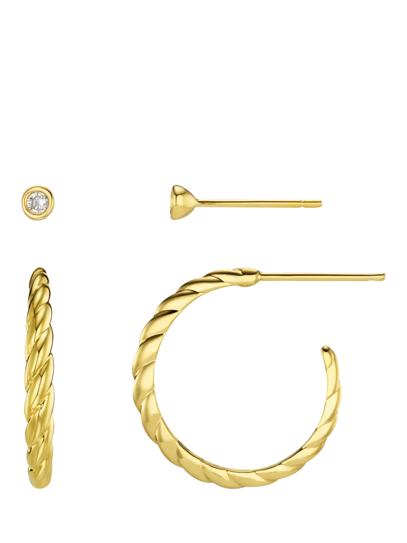 OreliaCrystal & Rope Twist Hoop Ear Stacking Set, Gold