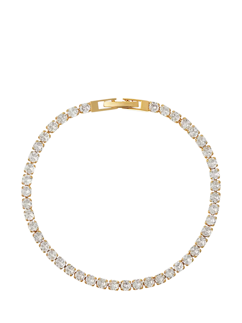 A true statement piece, the Crystal Tennis Bracelet from Orelia is crafted in 18ct gold plate, and adorned with sparkling cubic zirconia crystals on a clasped band.