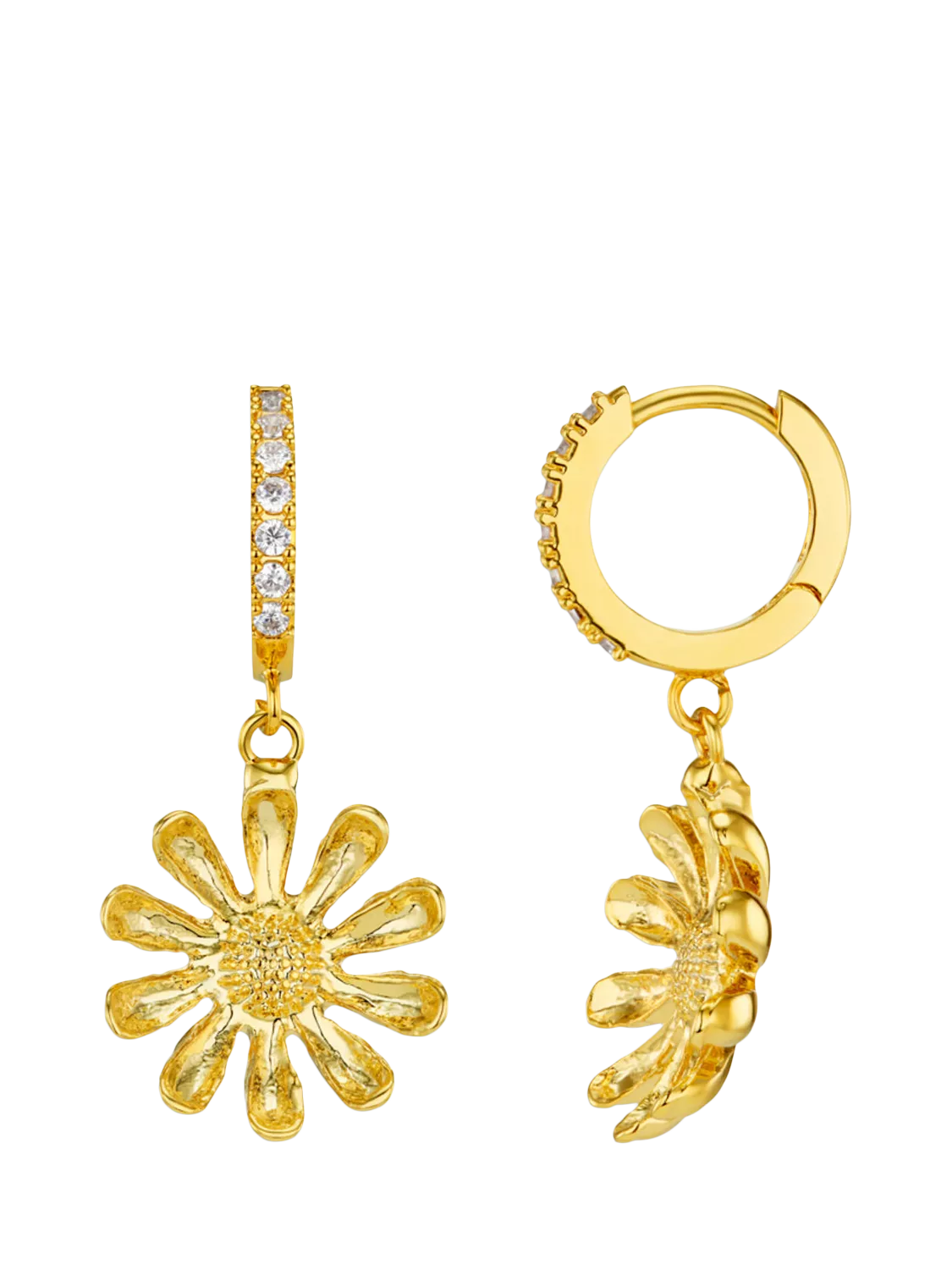 OreliaDaisy and Pavé Hoop Earrings, Gold