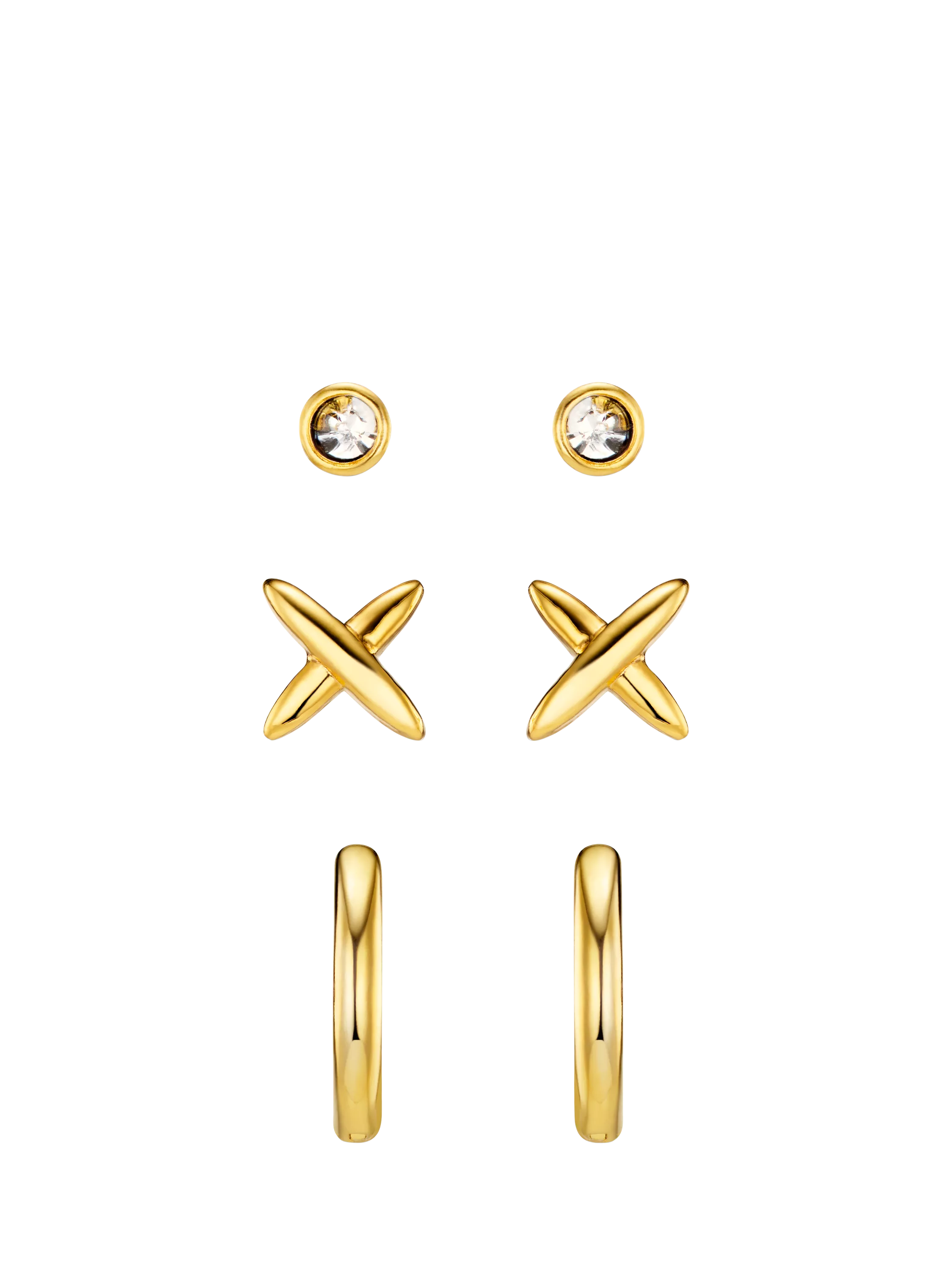Cross & Micro Hoop Pack Ear Stacking Set from Orelia, crafted in 18ct gold-plated brass. Includes three pairs of earrings, suitable for pierced ears only.