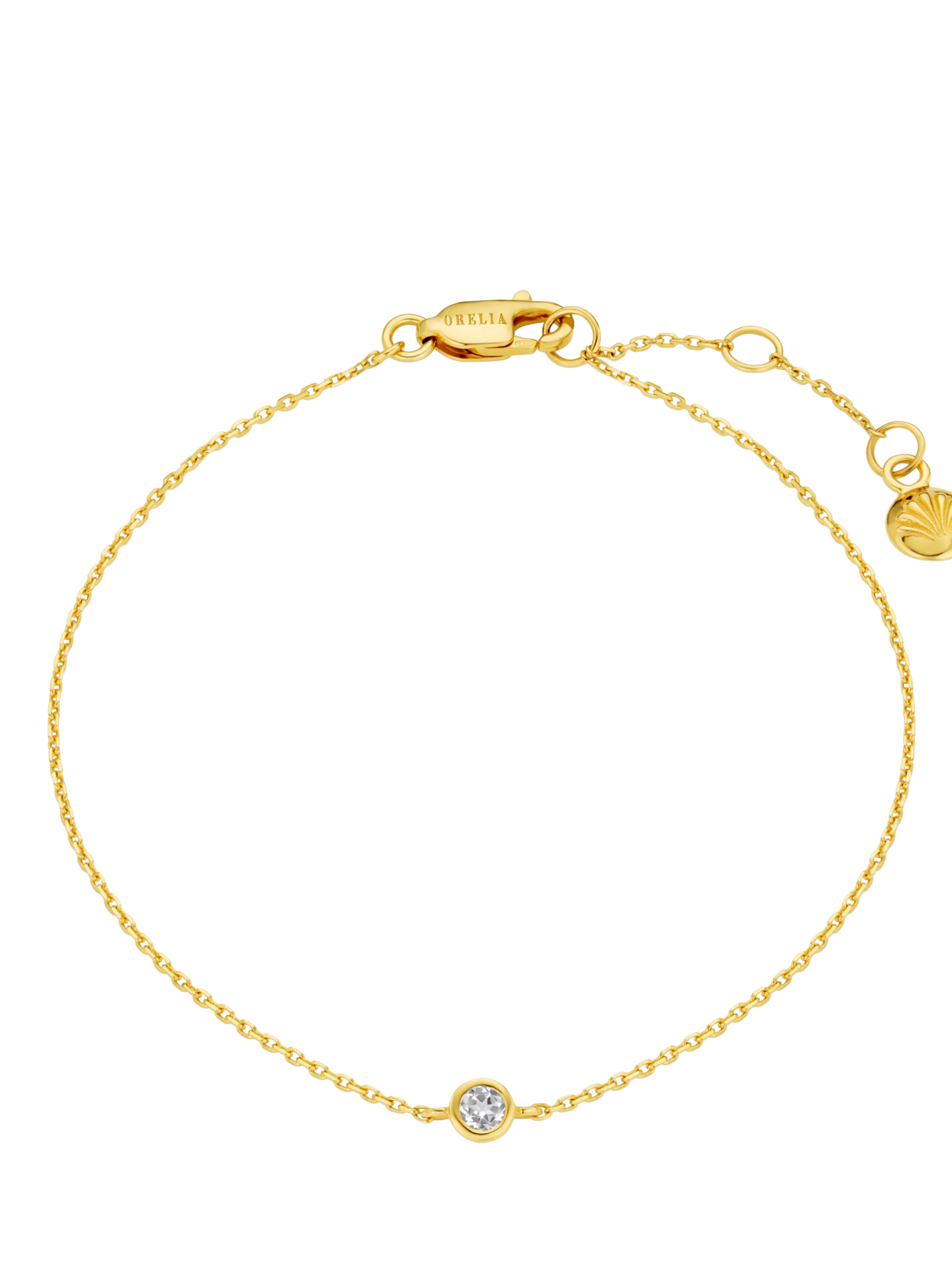 A fine chain bracelet from Orelia, showcasing a cubic zirconia crystal in the centre. This piece is made from gold-plated sterling silver, and is a part of Orelia's LUXE Collection.