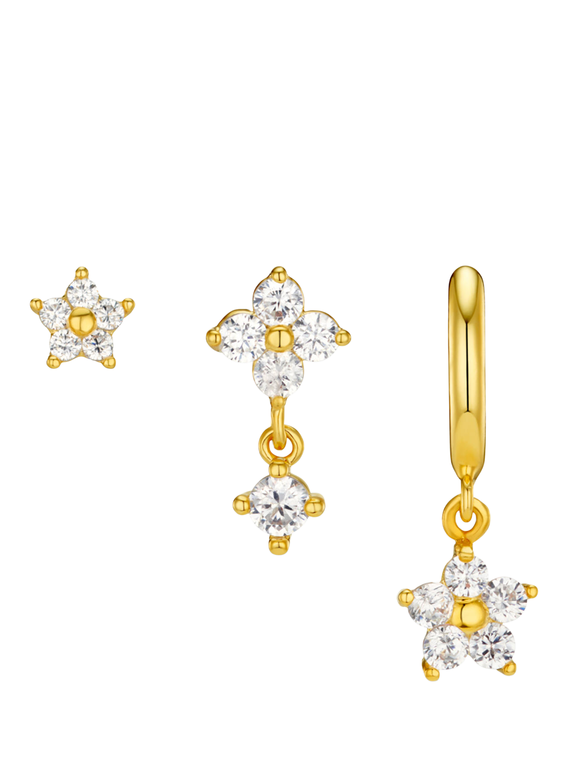 OreliaFlower Ear Stacking Set, Pack of 3, Crystal