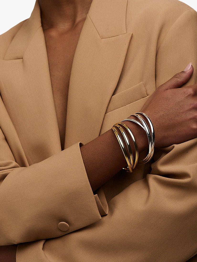 Traditionally worn in stacked combinations (but looking just as chic on its own), this triple bangle from Orelia brings something new to your accessories edit.