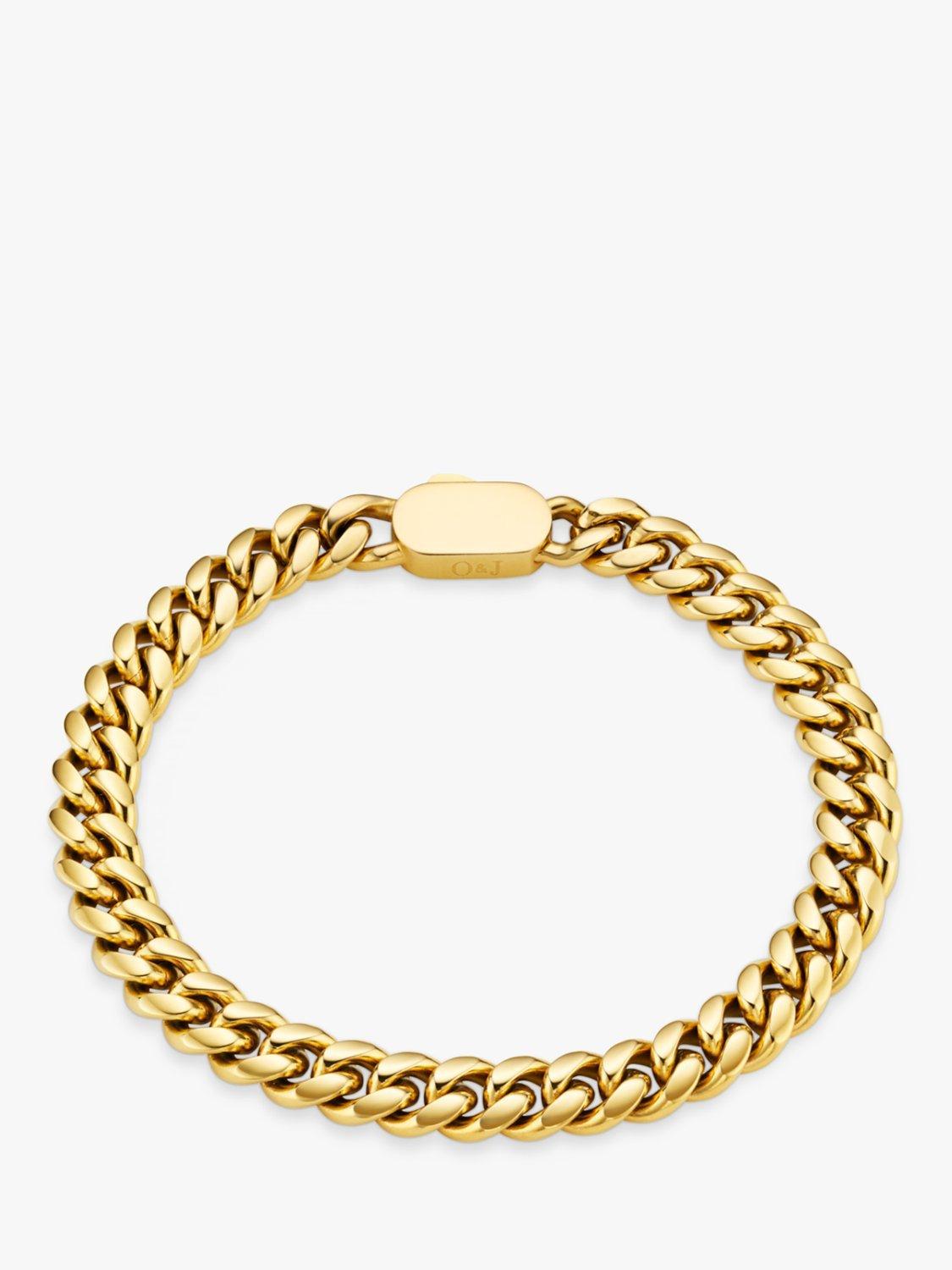 Chunky flat curb chain bracelet in stainless steel with a choice of a gold-plated or silver-plated finish.