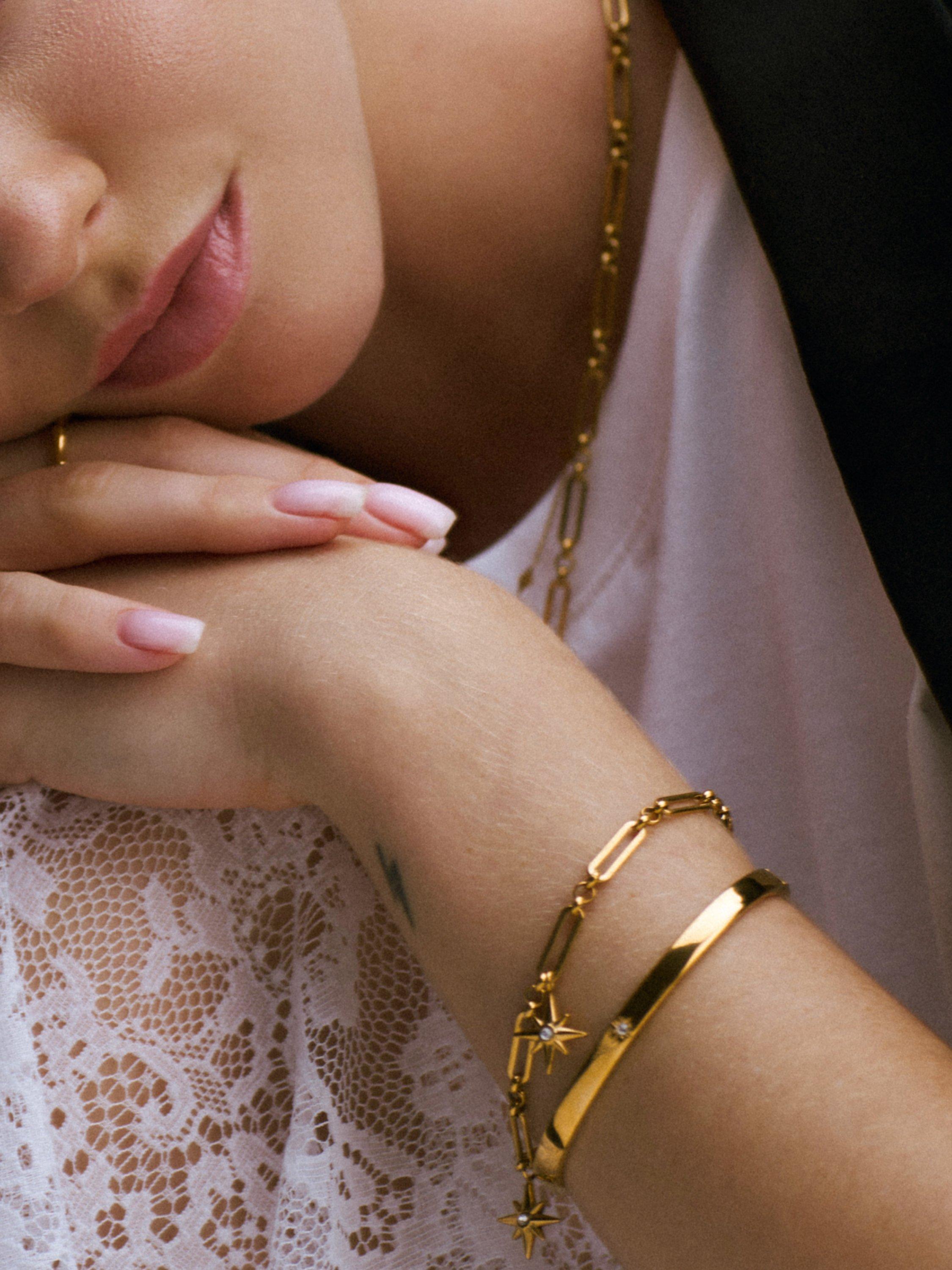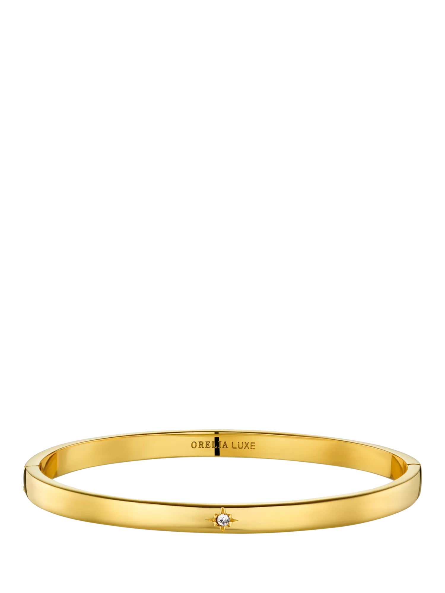 The perfect finishing touch and ideal for stacking, the LUXE Crystal Starburst Hinged Bangle from Orelia is crafted in 18ct gold plate.