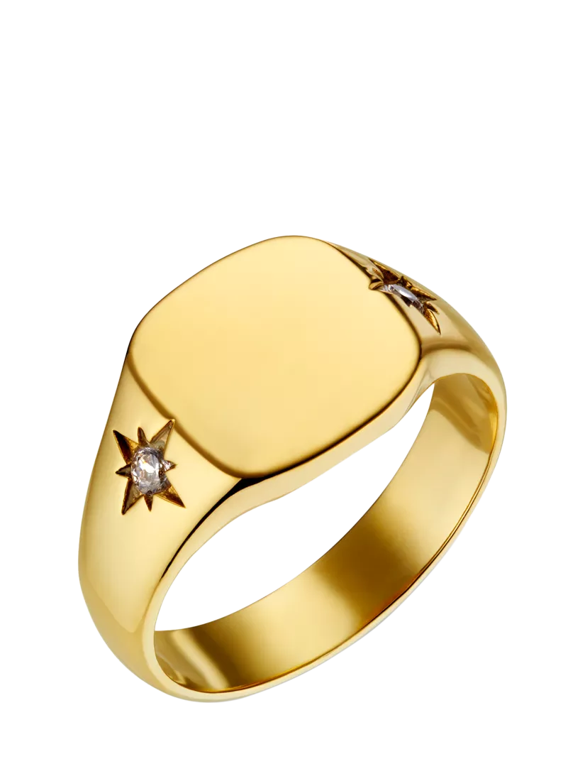 The LUXE Crystal Starburst Signet Ring from Orelia is crafted in 18ct gold plating, and showcases sparkling cubic zirconia crystals on either side, adding an extra special touch to your look.
