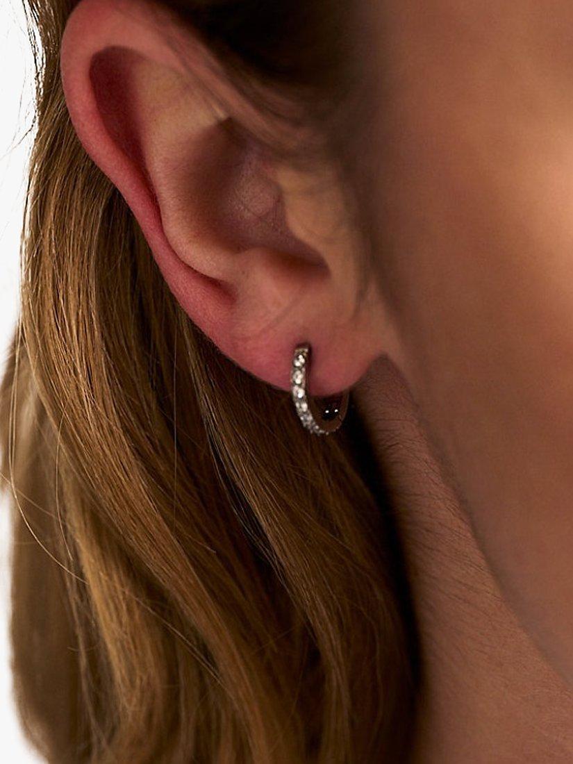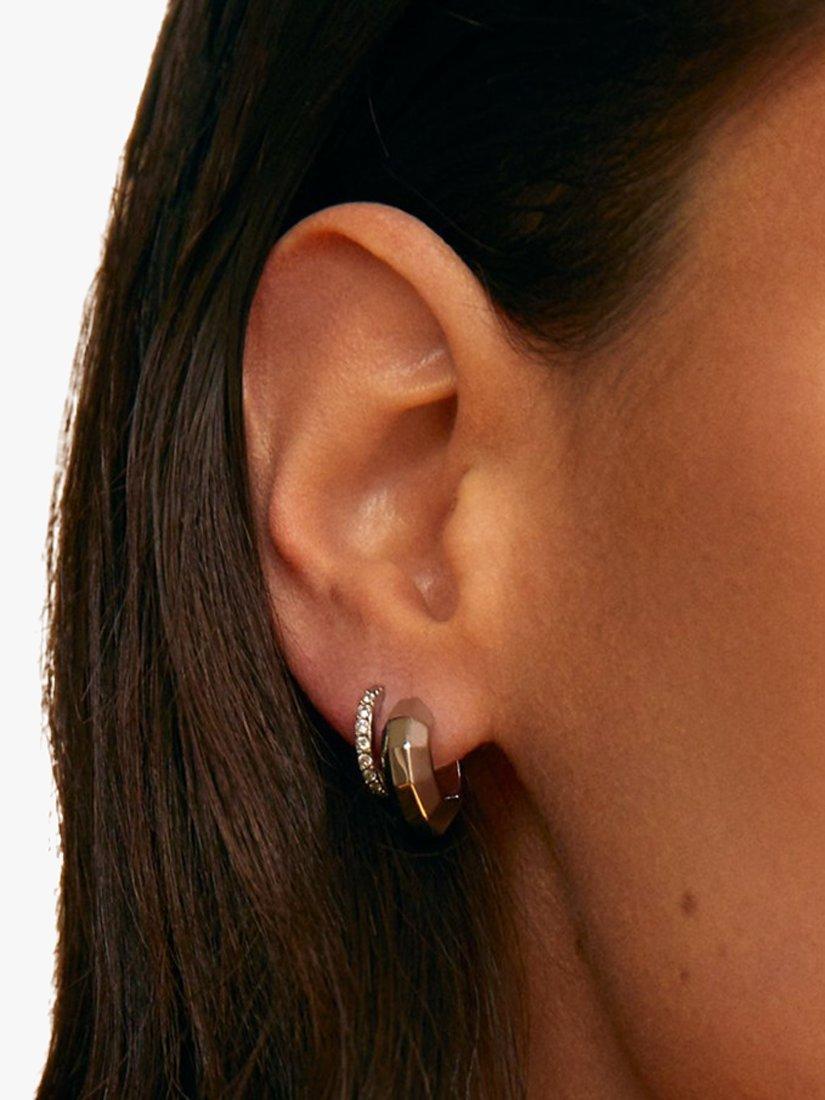 Delicately ornamenting the lobes, this pair of huggie hoop earrings from Orelia is studded with cubic zirconia.