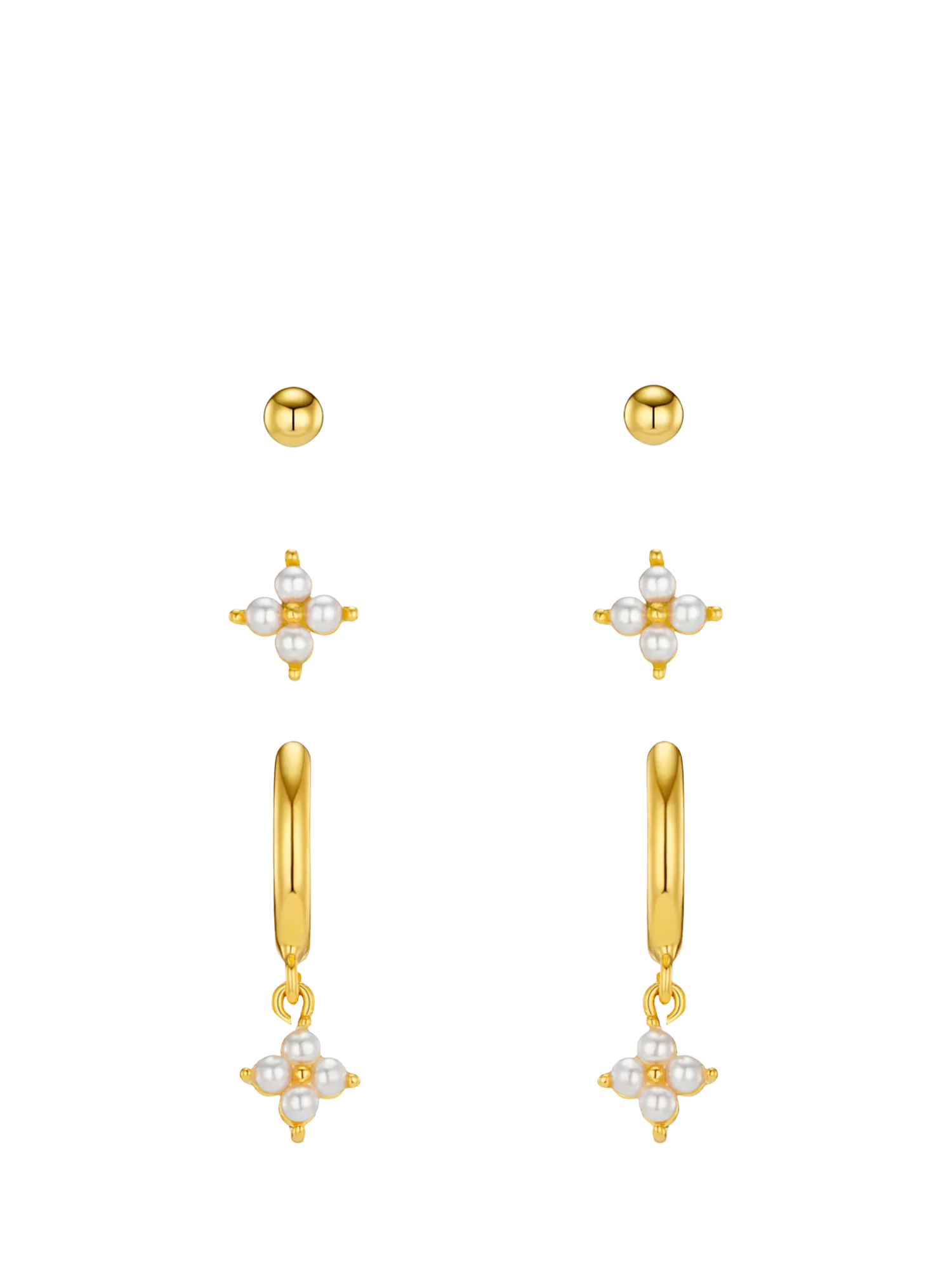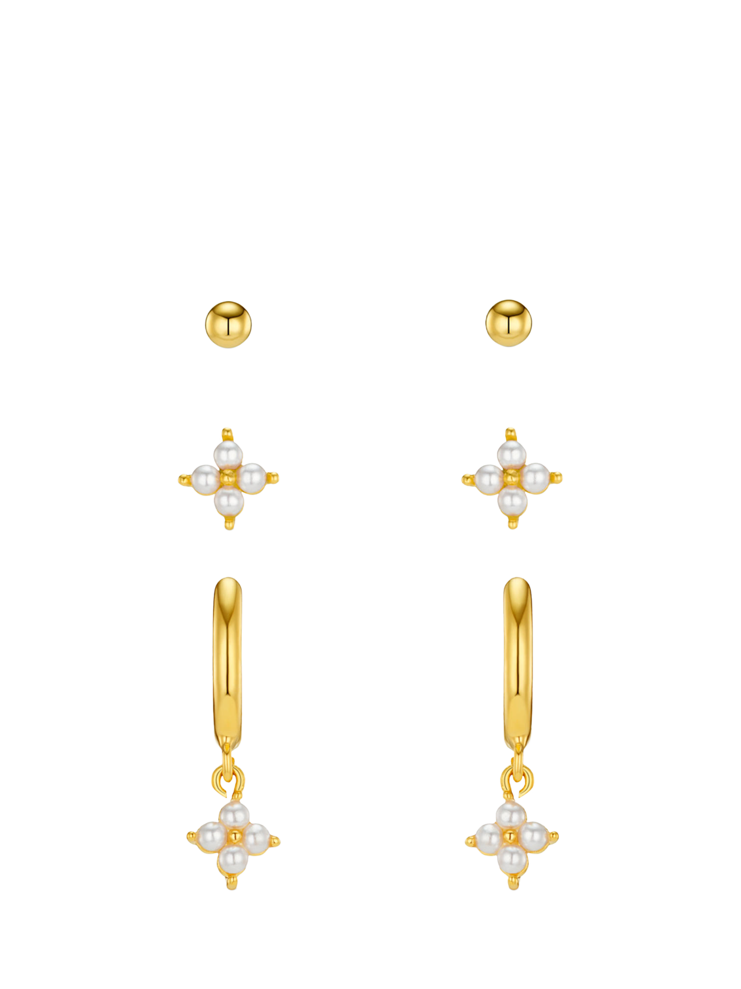 Micro Floral Ear Stacking Set from Orelia, plated in 18ct gold with pearl detailing. Set of three pairs. Suitable for pierced ears only.
