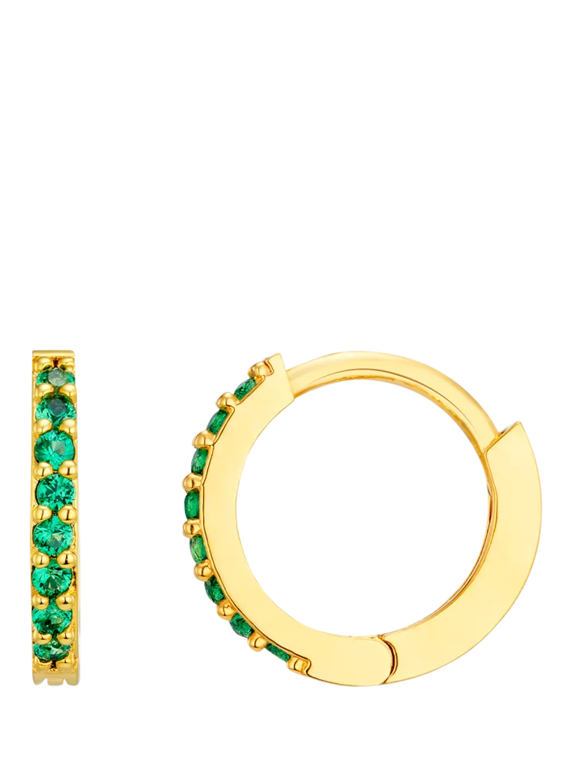 OreliaMini Emerald Micro Pavé Hoop Earrings, Gold