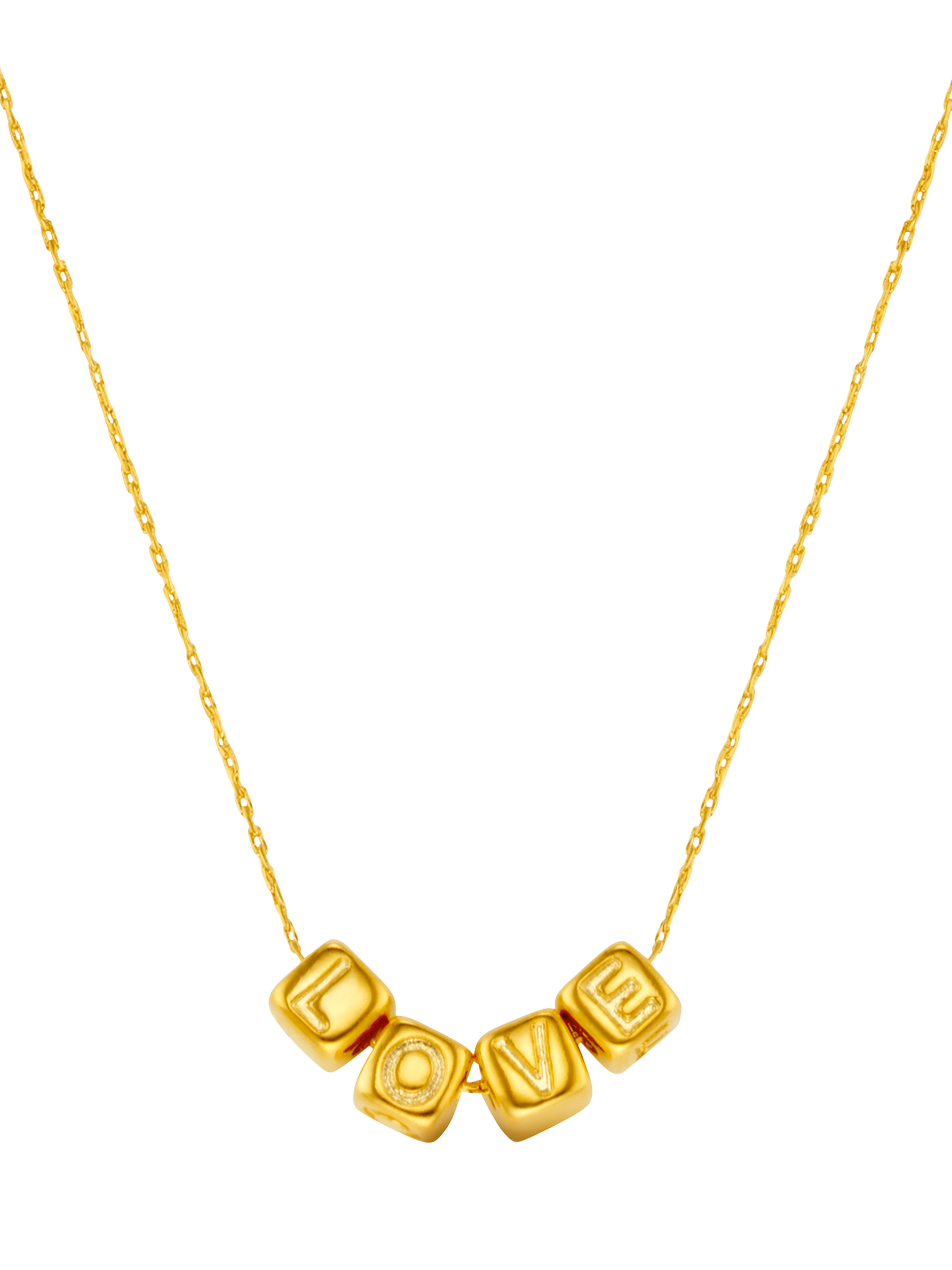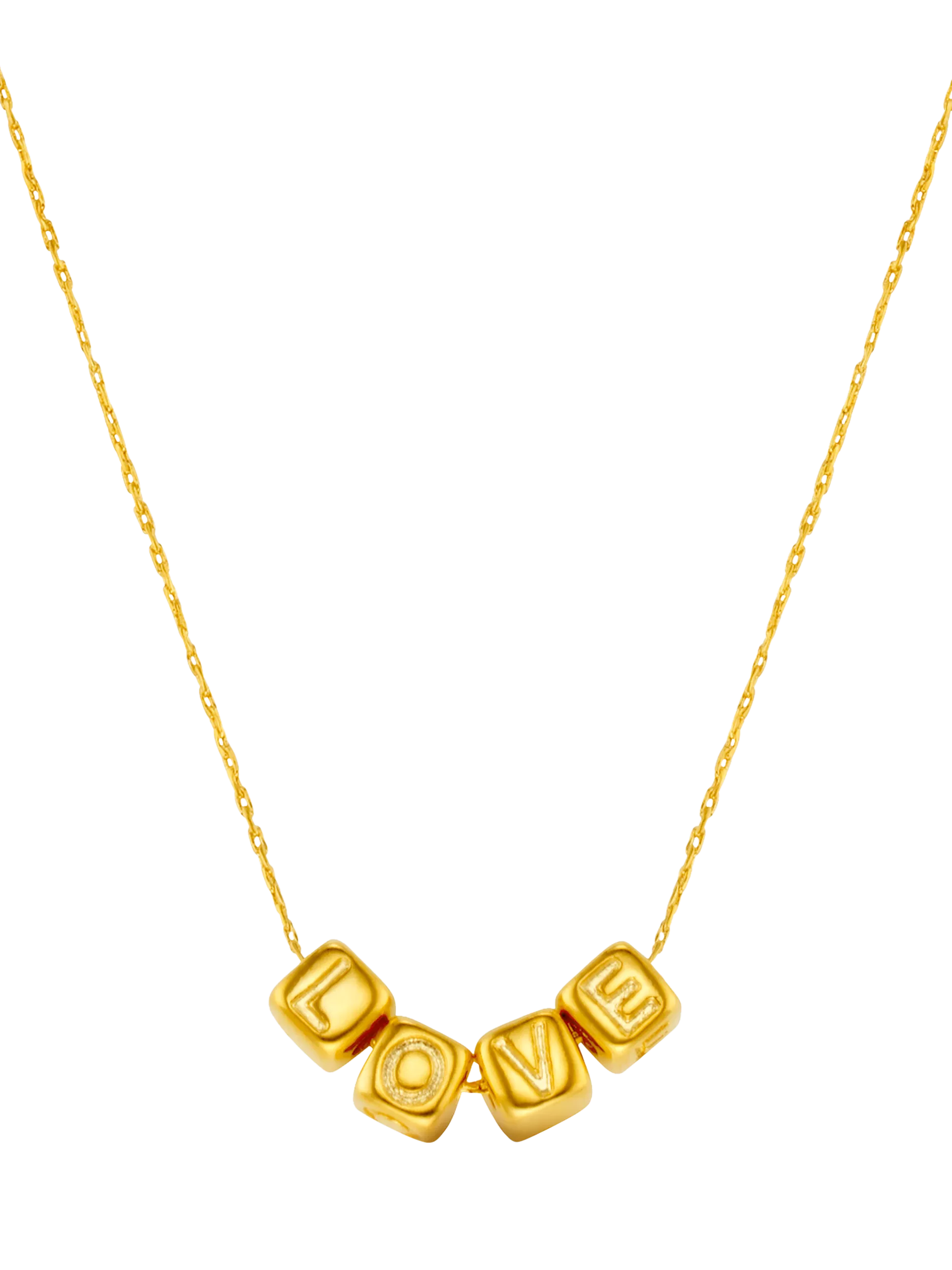 Mini LOVE Block Chain Necklace from Orelia, plated in 18ct gold. Secured with an adjustabe lobster clasp.
