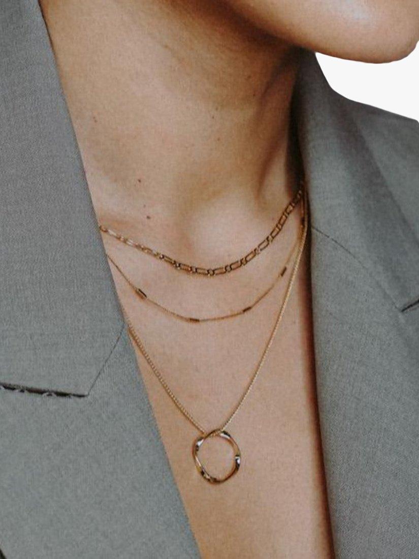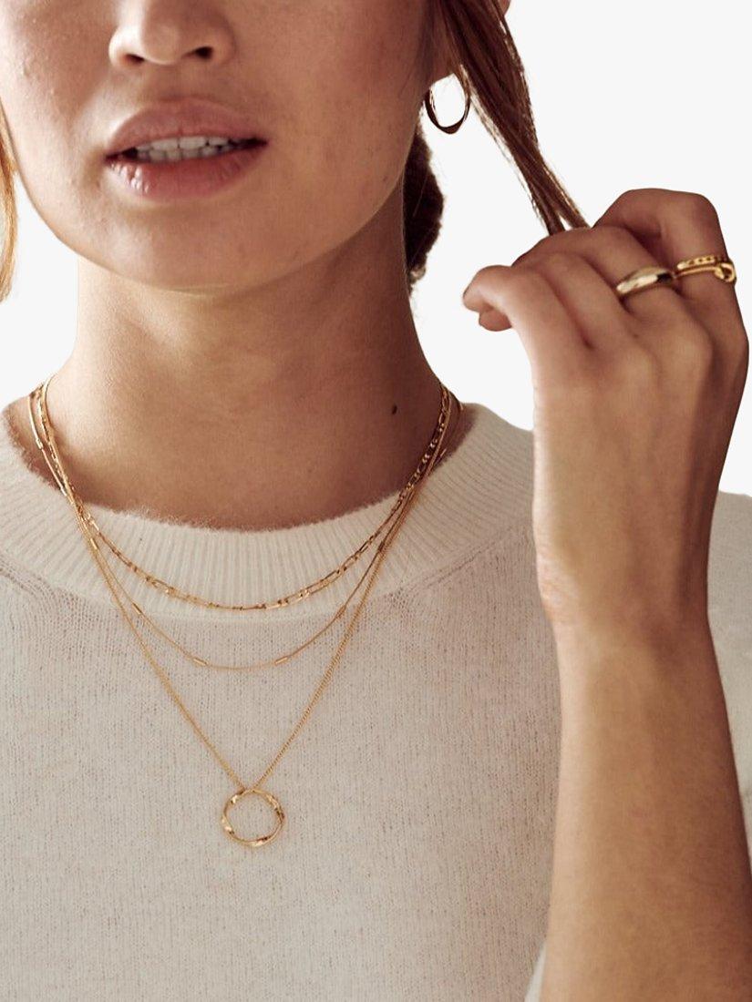 Featuring a short dainty figaro chain, a fine link style necklace and ending witha subtle twisted gold open circle pendant, this necklace from Orelia offers an easy accessories refresh.