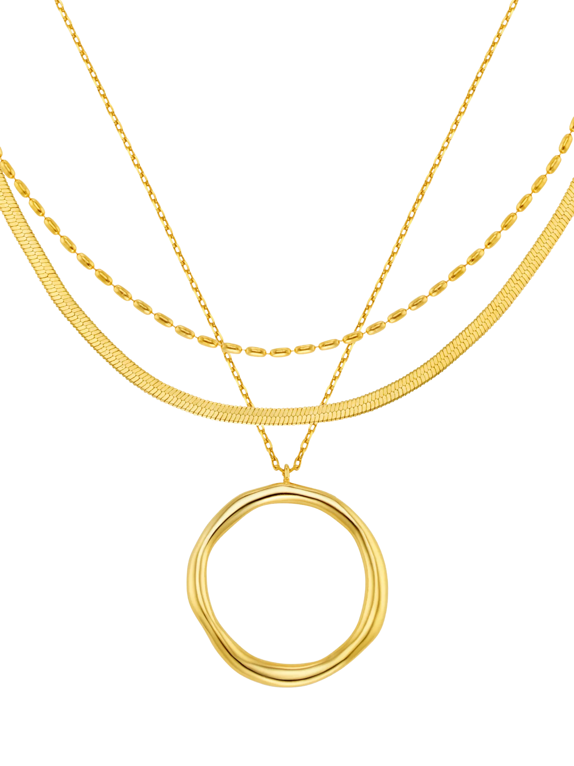 OreliaOrganic Open Circle Three Row Layered Necklace, Gold