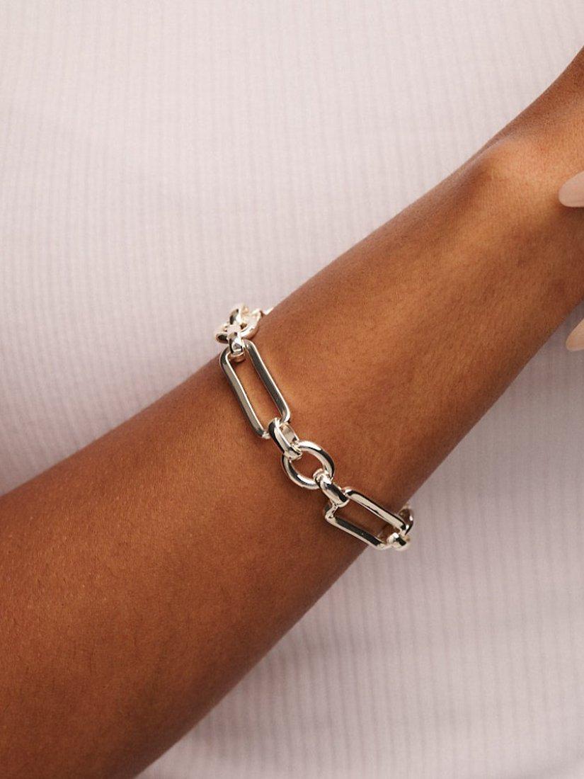 Chunky and bold, this Rectangular Link T-Bar Bracelet features an alternating chain of long rectangular and oval links and an on-trend t-bar fastening.
