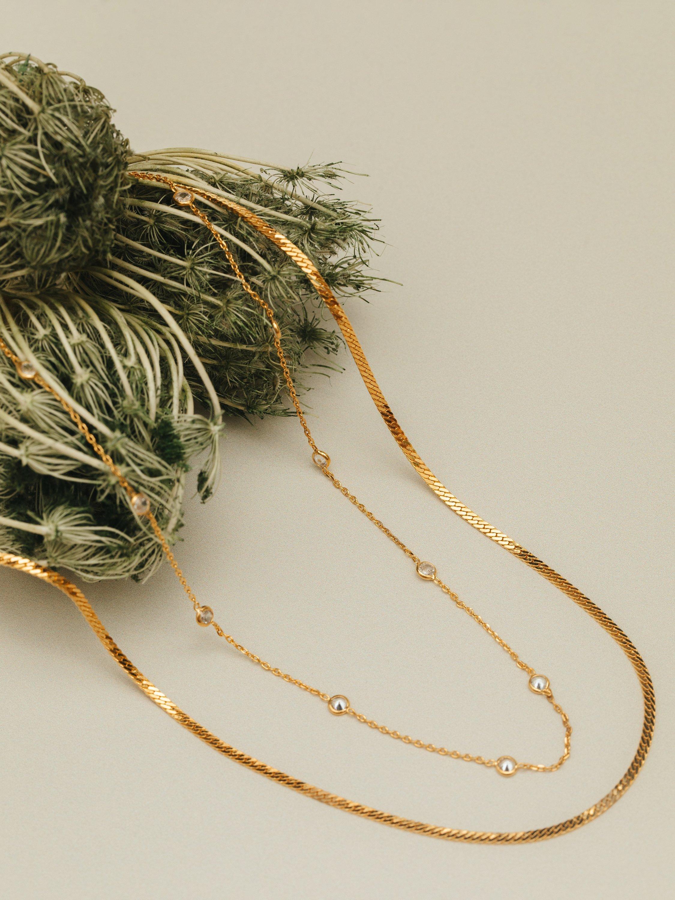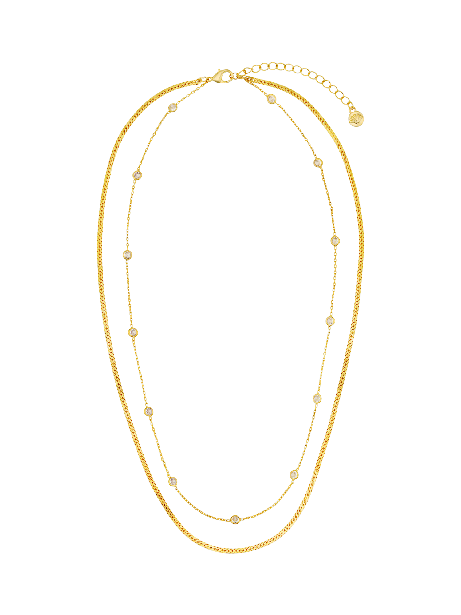 Stationed Snake 2-Row Necklace from Orelia, plated in 18ct gold with crystal detailing. Ideal for wearing solo or stacking with your favourite chains.