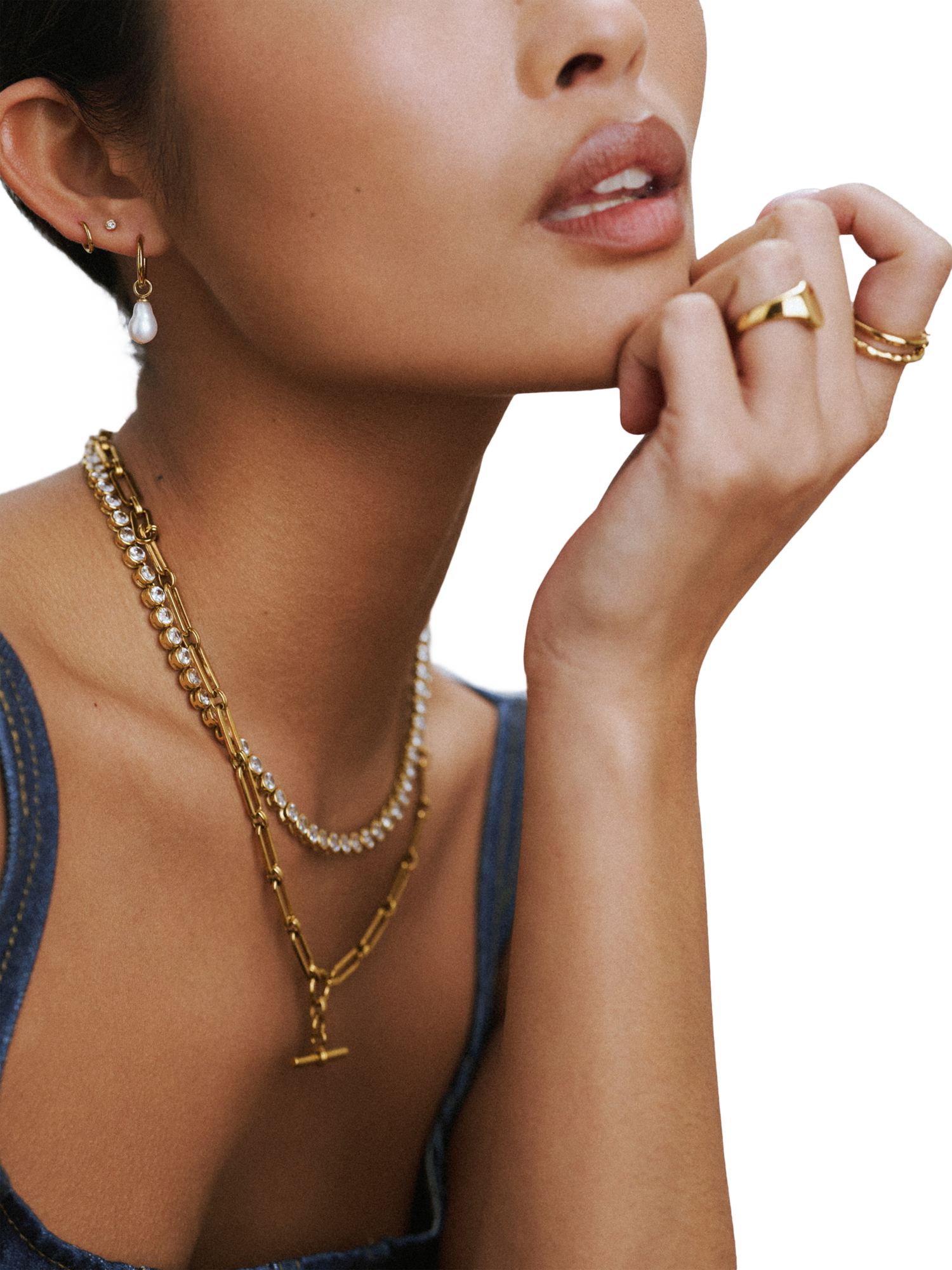 Waterproof LUXE Crystal Ring Pack from Orelia, plated in 18ct gold. One ring features a textured molten effect, while the other showcases a sparkling cubic zirconia crystal. Pack of two. Size is Medium/Large.