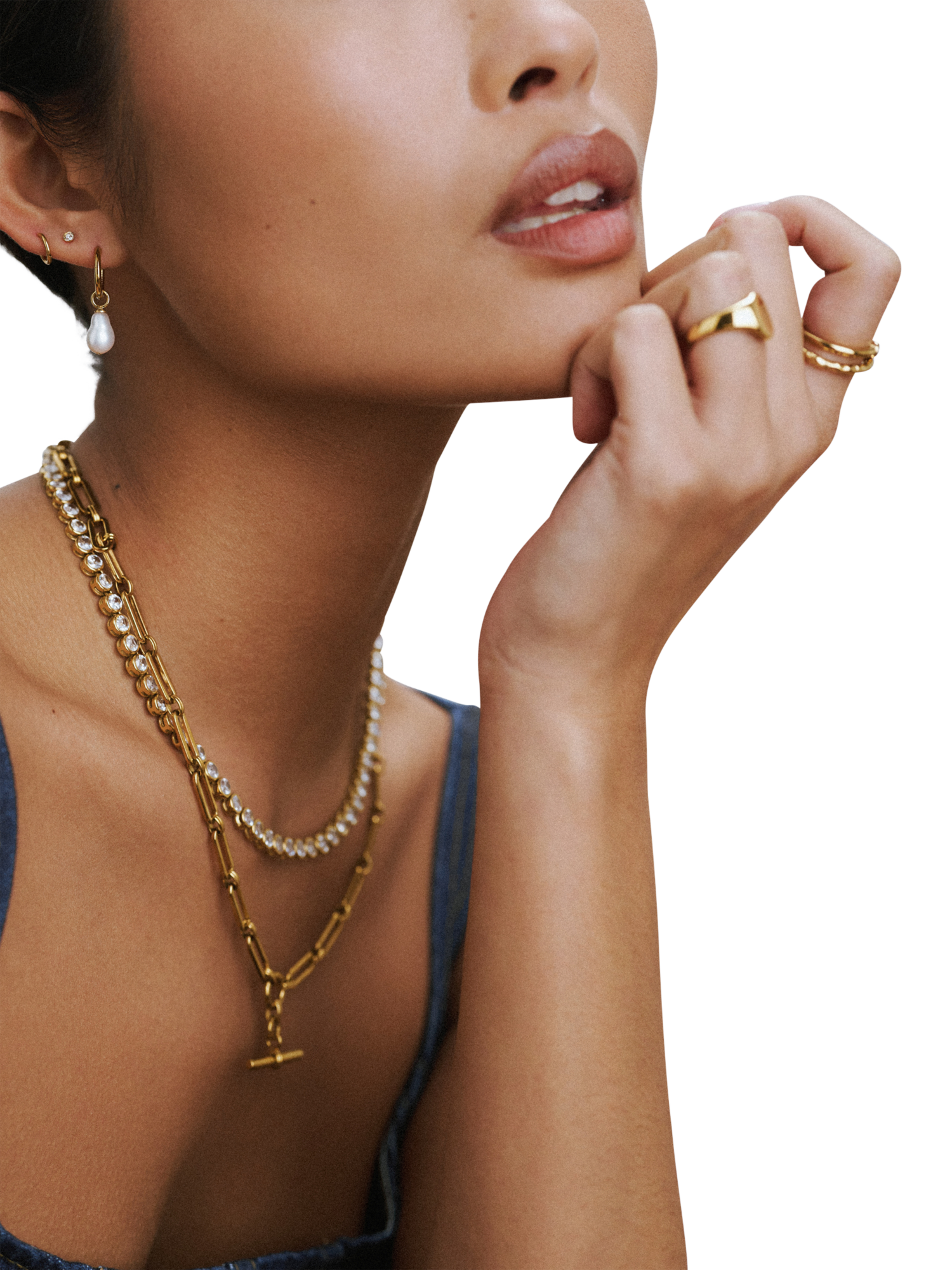 OreliaWaterproof LUXE 2-Pack Crystal Ring, Gold, Small/Medium