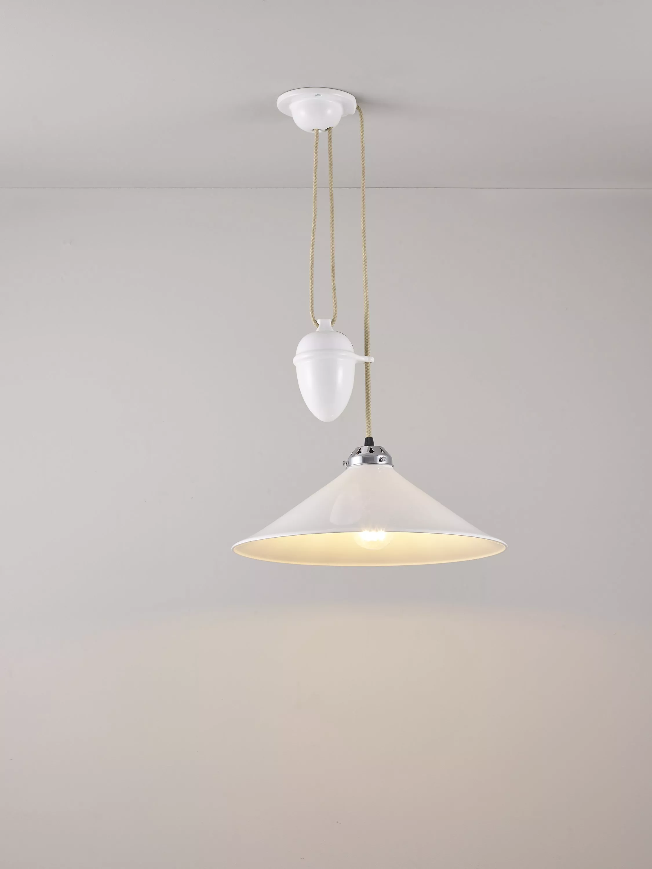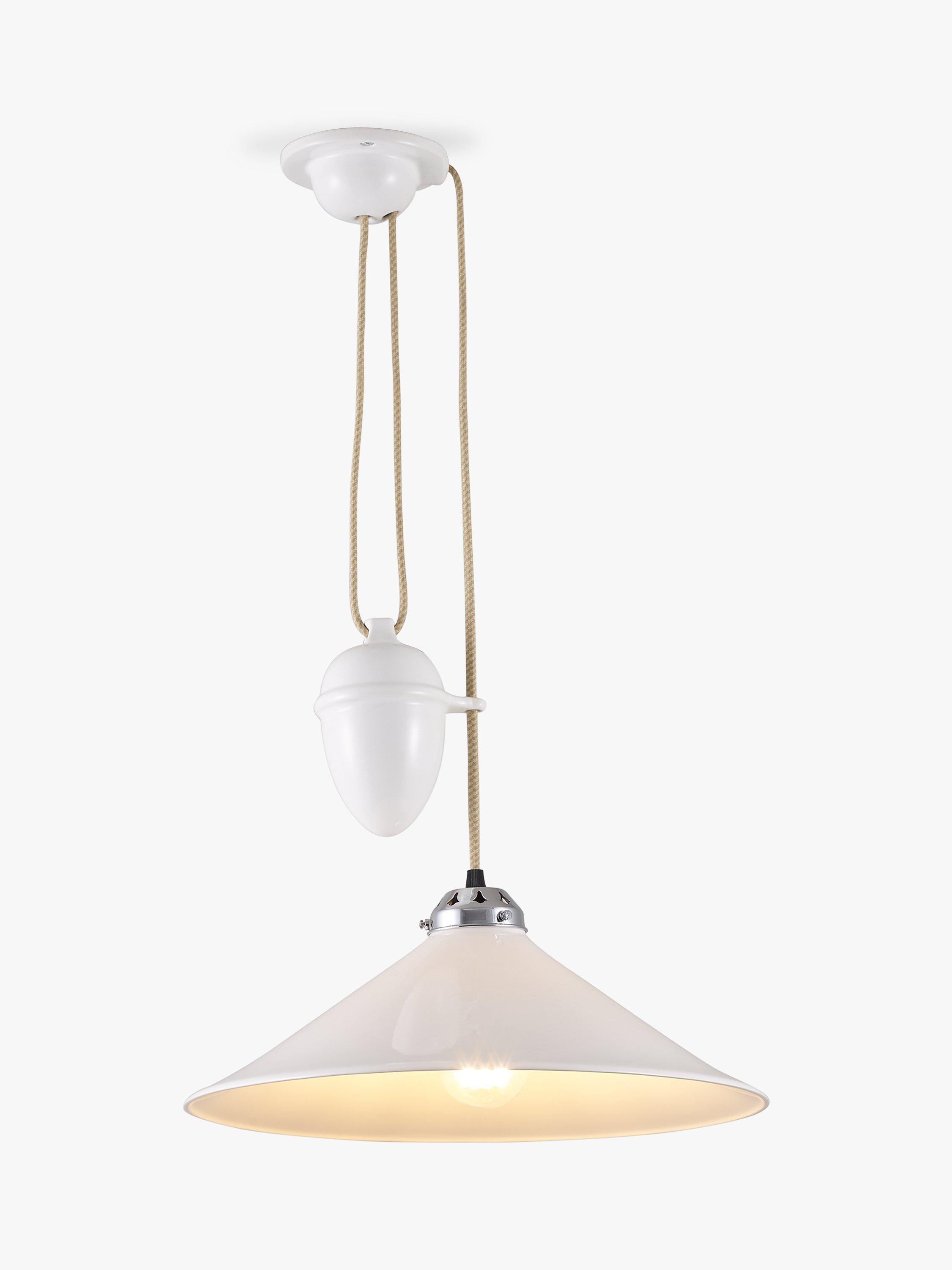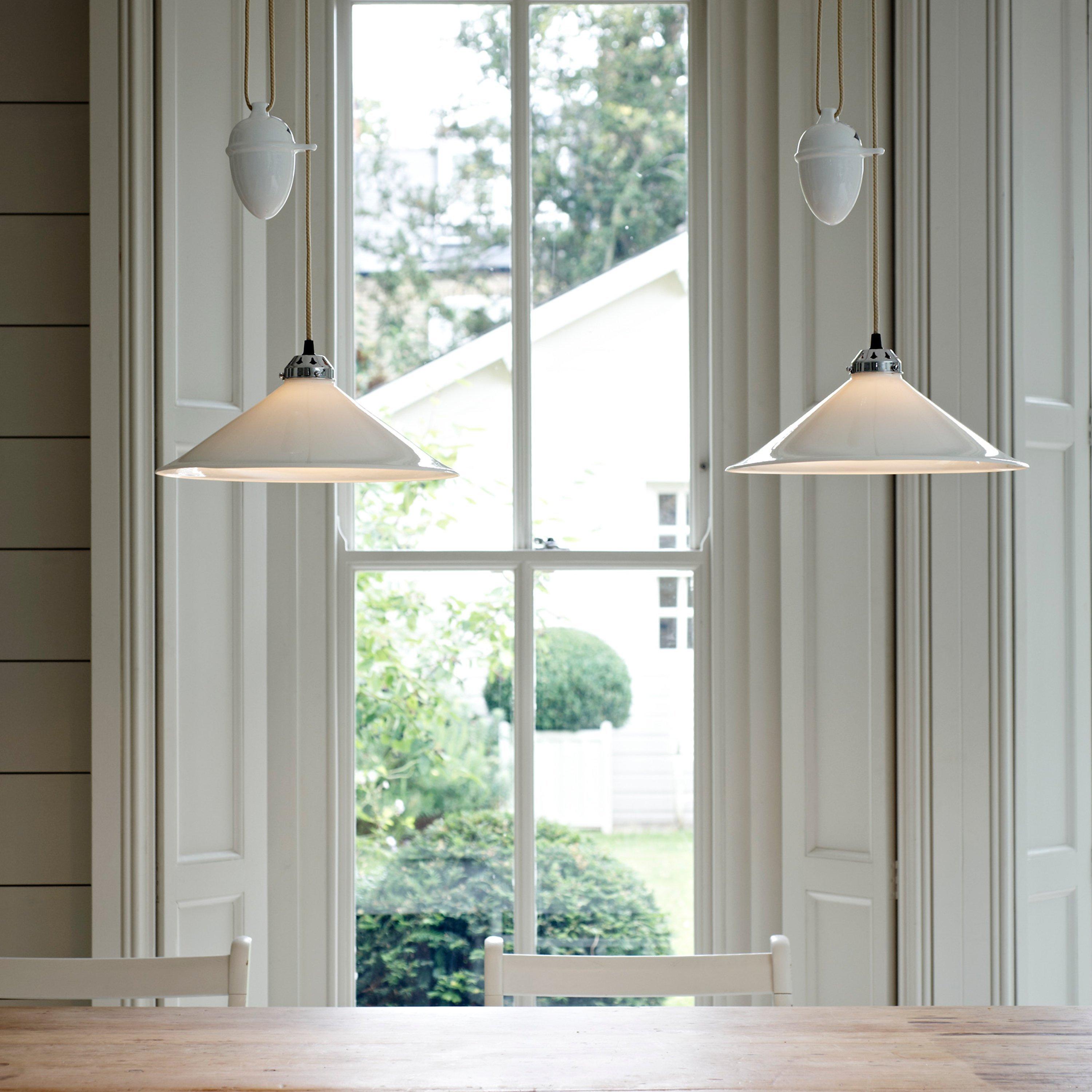 A classic design with a modern twist, the Cobb ceiling light from Original BTC is designed with a rise-and-fall mechanism, allowing you to effortlessly adjust the shade height to your preference within your space. The high-quality bone china shade allows a warm, direct and ambient glow of light to shine through, and varying the height of the shade will create varying lighting effects.