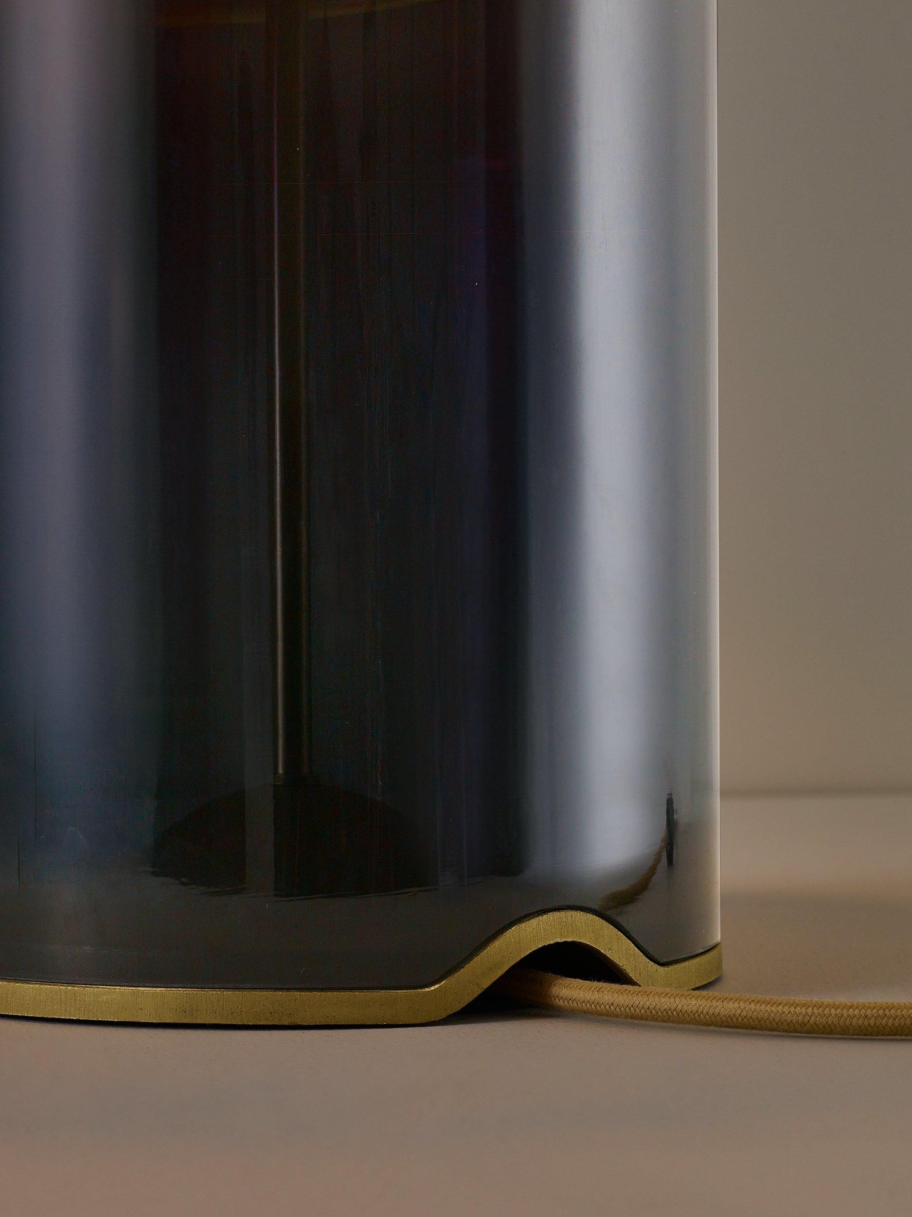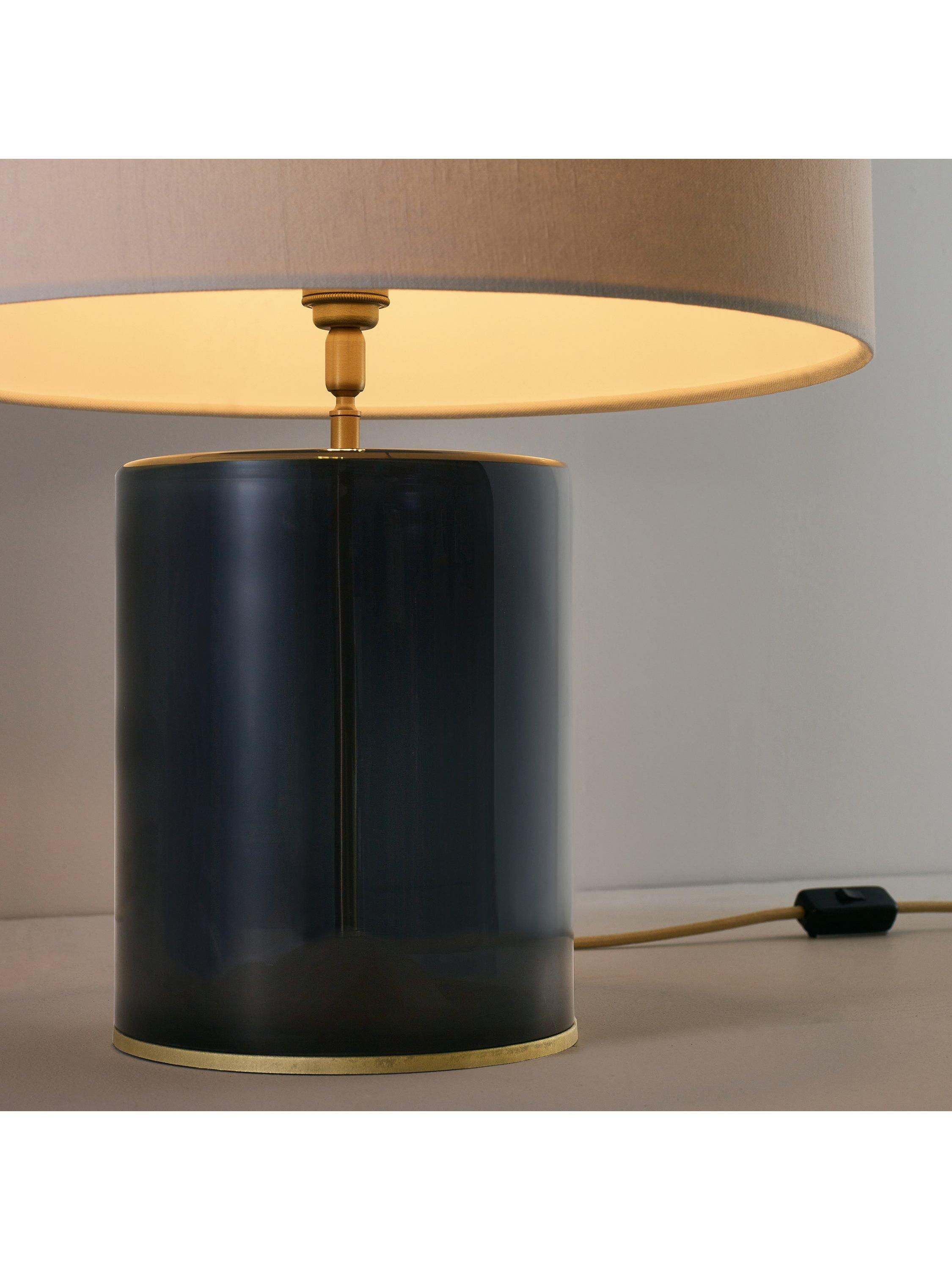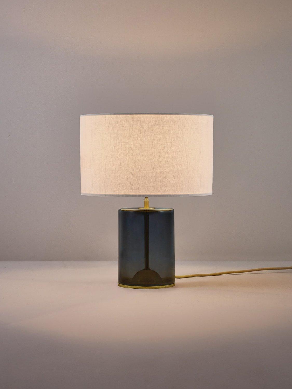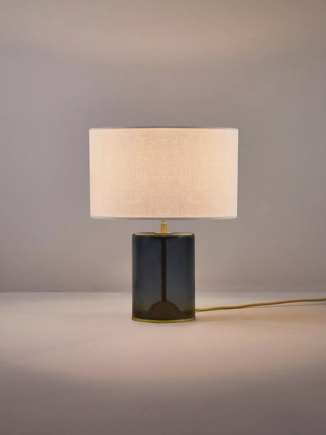 The Crosby table lamp is created with meticulous attention to detail and will elevate any interior with its fine materials and quality finishes. Its appealing form is defined by two cylindrical shapes: the sleek, mouth blown glass base and the textured linen shade. A gentle dome is ground down within the base to create a neat opening for the cotton braided cable. The Crosby also showcases a ball joint, so the shade can be easily tilted for optimal reading illumination.