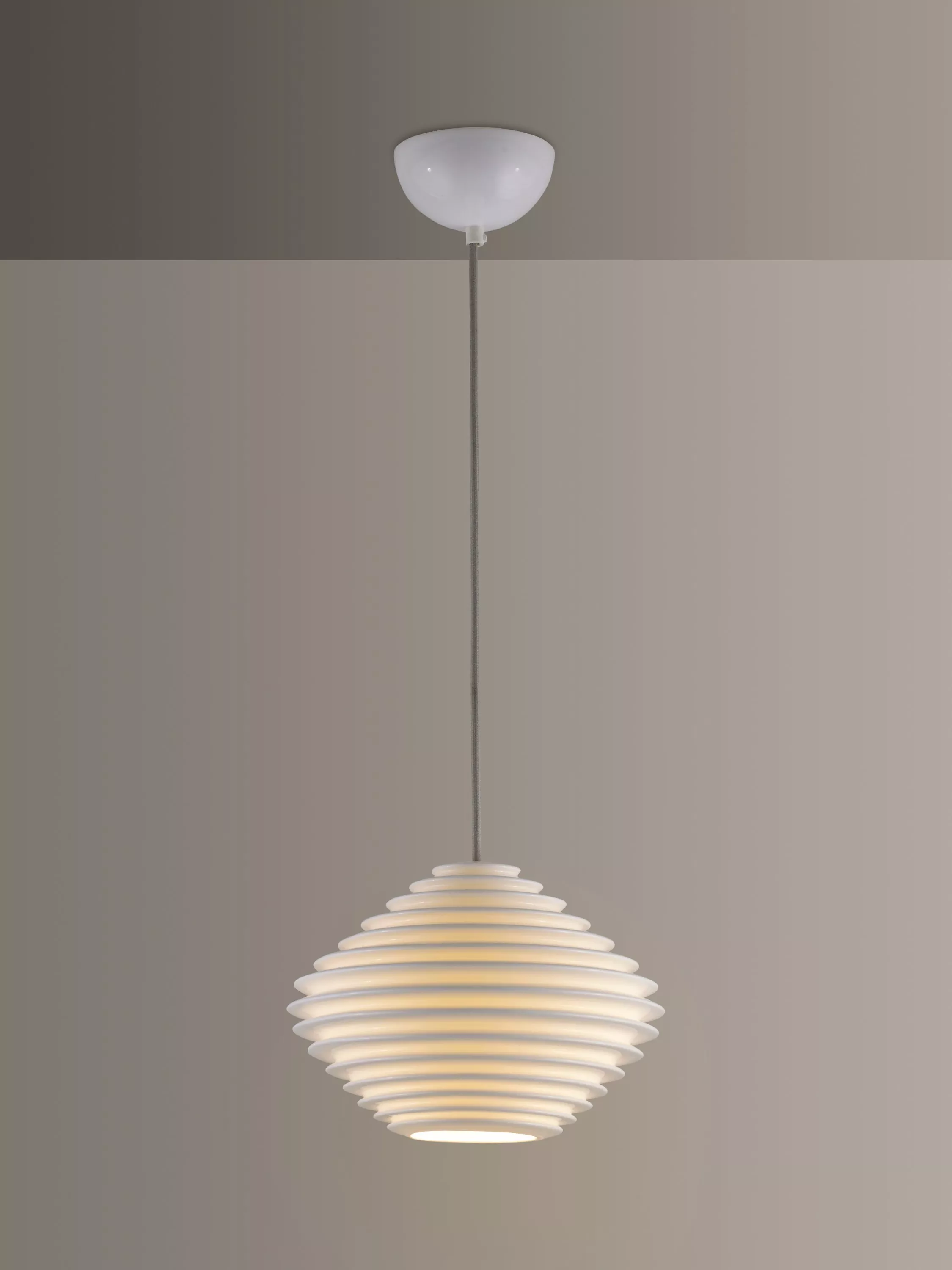 Inspired by organic forms and carefully moulded into an eye-catching, stacked silhouette, the Fin Horizontal Pendant from Original BTC will lend a striking addition to your home decor. When switched on, light catches on its intricate bone china shade, accentuating its natural construction. Suspended from a trademark adjustable braided flex, this ceiling light will look equally as impressive when installed individually or combined in multiples of three.