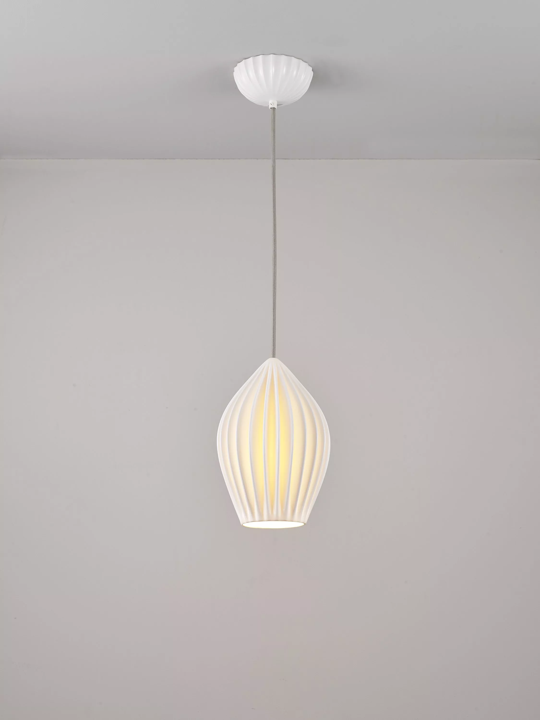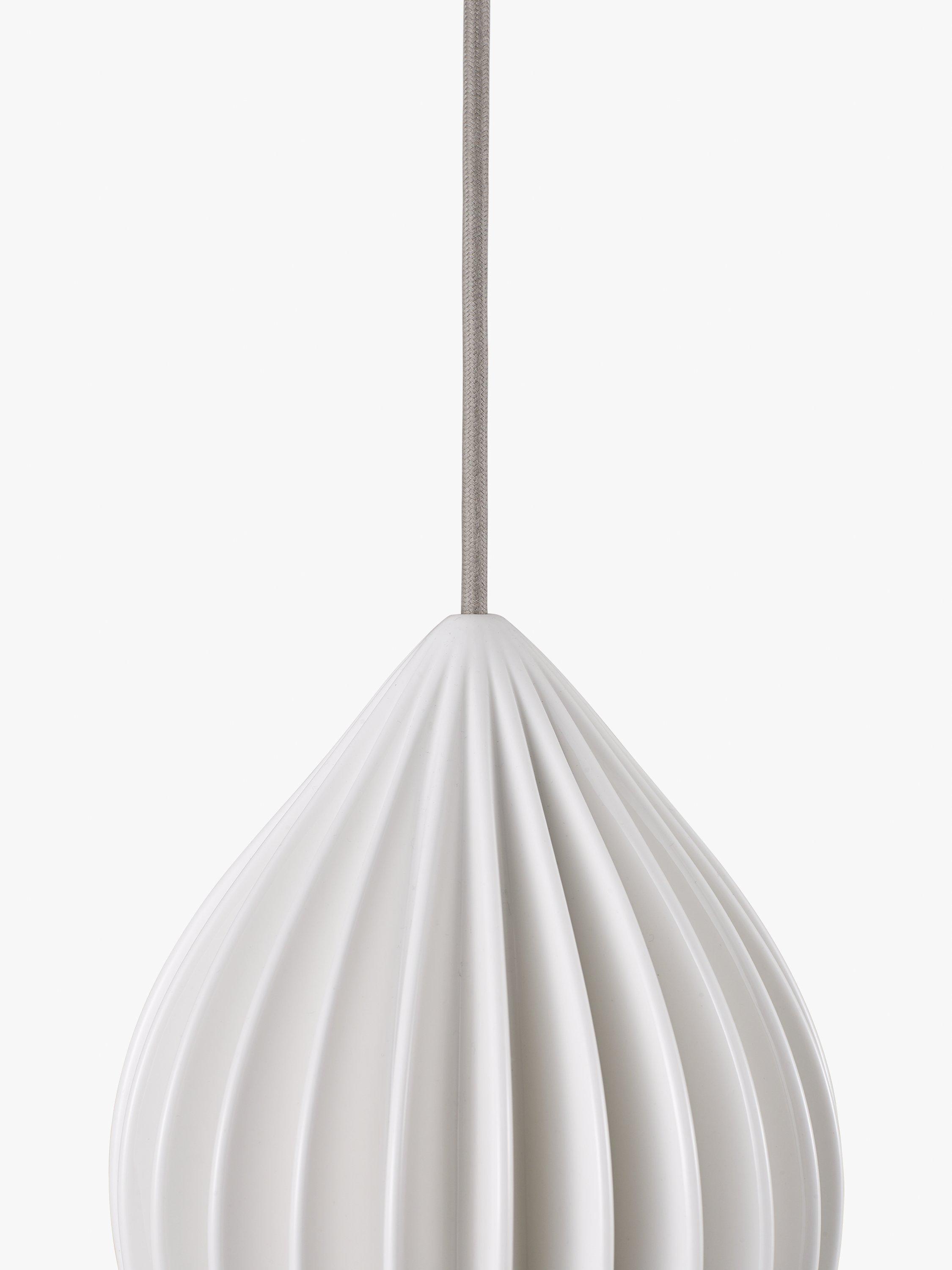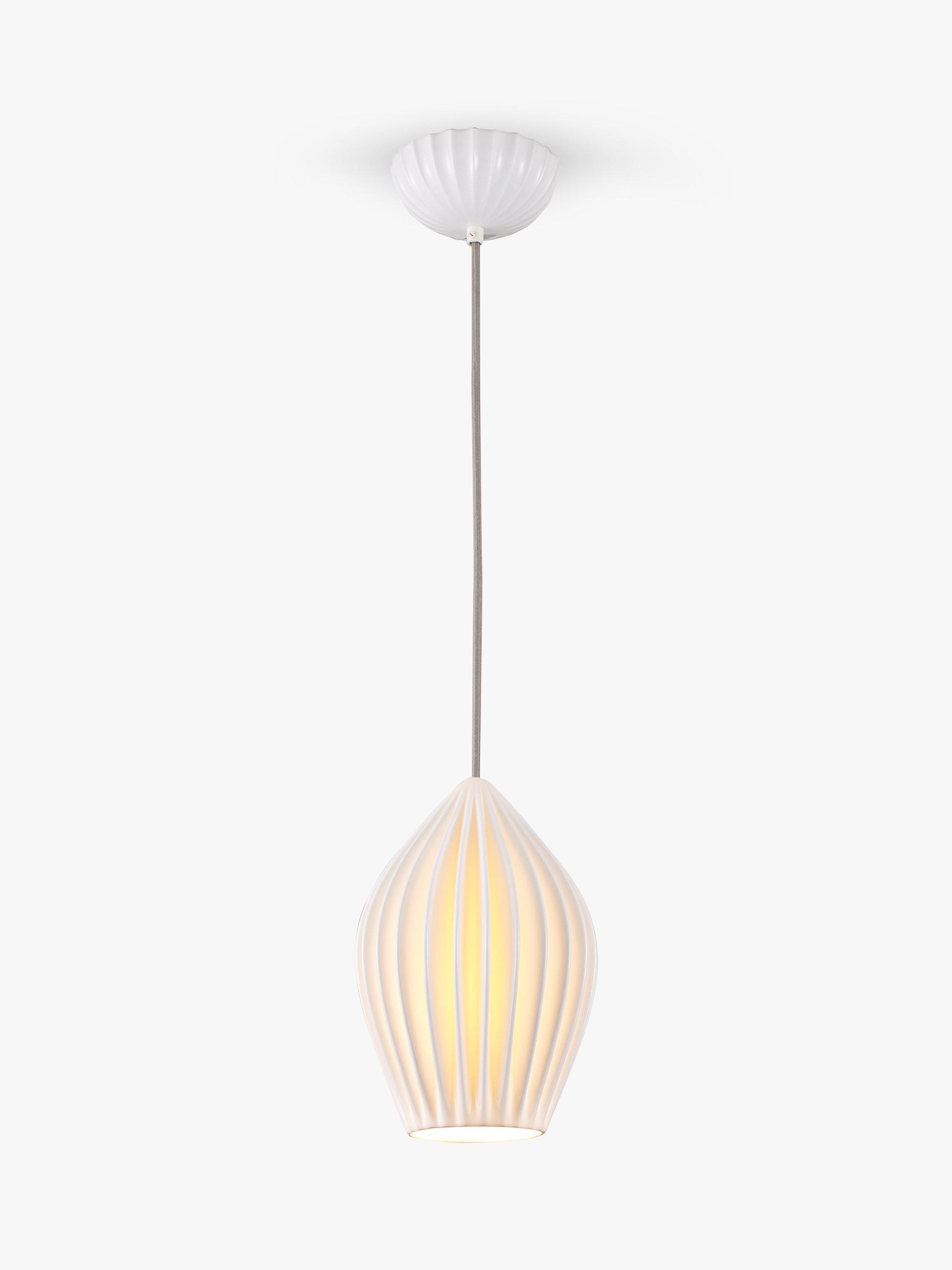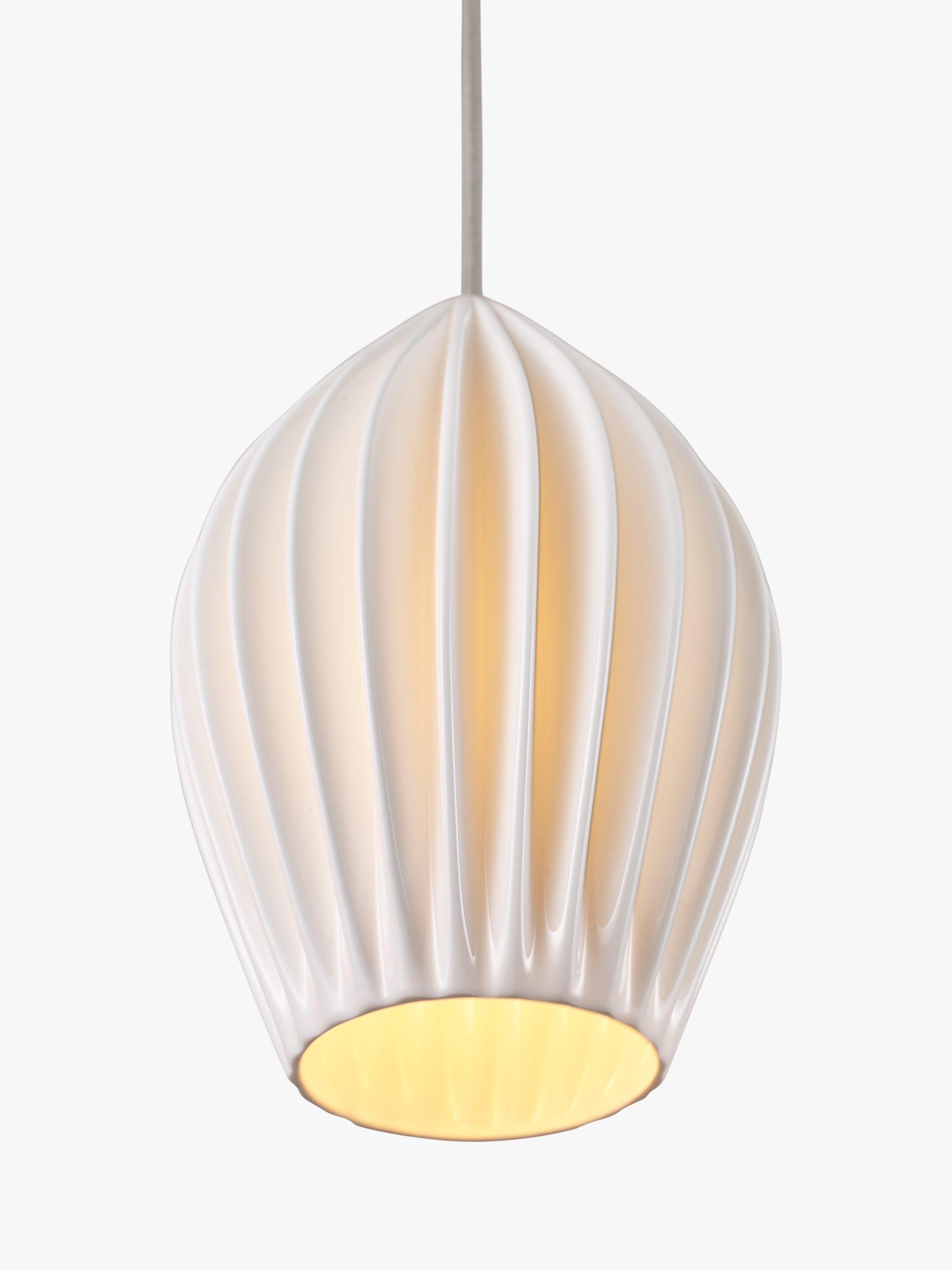 Crafted from bone china and handmade in the UK, the Large Fin ceiling light from Original BTC looks deceptively simple when switched off and beautifully intricate when lit. The ribbed, dome-shaped shade enhances a warm glow of light to create a focal point in your space. Thanks to the adjustable cotton flex, it's easy to install at your chosen height.