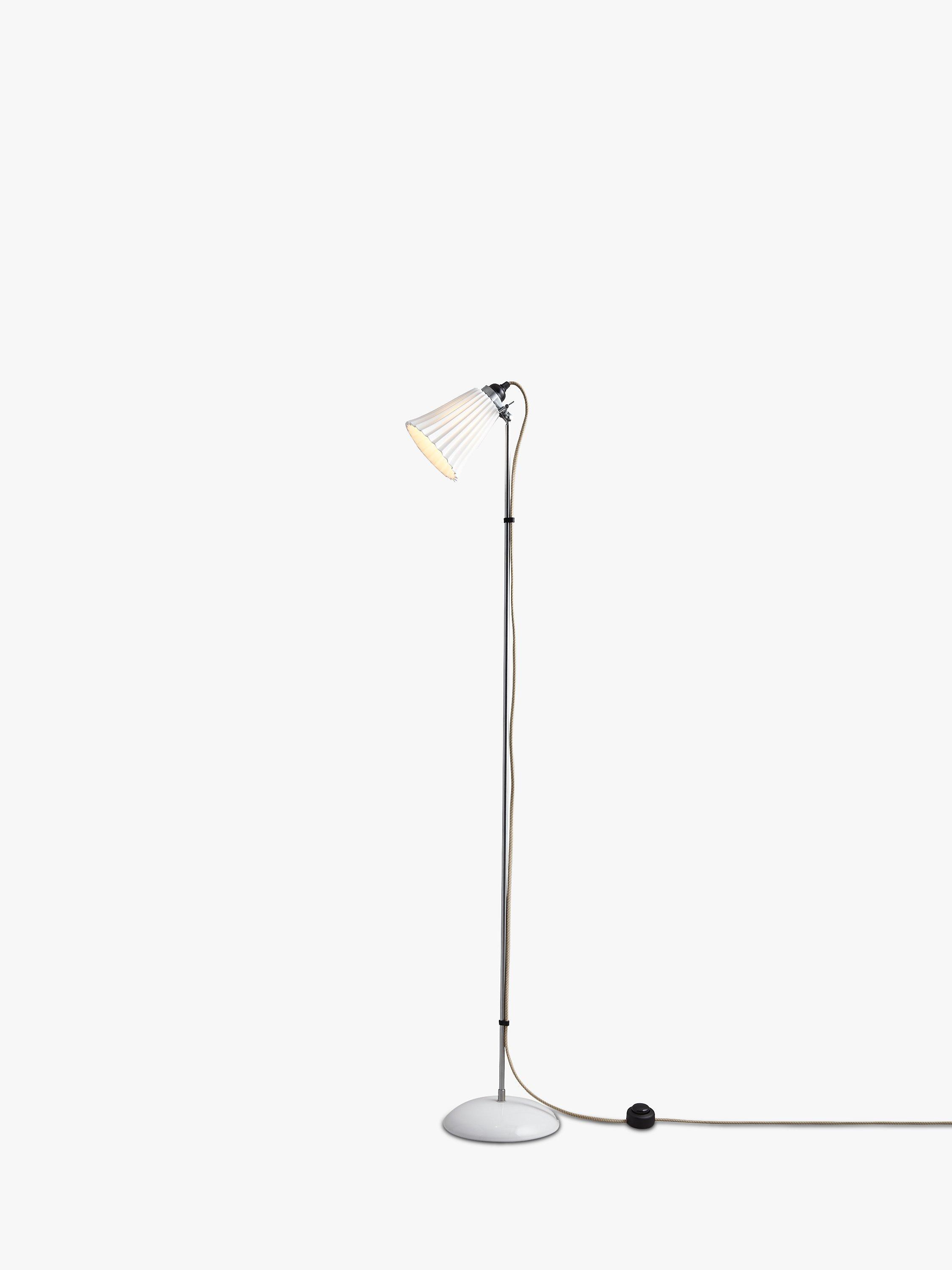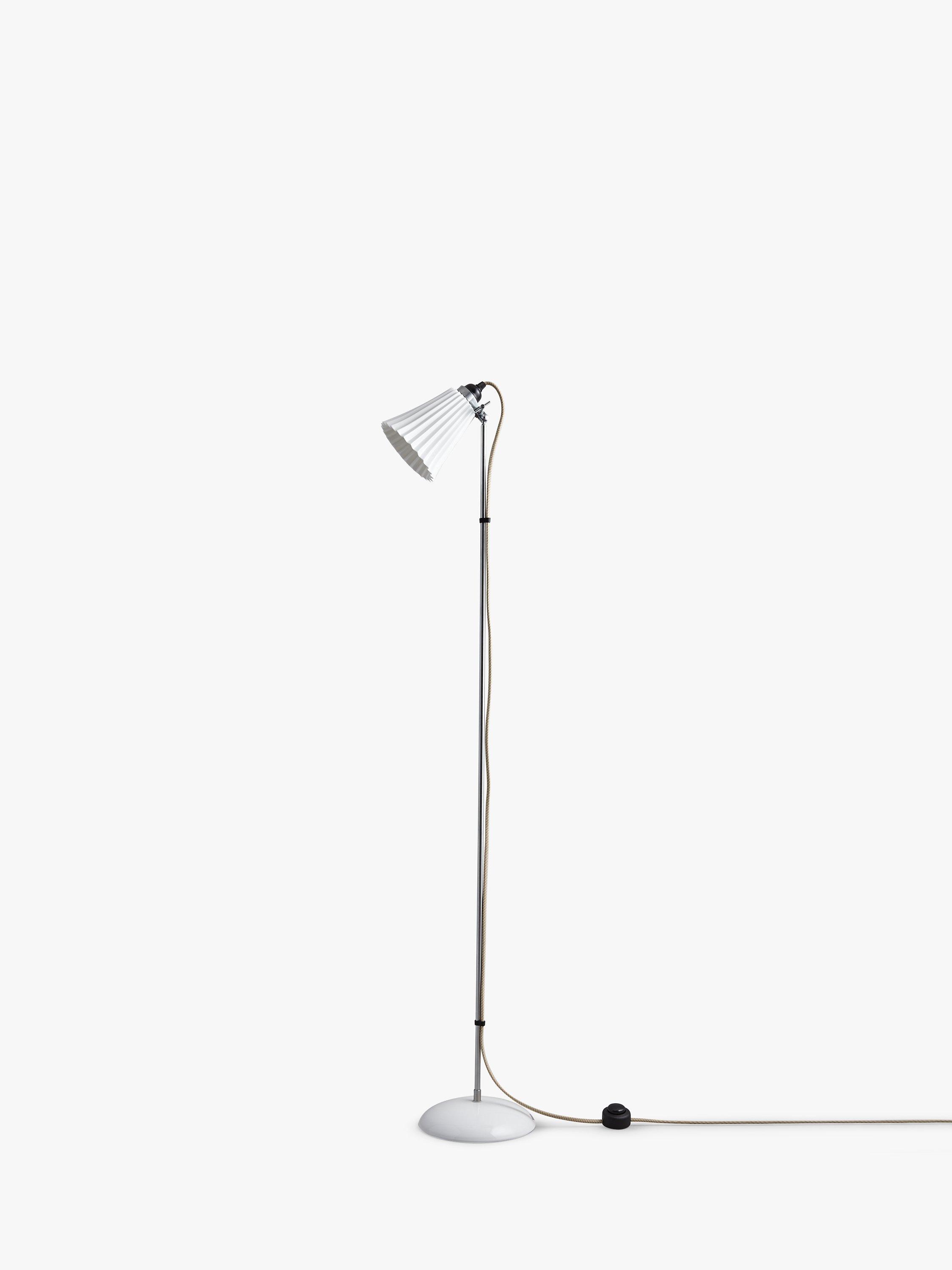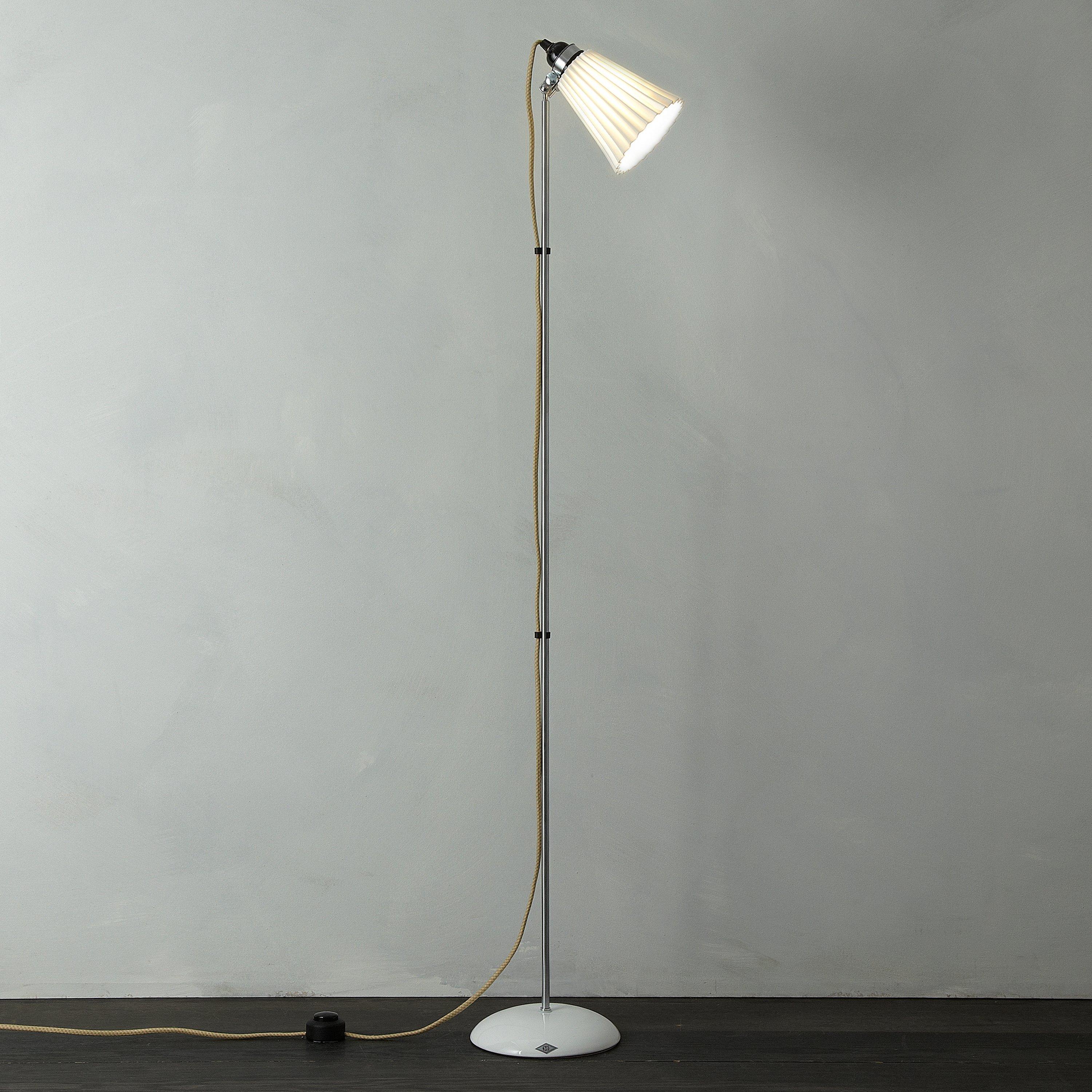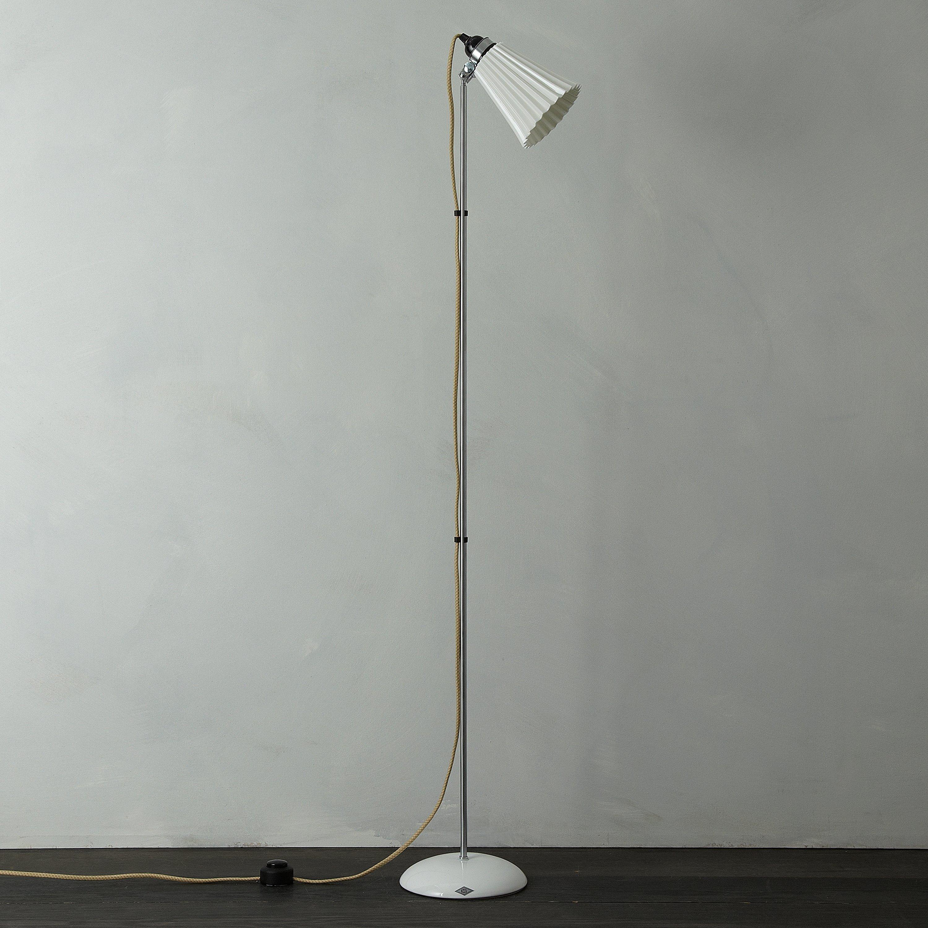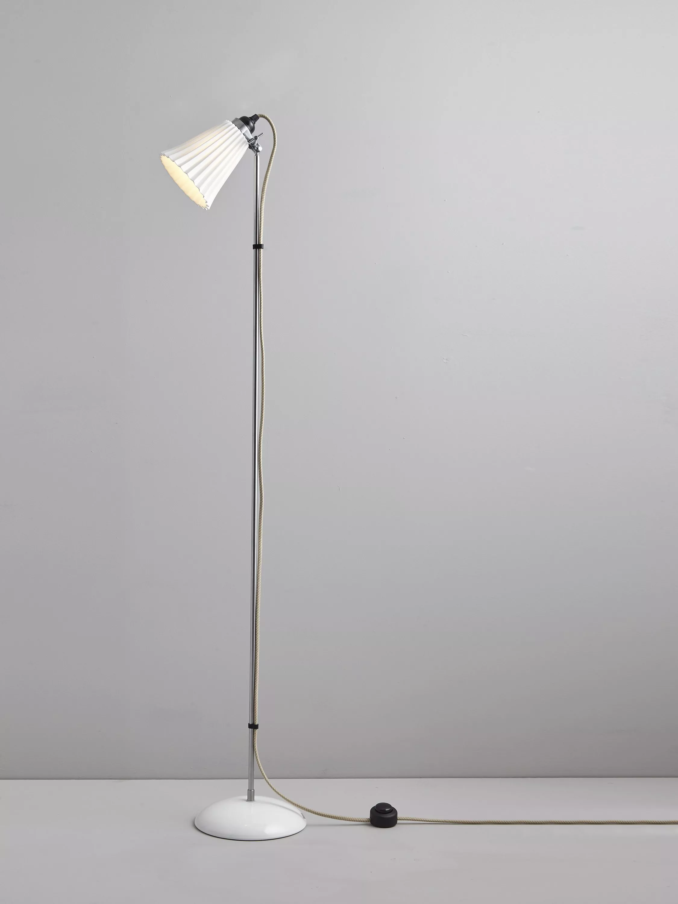 The Hector pleat floor lamp has a bone chine base and shade and cotton braided cable. It gives a warm, relaxed light that's perfect for bedrooms or living rooms.