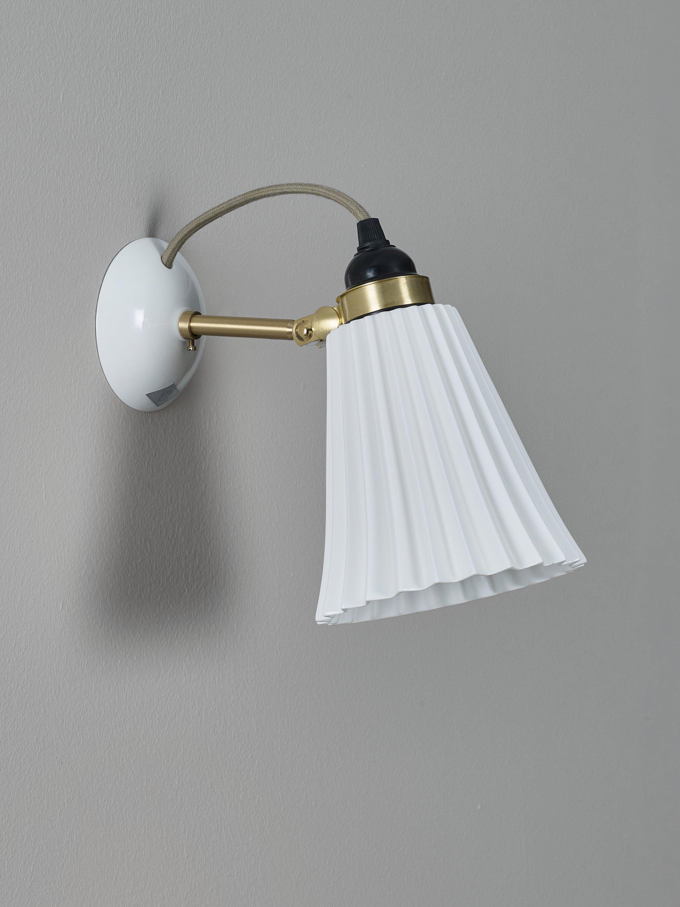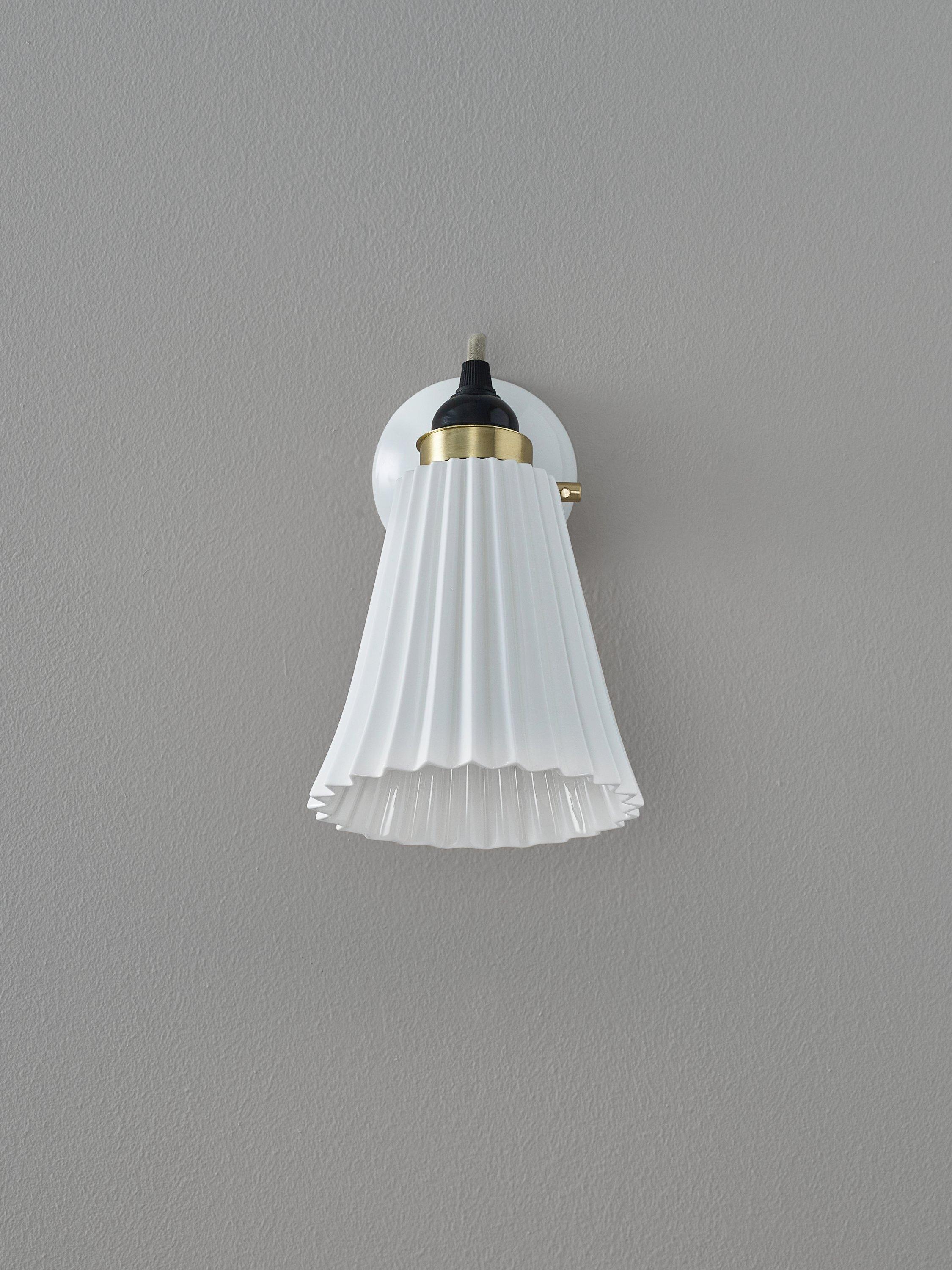 Skillfully crafted from bone china, the architectural shade of the Hector Pleat wall light offers a warm ambient glow when lit. Its cotton braided cable matches beautifully, creating the perfect combination of style and function.