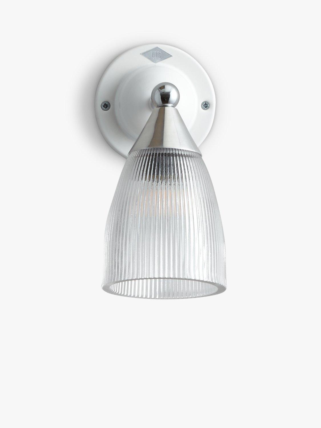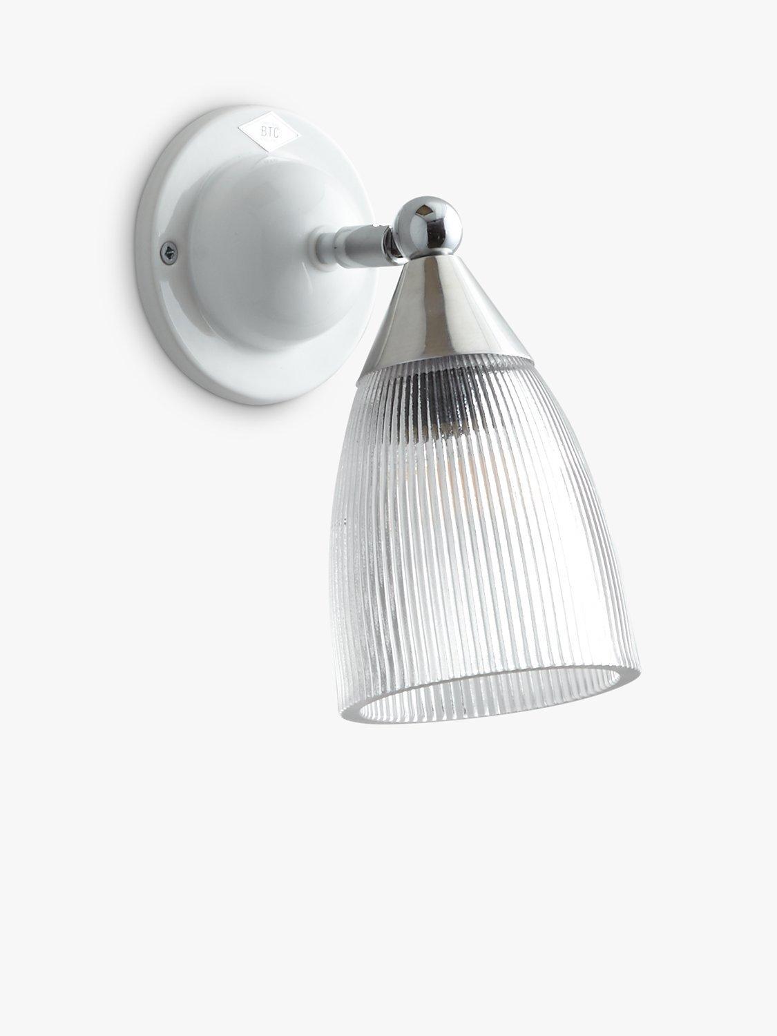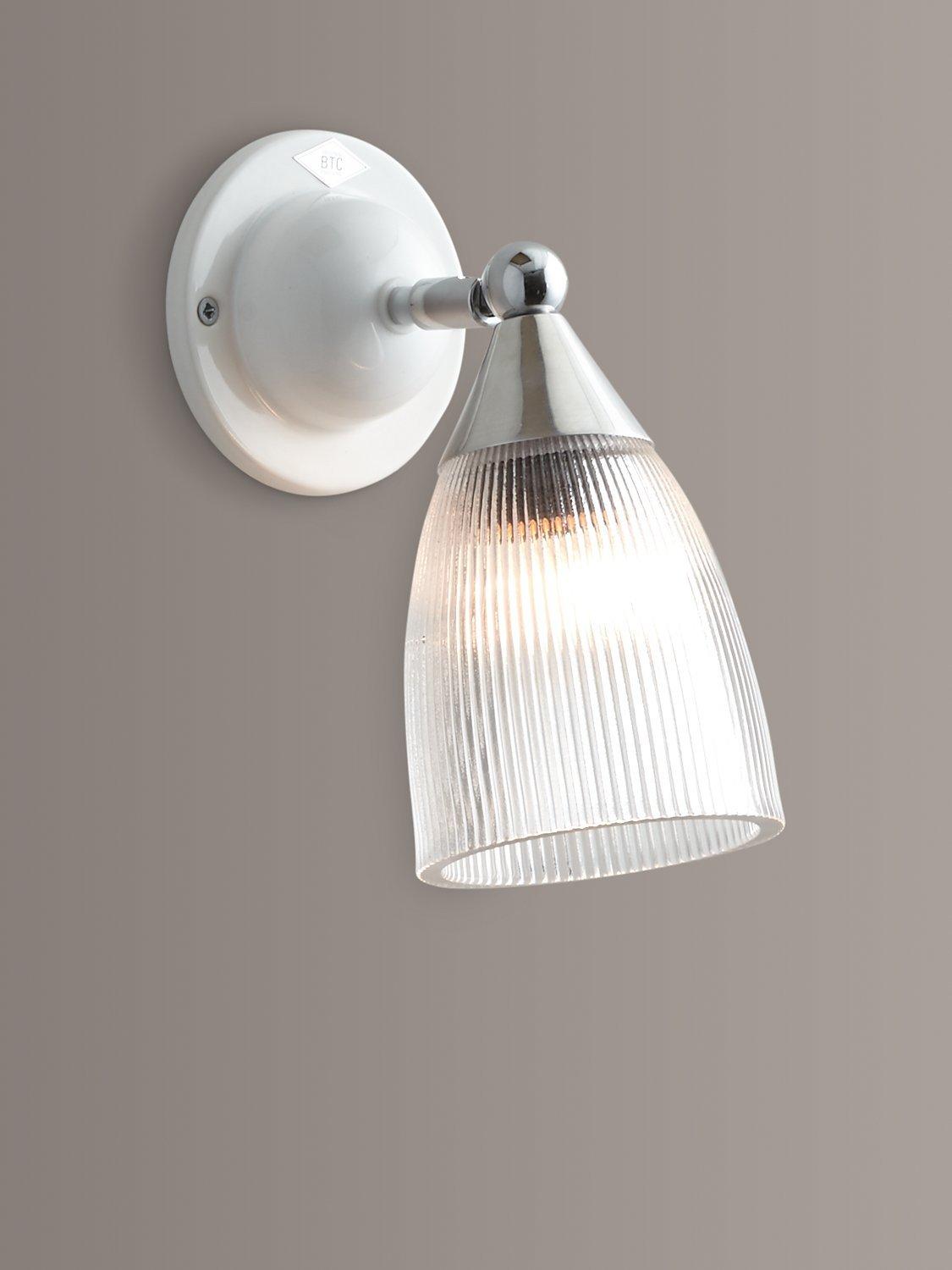 This elegant wall light is designed with a prismatic glass shade that creates a softer and more diffused illumination. The shade is easy to move, angle and adjust, so you can cast light exactly where you prefer. The wall fitting is made from bone china and chrome metal work lends a smart finishing touch.