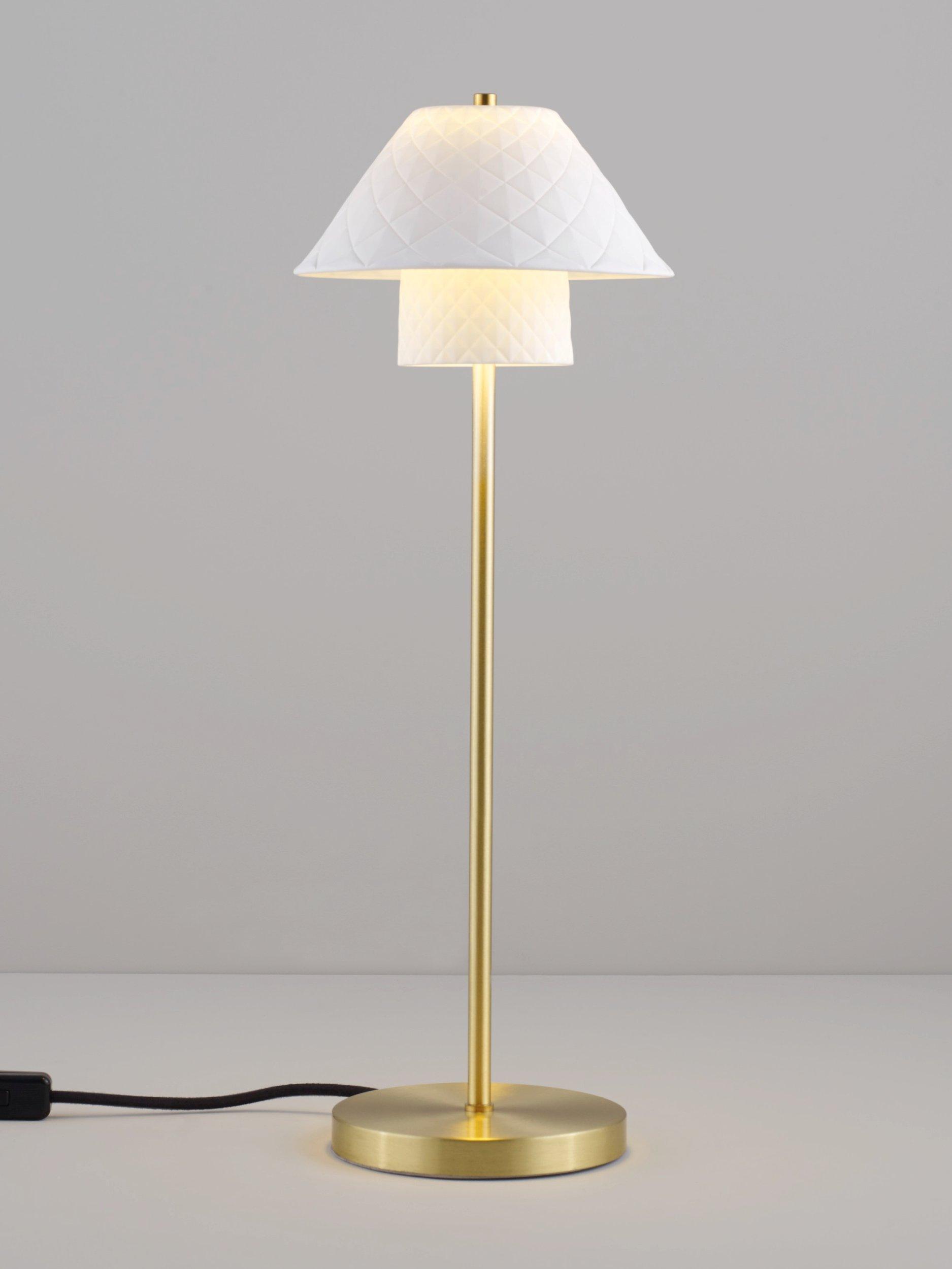 The Oxford table lamp explores further creative avenues and offers twice the visual appeal with its twin bone china shades. Both shades have a unique textural quality, enhanced by the gentle glow of the light. Elevated by an elegant stem, the Oxford is perfect for adding a luxury, cosy feel to the home.