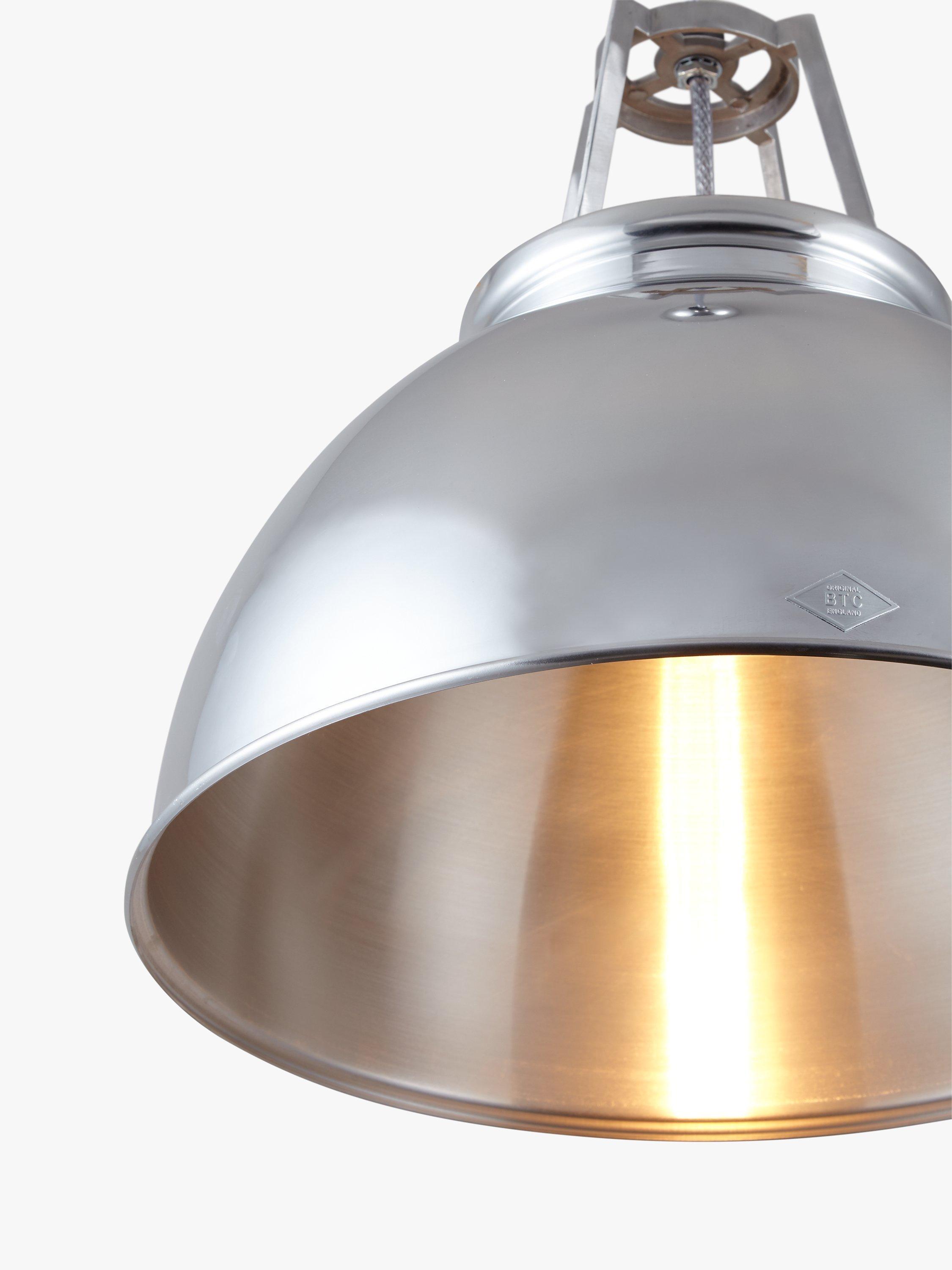 Based on an original 1940s design often seen in factories, offices and industrial units of the period, the Titan Pendant from Original BTC is ideal for industrial-inspired interiors. The dome-shaped shade is made from hand-spun aluminium and provides a direct wash of warm light, and its adjustable, armour steel braided flex allows you to hang it at your preferred height. Versatile, yet bold, this Size 3 pendant has a polished finish.
