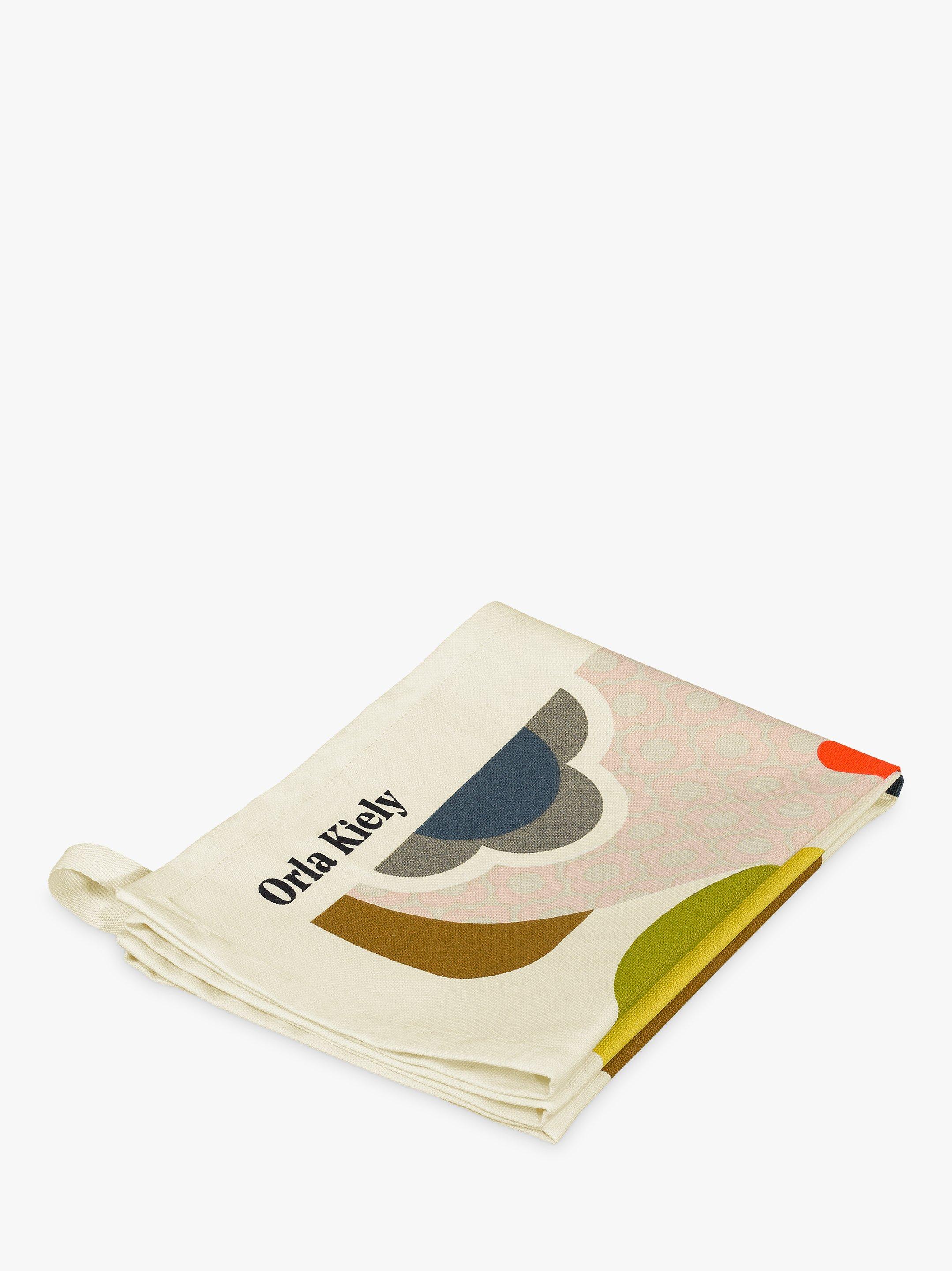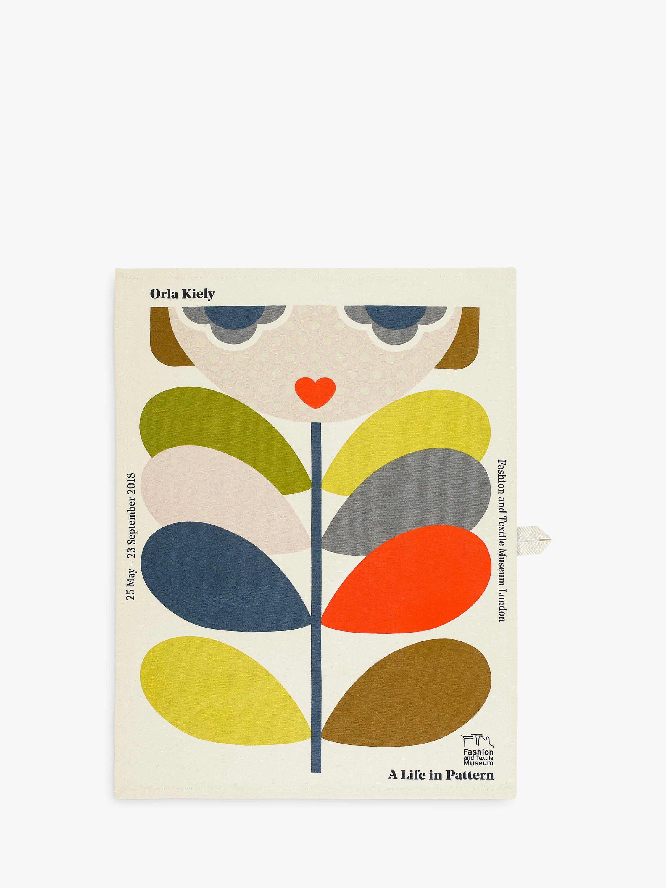 This pure cotton tea towel has a retro-inspired print celebrating the 'Orla Kiely: A Life in Pattern' exhibition, held from May to September 2018 at the Fashion and Textile Museum in Bermondsey, London.