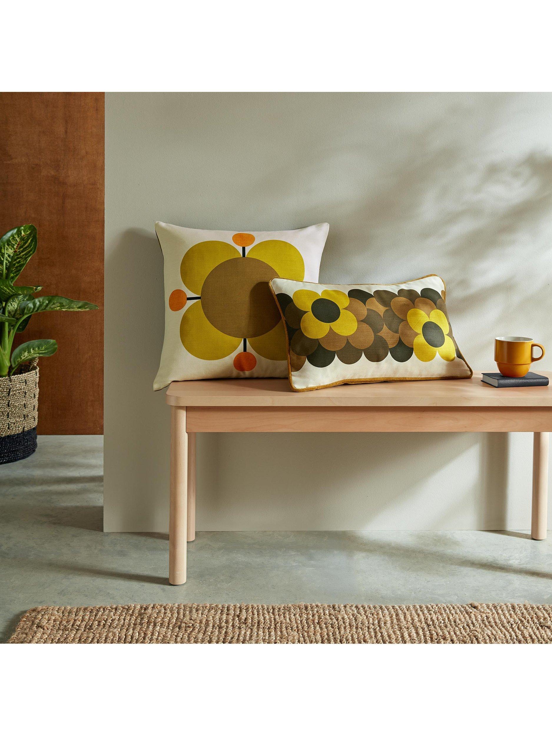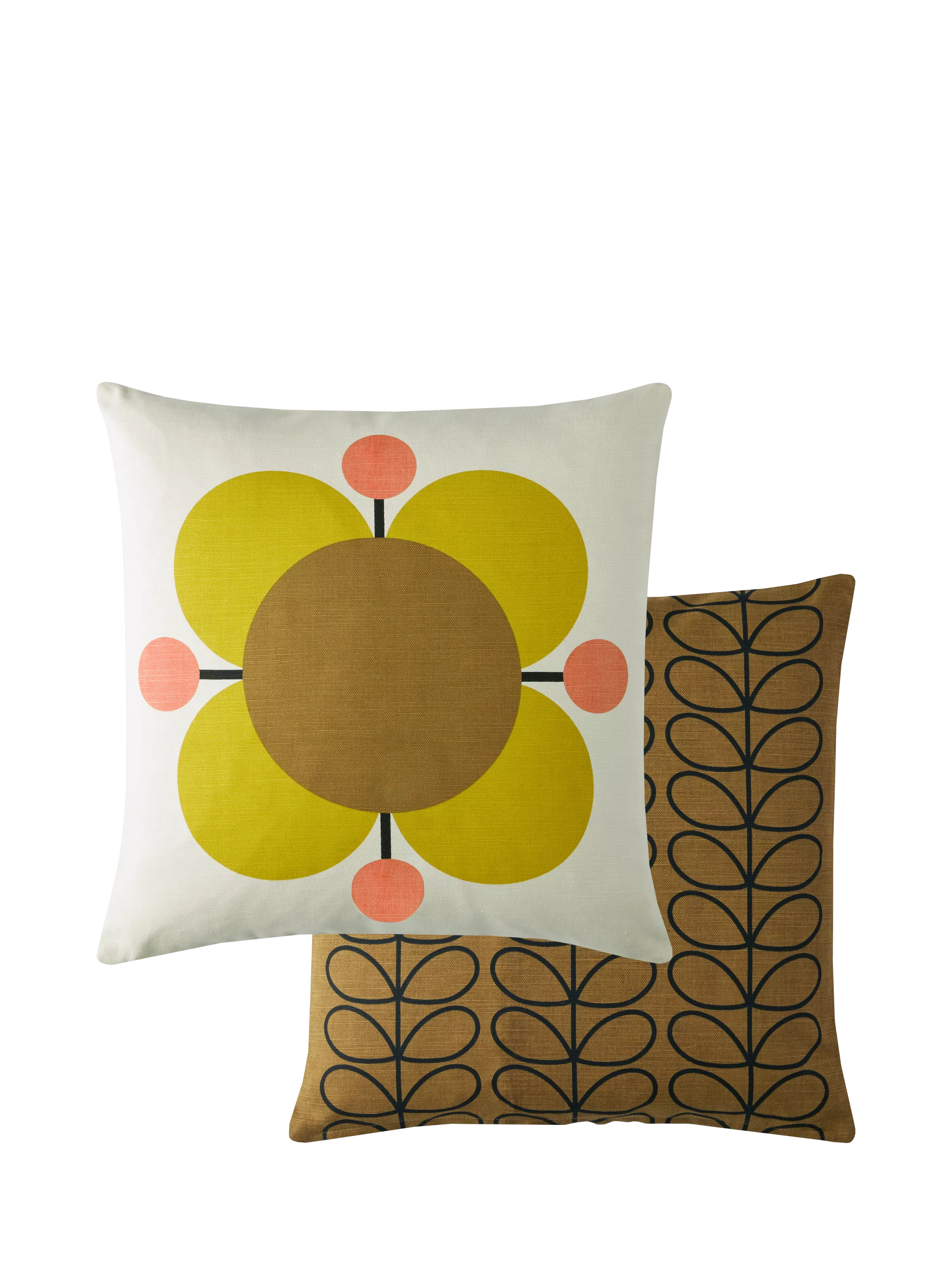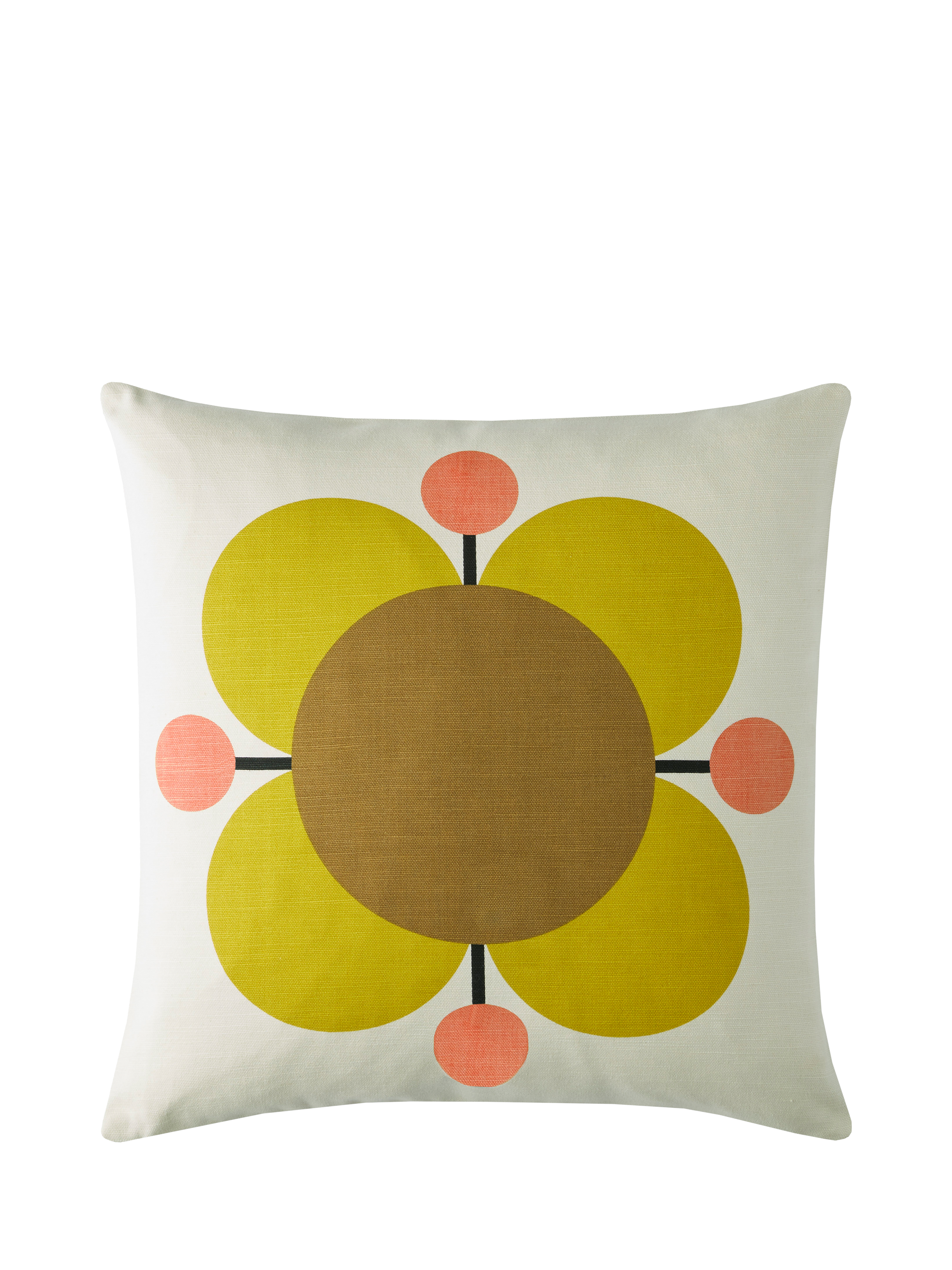 This Atomic Flower cushion is perfect for adding a bright, retro touch to your home. The reverse side features Orla Kiely's signature Linear Stem print.