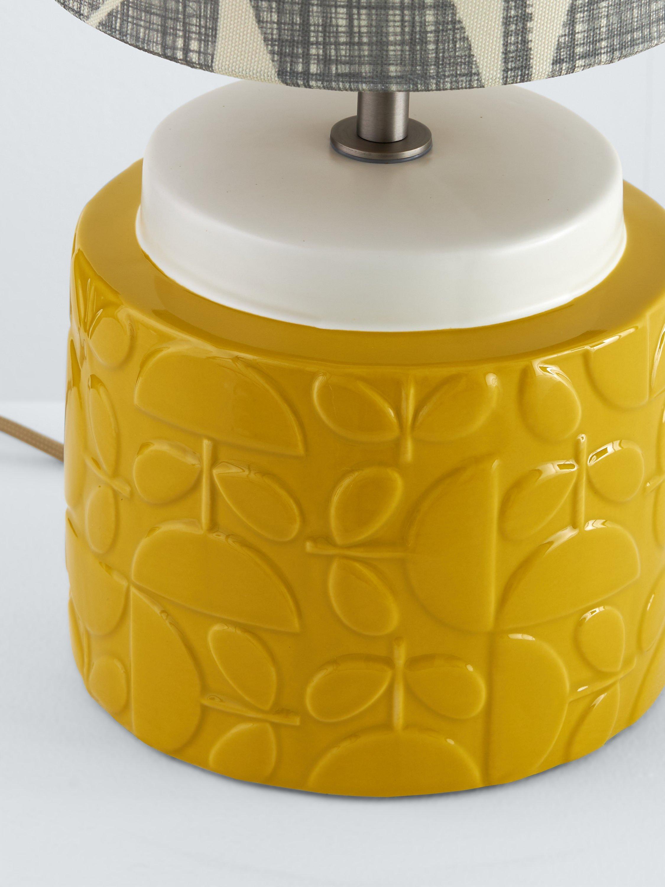 Celebrating playful Orla Kiely print and pattern across both the ceramic base and fabric lampshade, this retro table lamp will accent your space with colour. The beautiful round base is highlighted with the iconic Tile pattern and the tall floral shade is made from faux linen to enhance a warm glow of light.