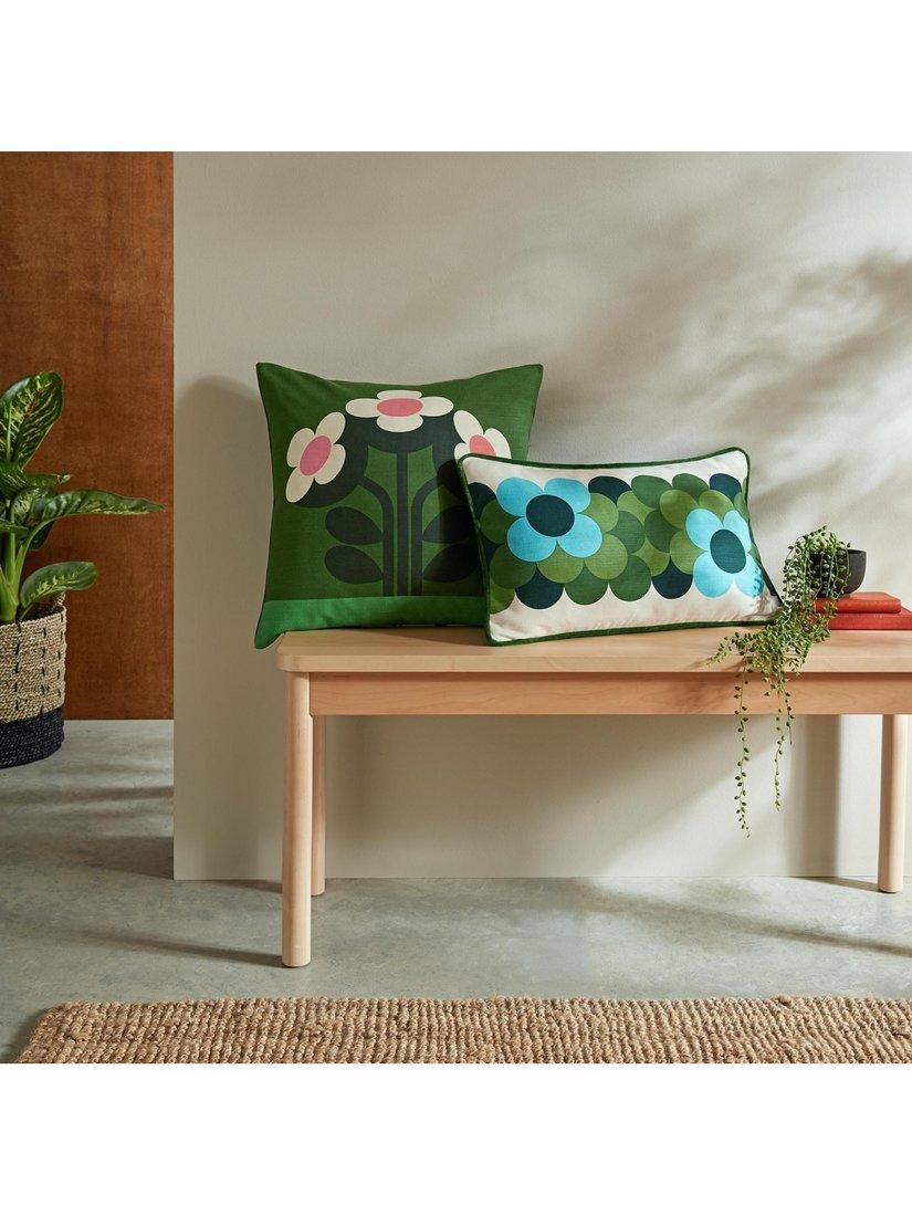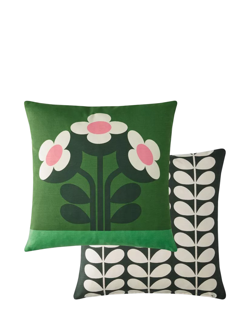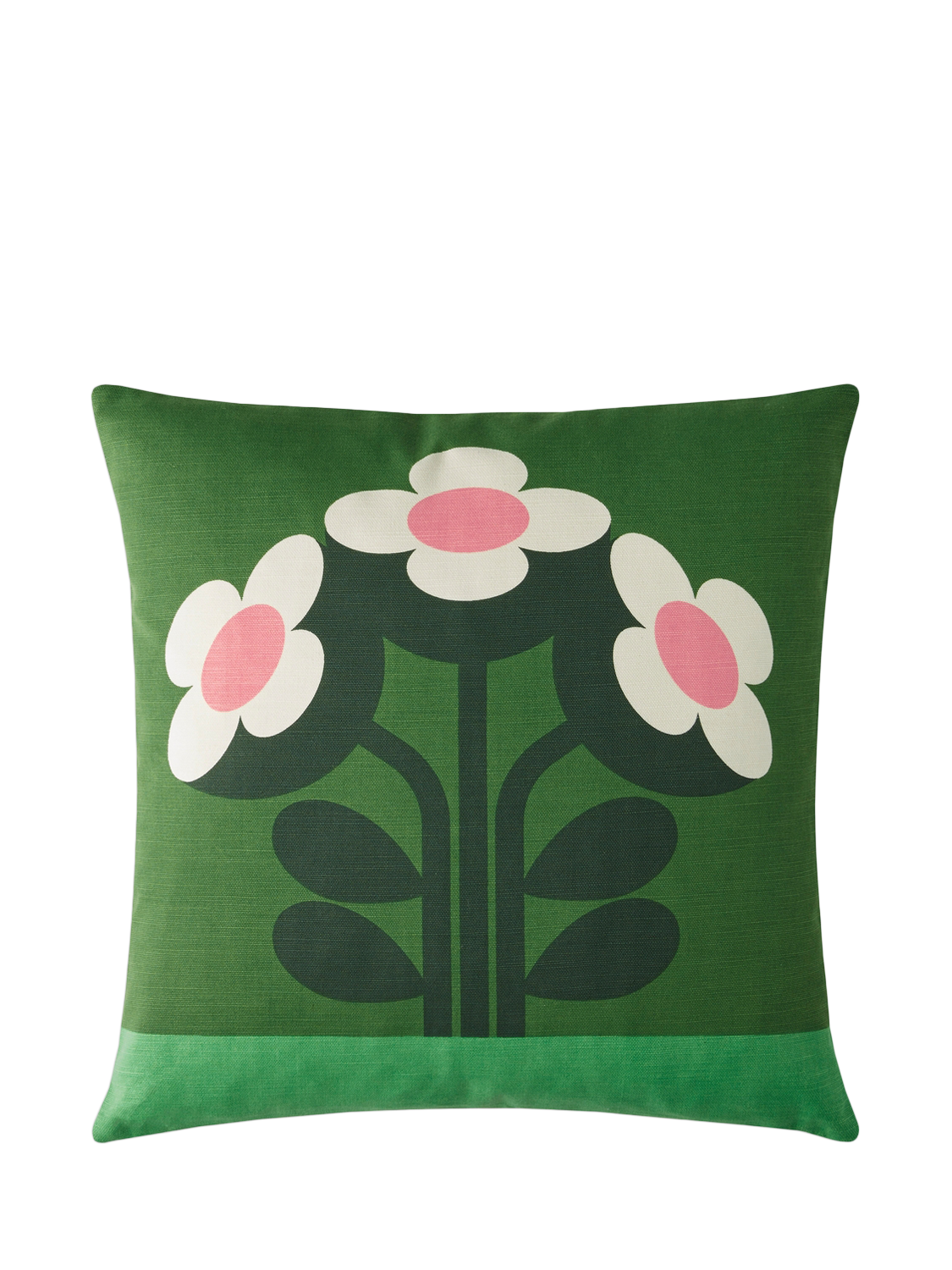 Playful and graphic, a trio of buttercups in vivid greens and bright pink decorates this eye-catching, textured cotton cushion. This cushion features Orla Kiely's signature Solid Stem print on the reverse.