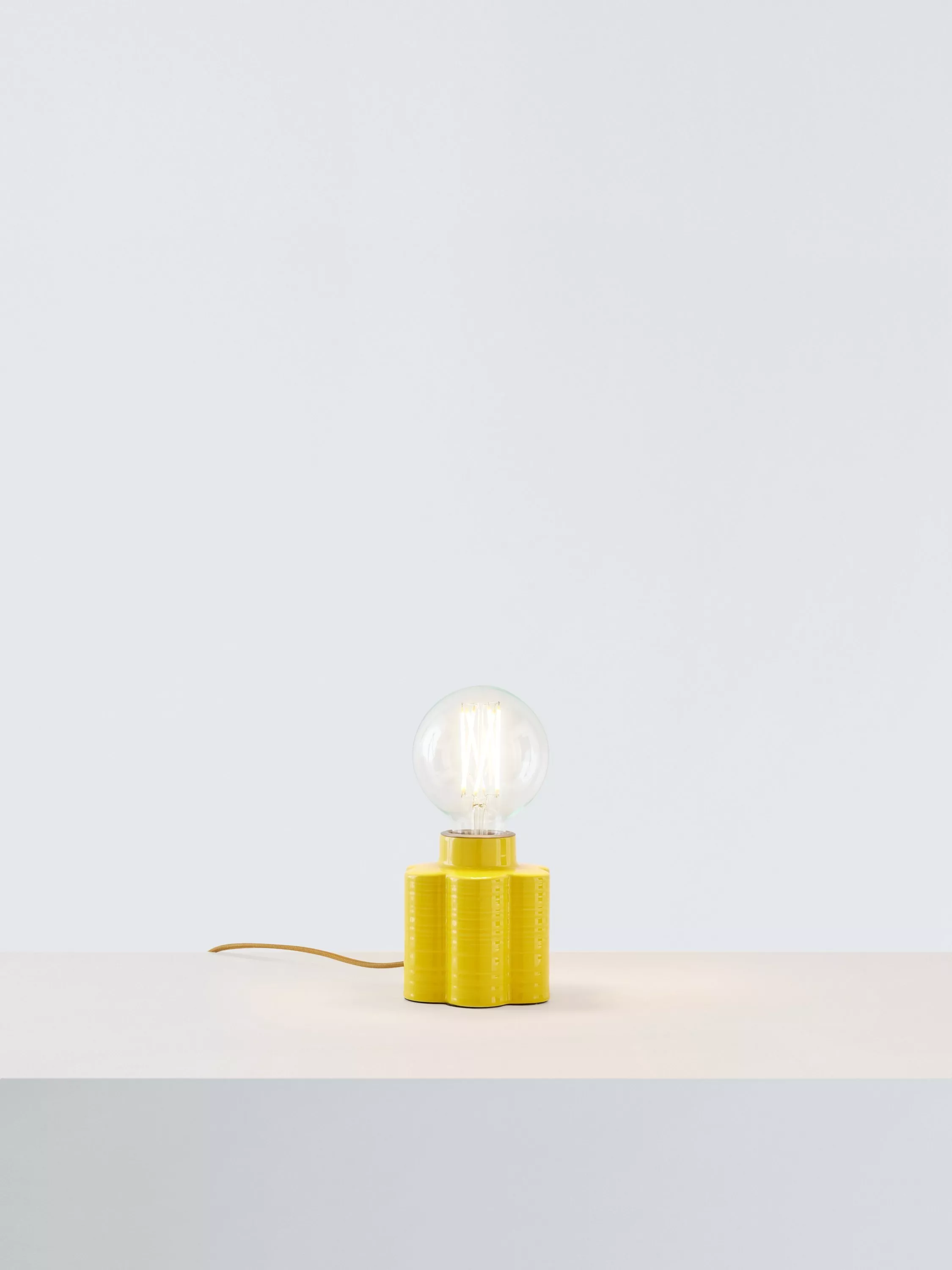 Made from ceramic in a floral shape that celebrates Orla Kiely's iconic print, this bulbholder table lamp will add a decorative accent to your space. Its ribbed, textured surface and gloss glaze finish brings out the depth of the colour and it has a simple in-line switch located on a contrasting coloured cable. Complete the look with a bulb that has an eye-catching decorative filament.