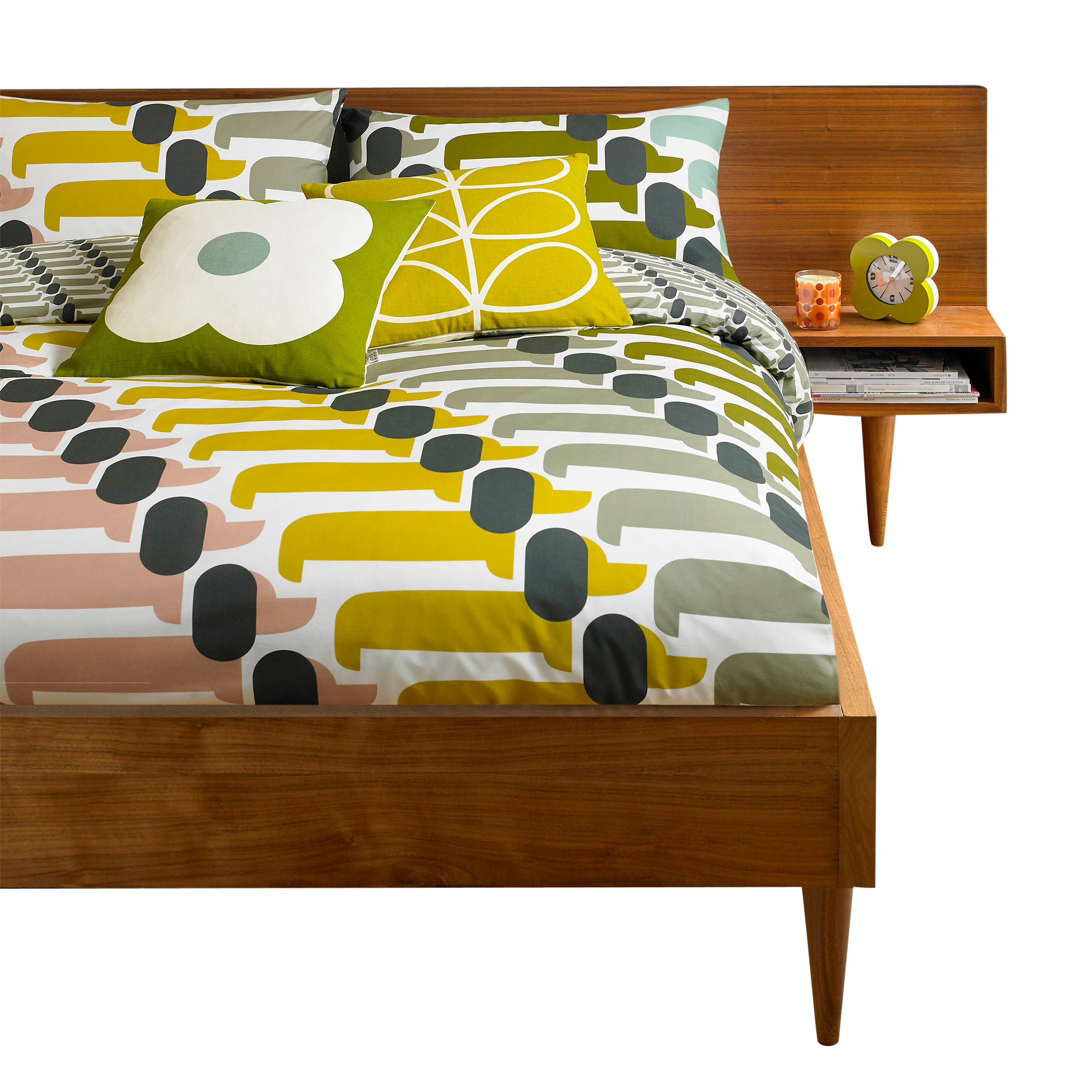 Orla Kiely's cheerful dachshund print bedding will charm to the top of your bed. Its appealing repeat is contrasted with a smaller-scale, grey reverse, giving you a choice of styling options depending on your mood.