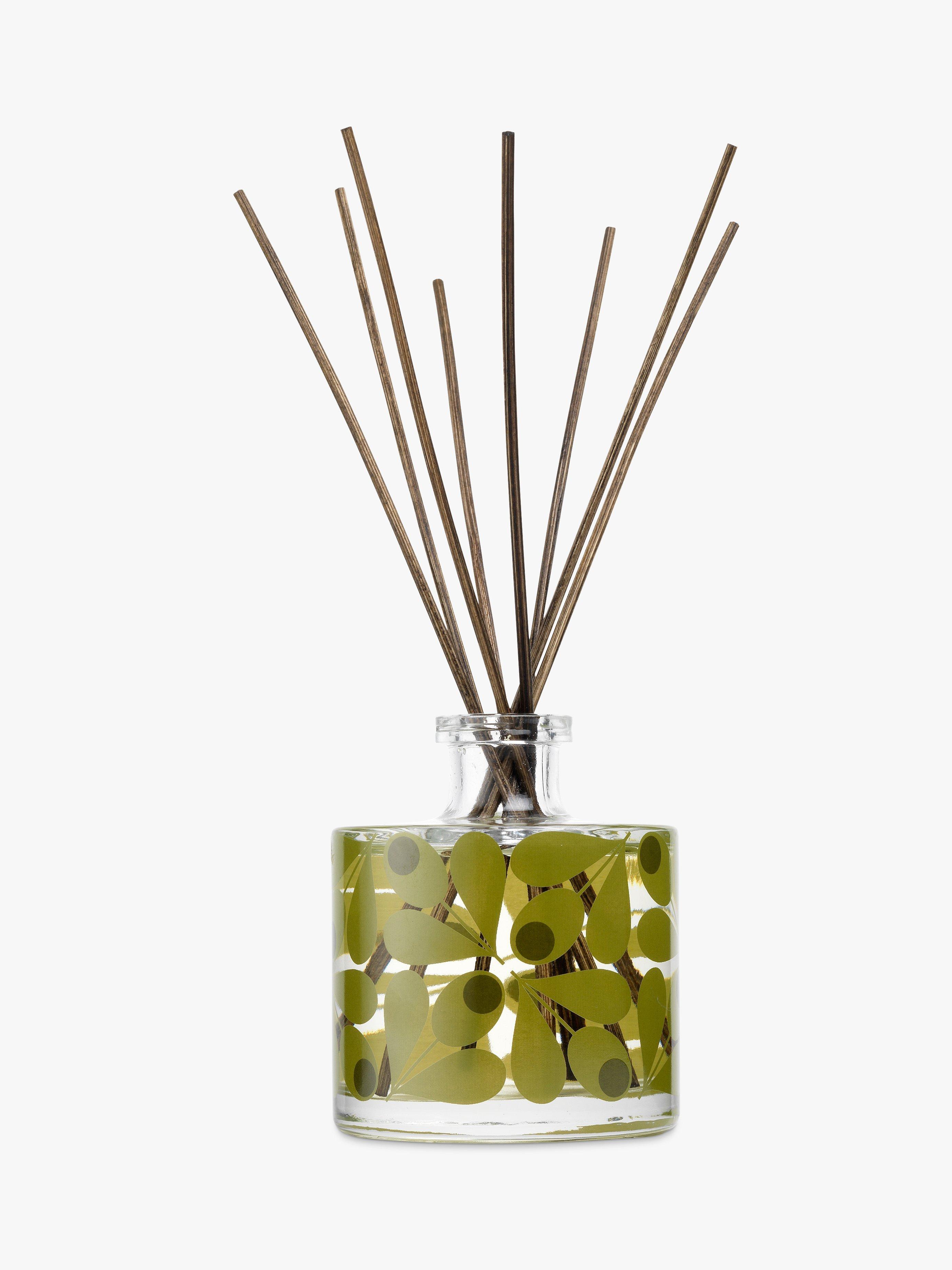 The diffuser oil is presented in a beautiful glass bottle, embellished with one of Orla Kiely's signature prints, and includes a set of reed sticks. After un-corking the bottle and adding your reeds, allow 24-36 hours for the fragrance to diffuse into the room. For a stronger scent, turn reeds every 2-3 weeks.