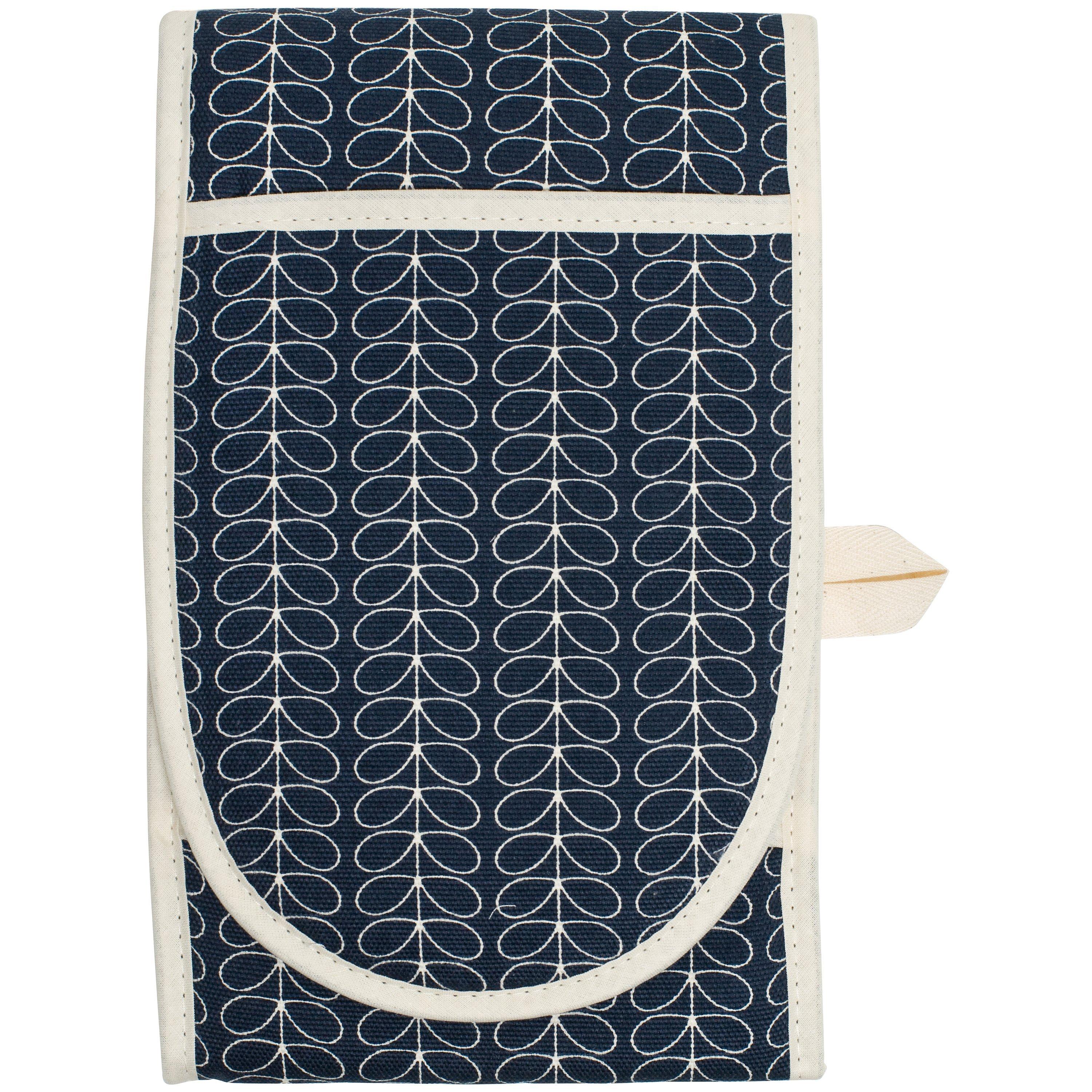 Made from thick, heat insulating cotton, this attractive double oven glove is decorated with Orla Kiely's signature 'linear stem' geometric pattern in a refined mix of navy and grey.