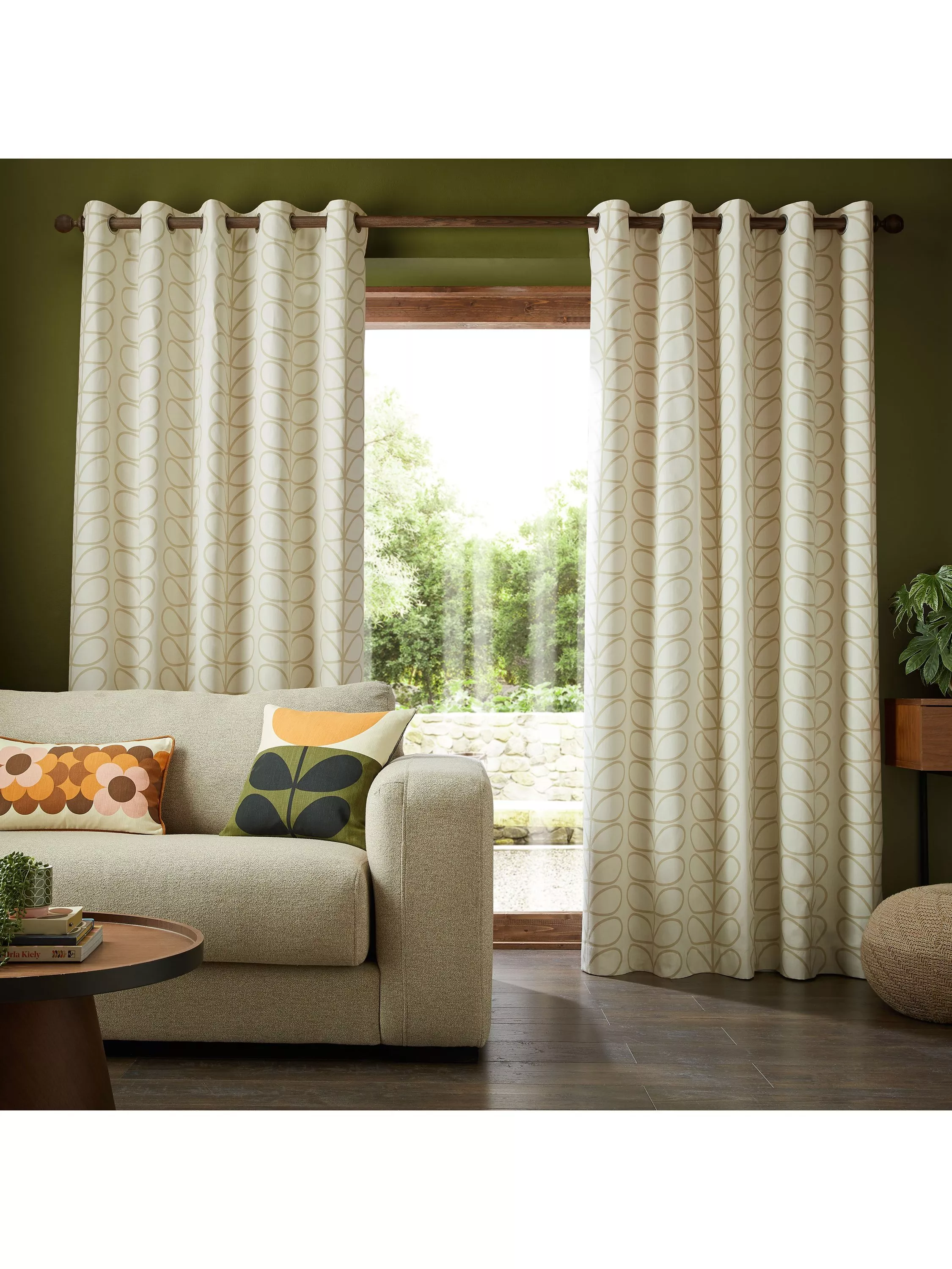 Dress your windows with Orla Kiely's signature Linear Stem design, printed onto a 100% cotton base. These classic eyelet curtains, with a patterned lining will sit beautifully in any colour scheme.