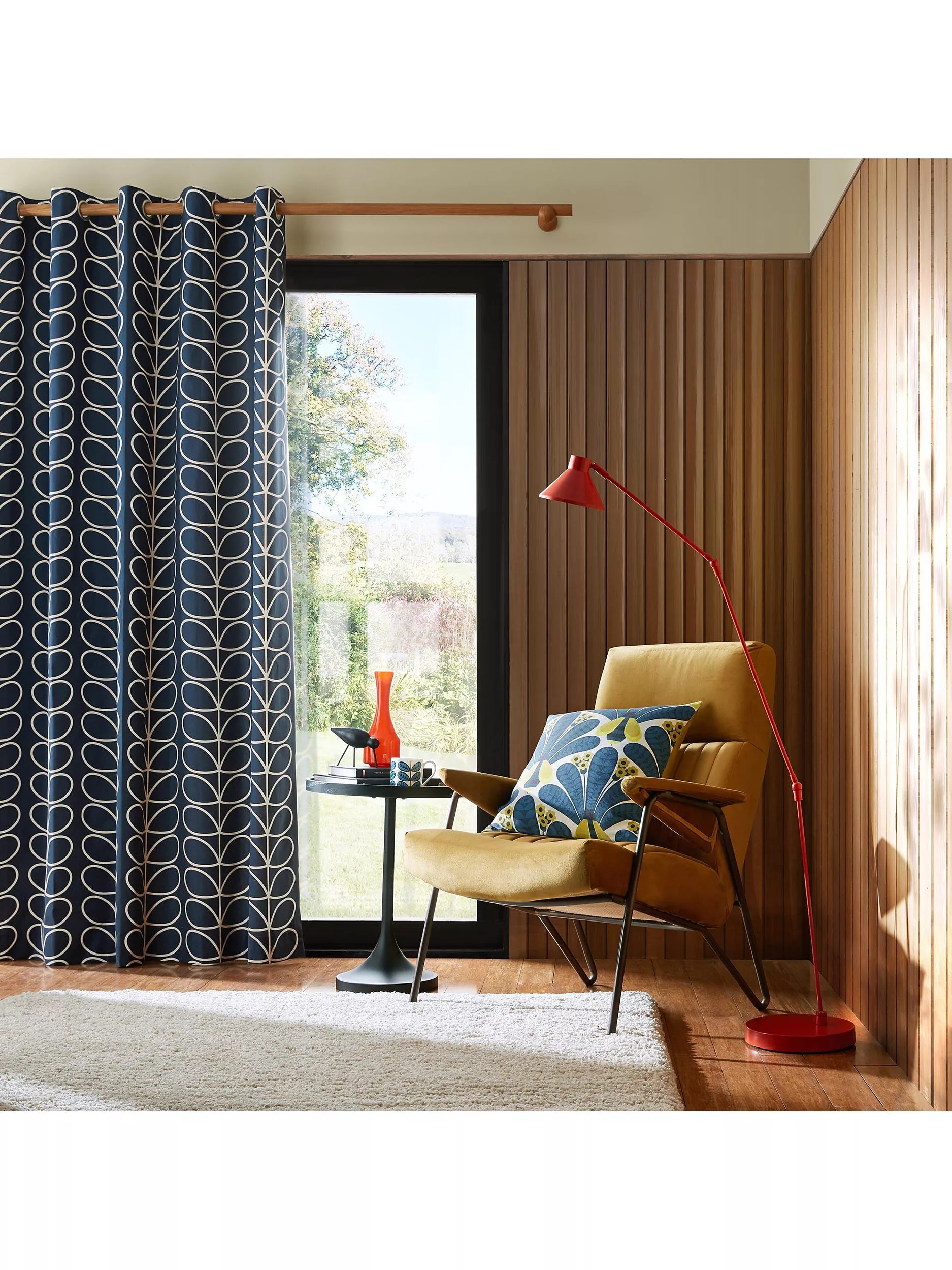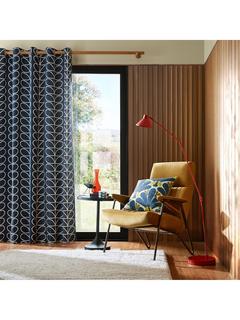 Lined eyelet curtains with Orla Kiely's graphic Linear Stem print. The eyelet heading gives them a more contemporary look with large, even folds. The lining adds the perfect finish, improving the drape and enhancing the vibrancy of the pattern.