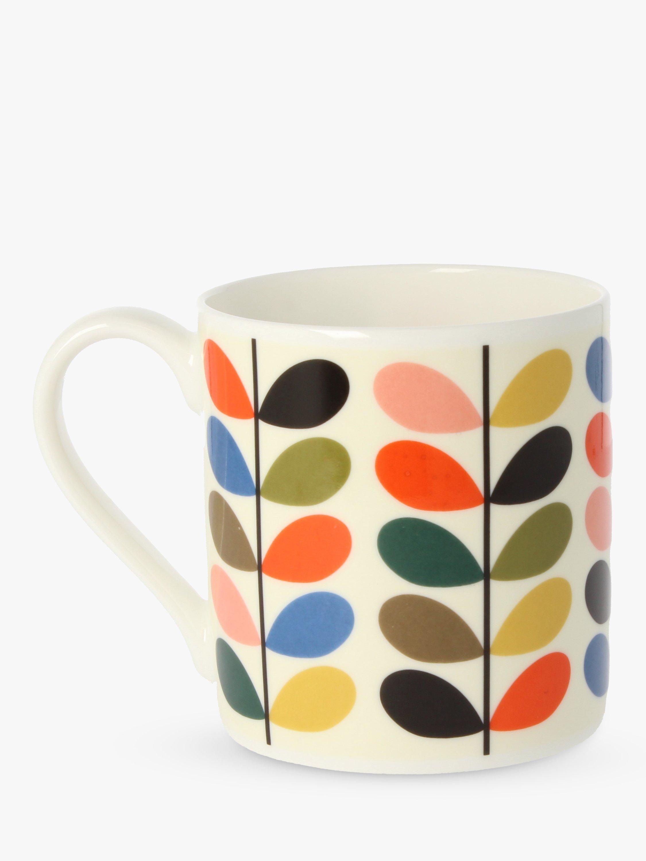 Decorated with Orla Kiely's multi stem print, this colourful mug has a retro design incorporating nature. Made in the UK of bone china, it's microwave and dishwasher safe for everyday use.