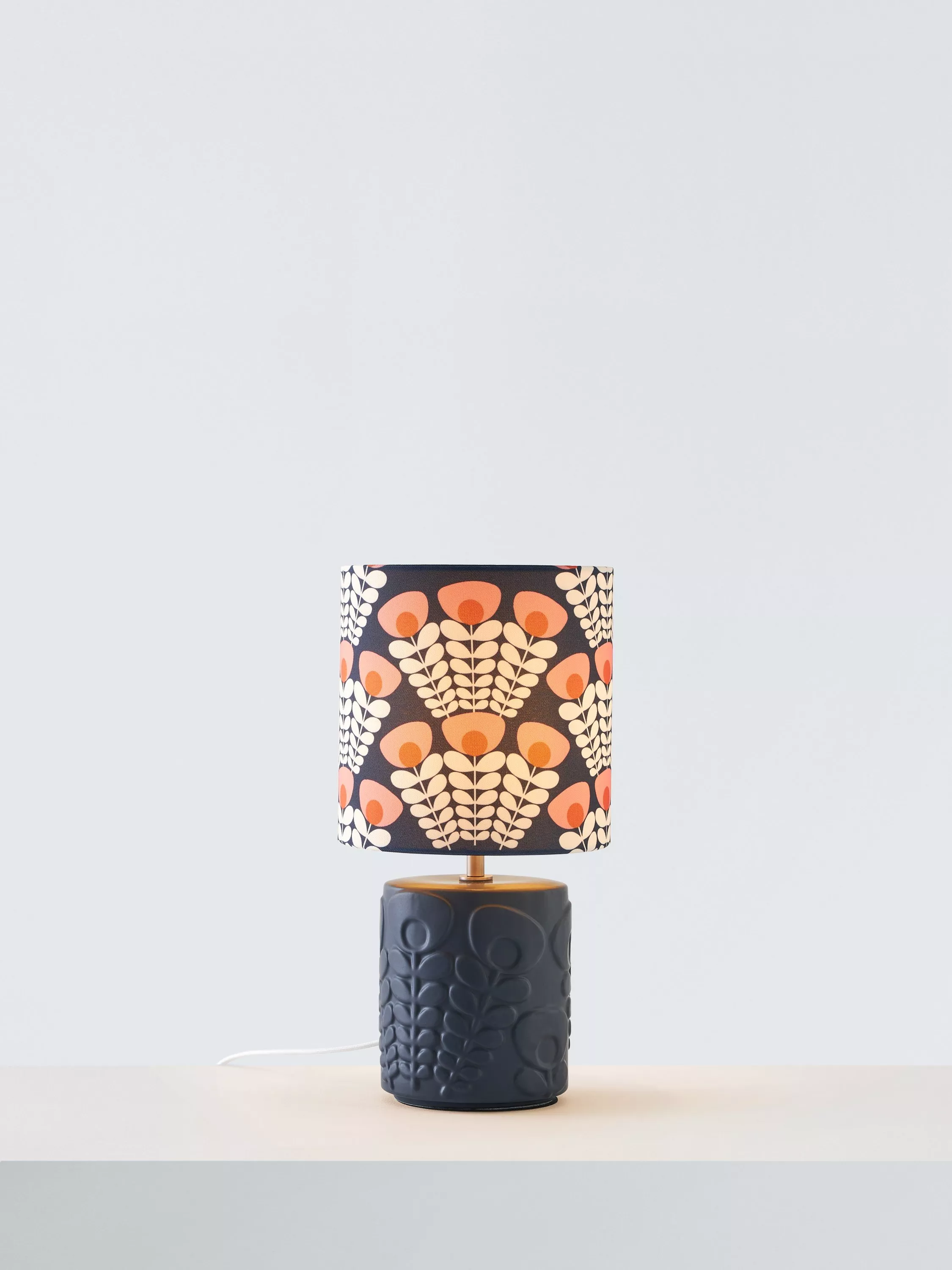 Celebrating playful print and pattern across both the ceramic base and fabric lampshade, this retro table lamp will accent your space with colour. The base is painted in a matt glaze and the shade is made from faux linen to enhance a warm glow of light.