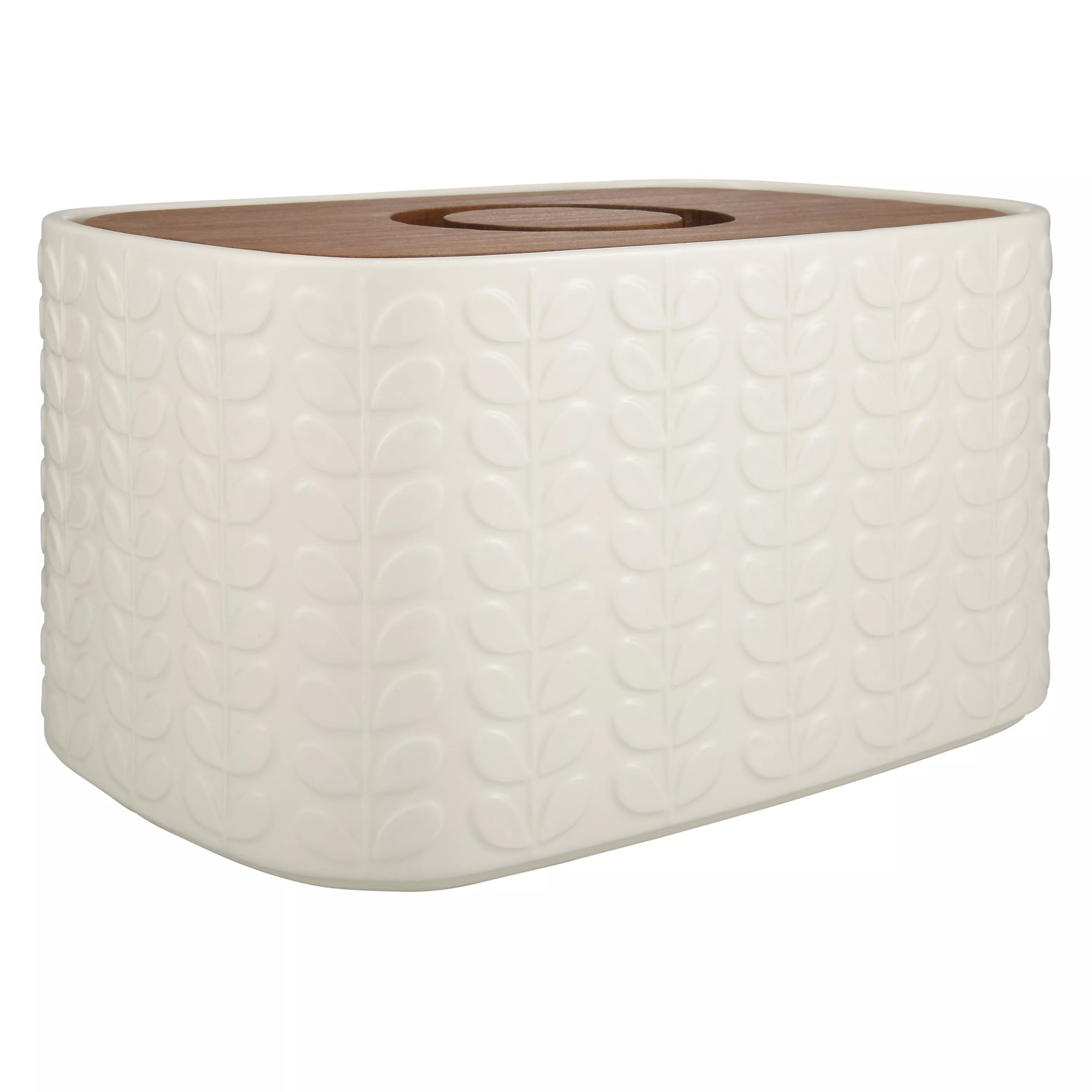 A lovely vintage-inspired bread bin from Orla Kiely, this playful yet refined storage piece features the designer's signature stem pattern in relief for a tactile effect.