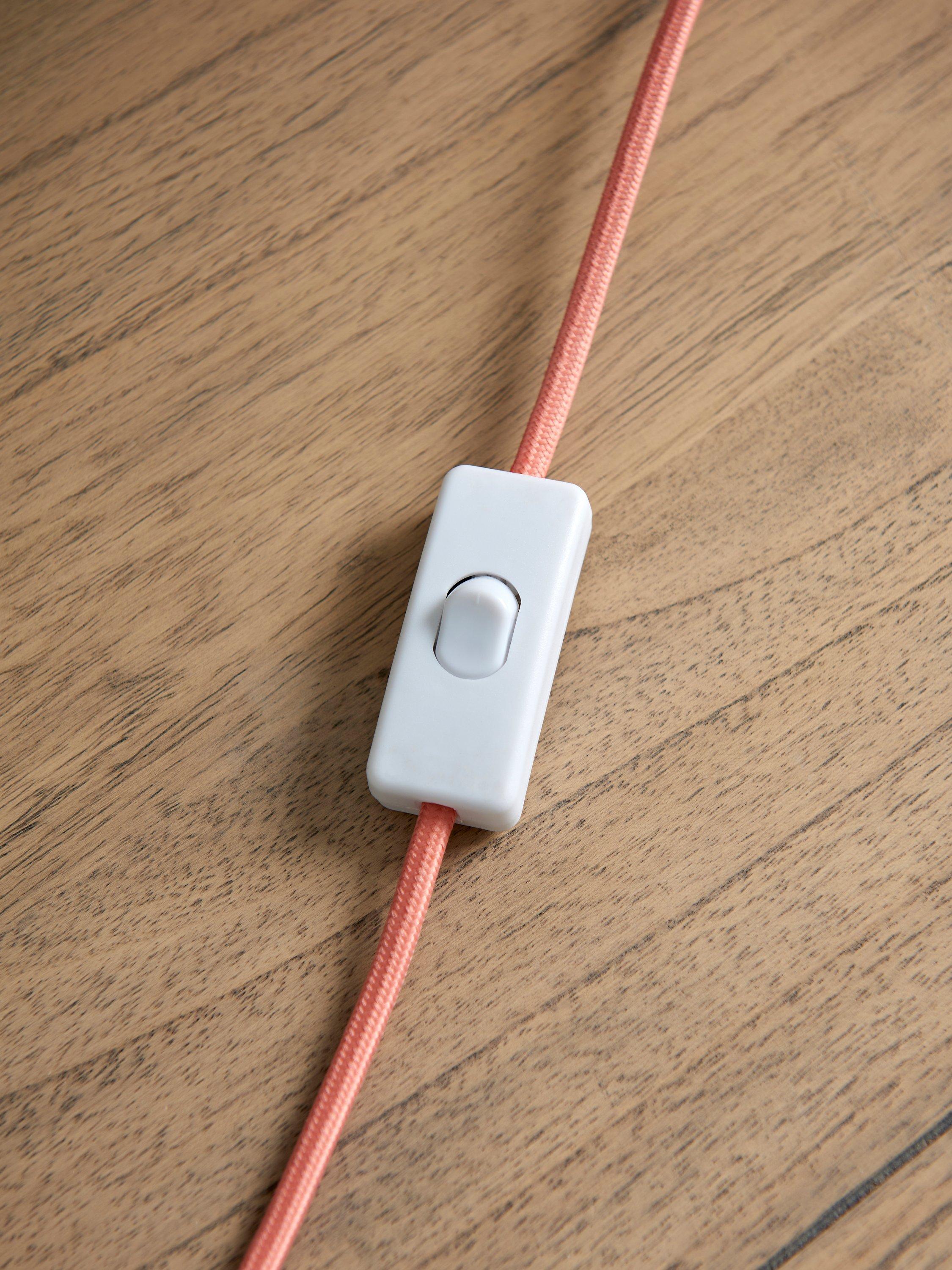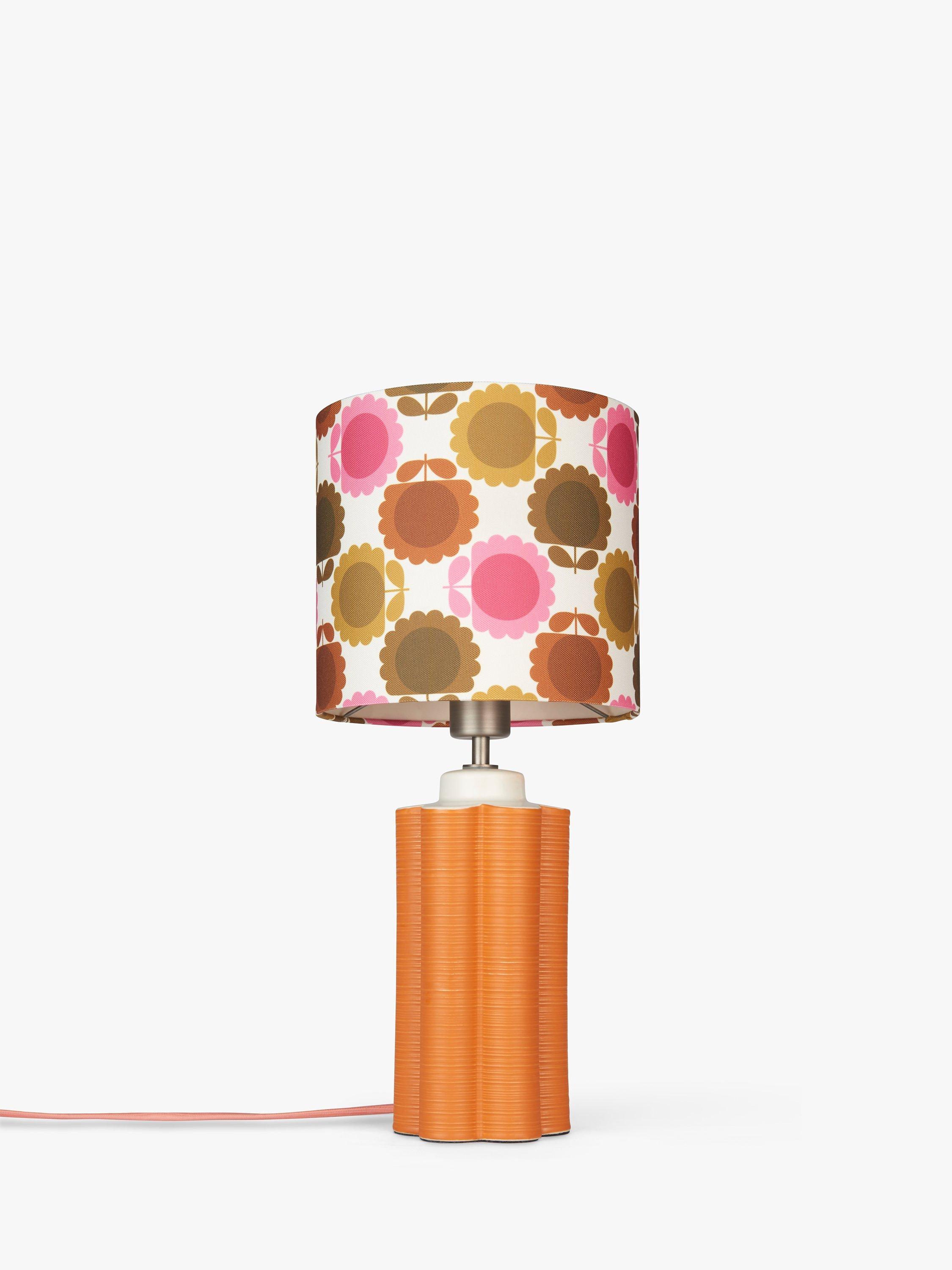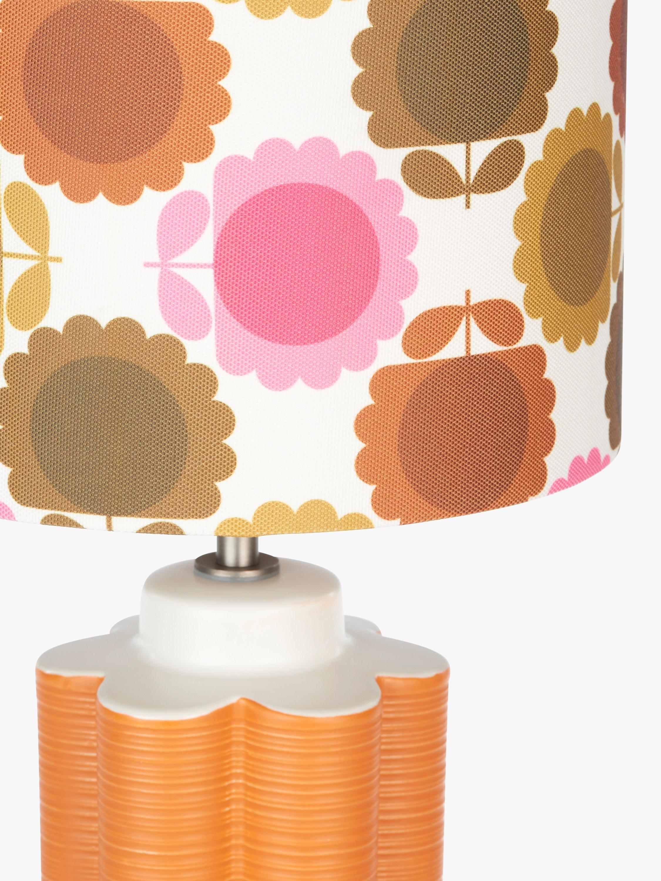 This retro table lamp celebrates the playful Orla Kiely print and pattern across both the ceramic base and fabric lampshade and will accent your space with colour. The tall scalloped base is painted in a matt glaze and the shade is made from faux linen to enhance a warm glow of light.